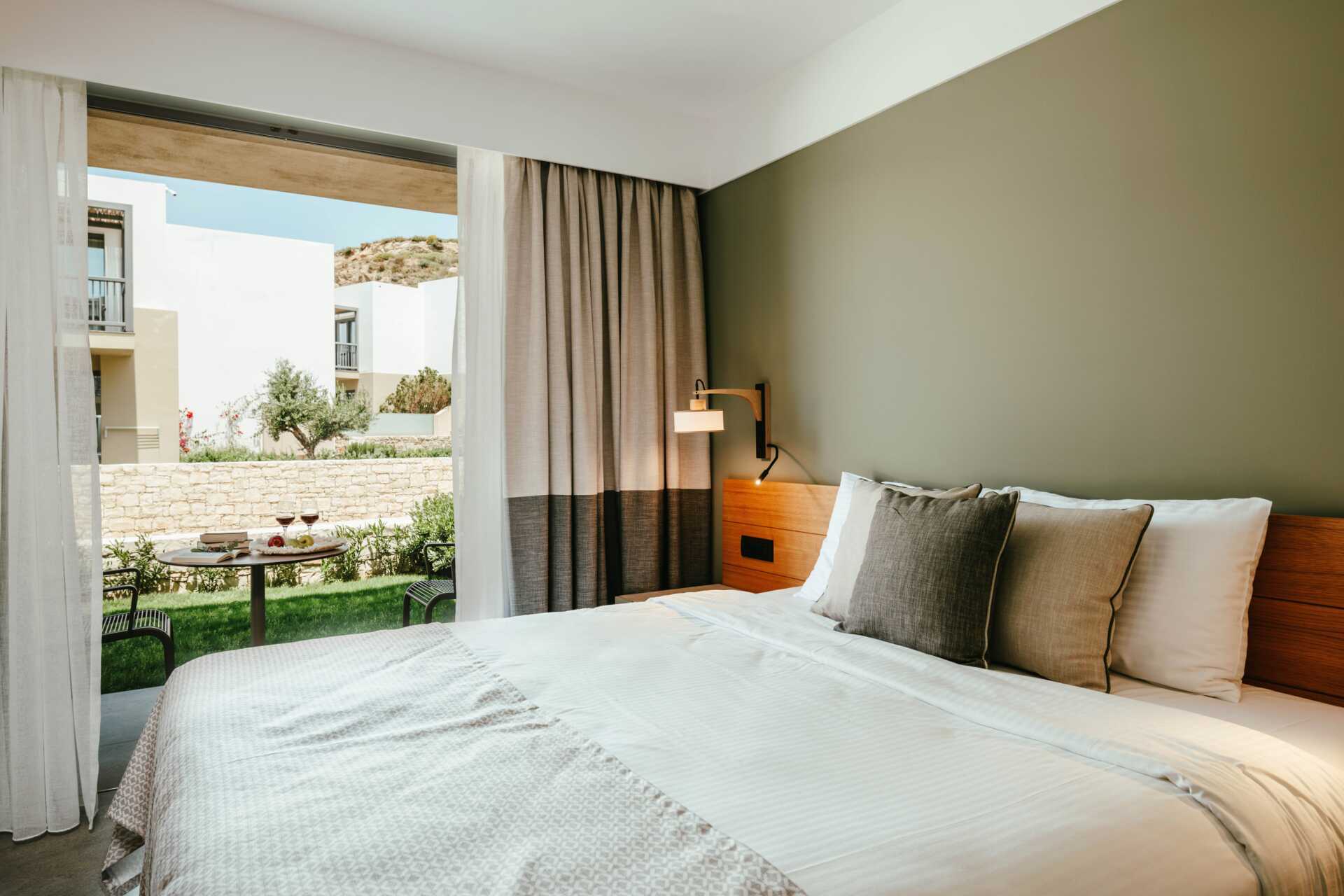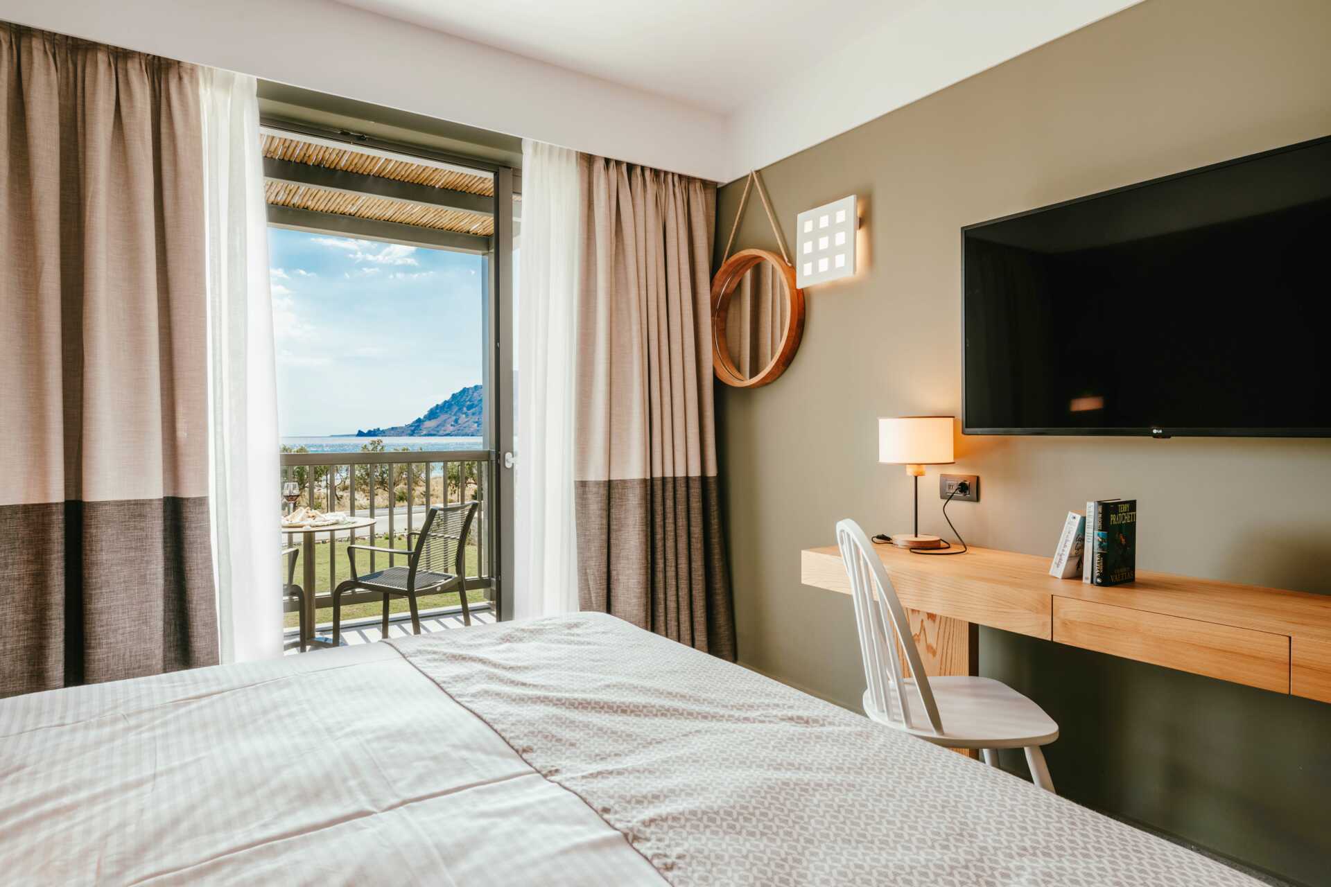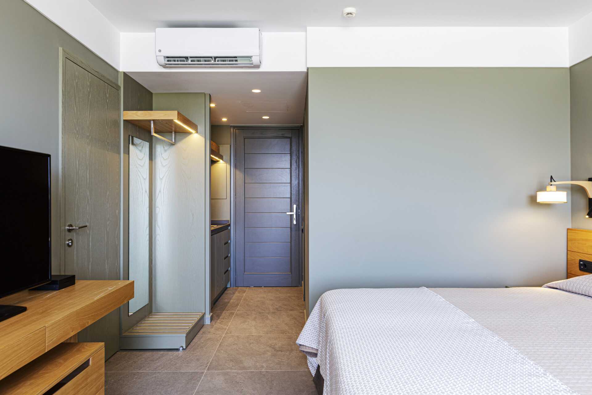 Dubbelrum med balkong eller markterrass. Vissa balkonger har poolutsikt och vissa markterrasser har poolutsikt eller begränsad havsutsikt. En dubbelsäng eller enkelsängar. Möjlighet till extrabädd i bäddsoffa. Litet kylskåp. Wifi, luftkonditionering och deponering ingår. Tv med internationella kanaler. Hårtork. Badrum med dusch och wc. Städning 7 ggr/vecka.
