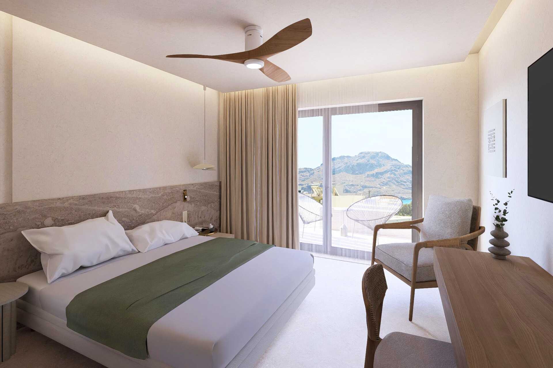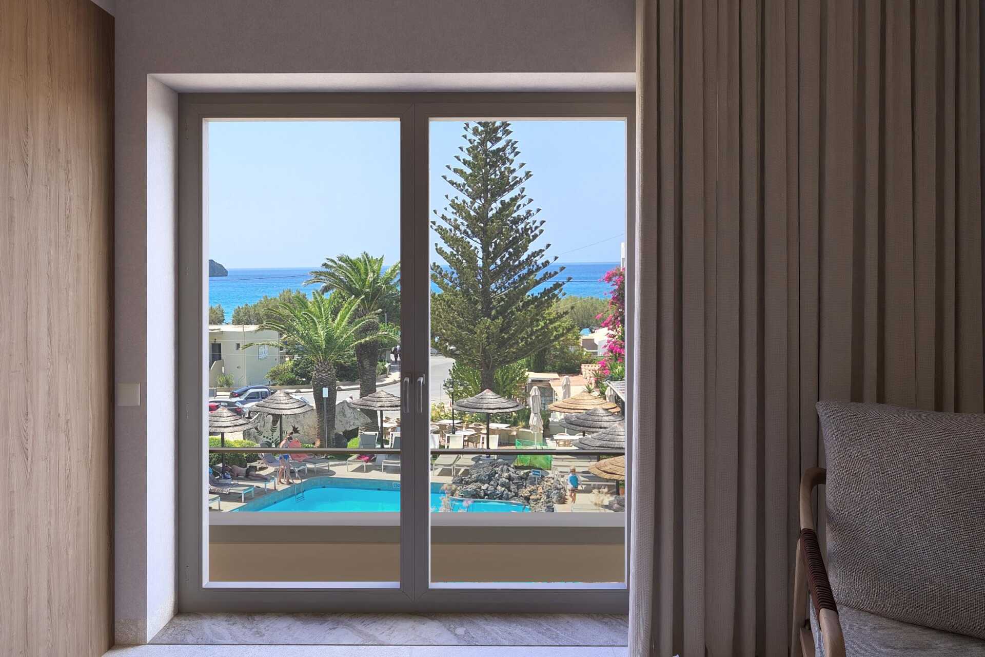 Deluxerum med balkong, vissa med poolutsikt och vissa med begränsad havsutsikt. En dubbelsäng. Möjlighet till extrabädd för en tredje person. Kuddmeny. Wifi, luftkonditionering och deponering ingår. Kylskåp. Vattenkokare samt kaffe och te. Takfläkt. Tv med internationella kanaler. Badrockar och tofflor. Hårtork. Badrum med duch och wc. Städning 7 ggr/vecka.