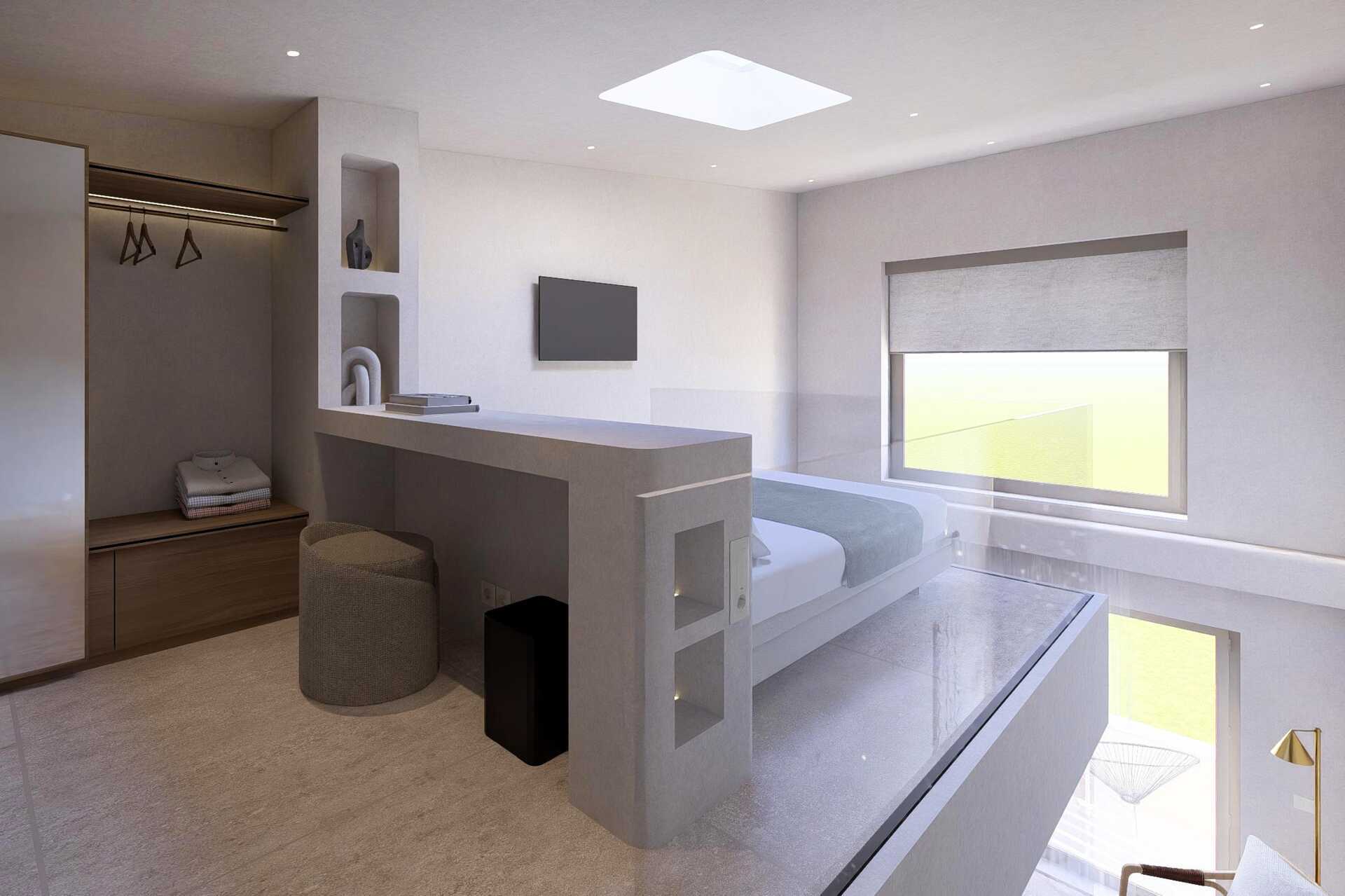 Dubbelrum i etage med balkong eller terrass och poolutiskt. En dubbelsäng en trappa upp på ett sovloft och möjlighet till extrabädd i bäddsoffa i entréplan. Kuddmeny. Wifi, luftkonditionering och deponering ingår. Kylskåp. Vattenkokare samt kaffe och te. Takfläkt. Tv med internationella kanaler. Badrockar och tofflor. Hårtork. Badrum med dusch och wc. Städning 7 ggr/vecka.