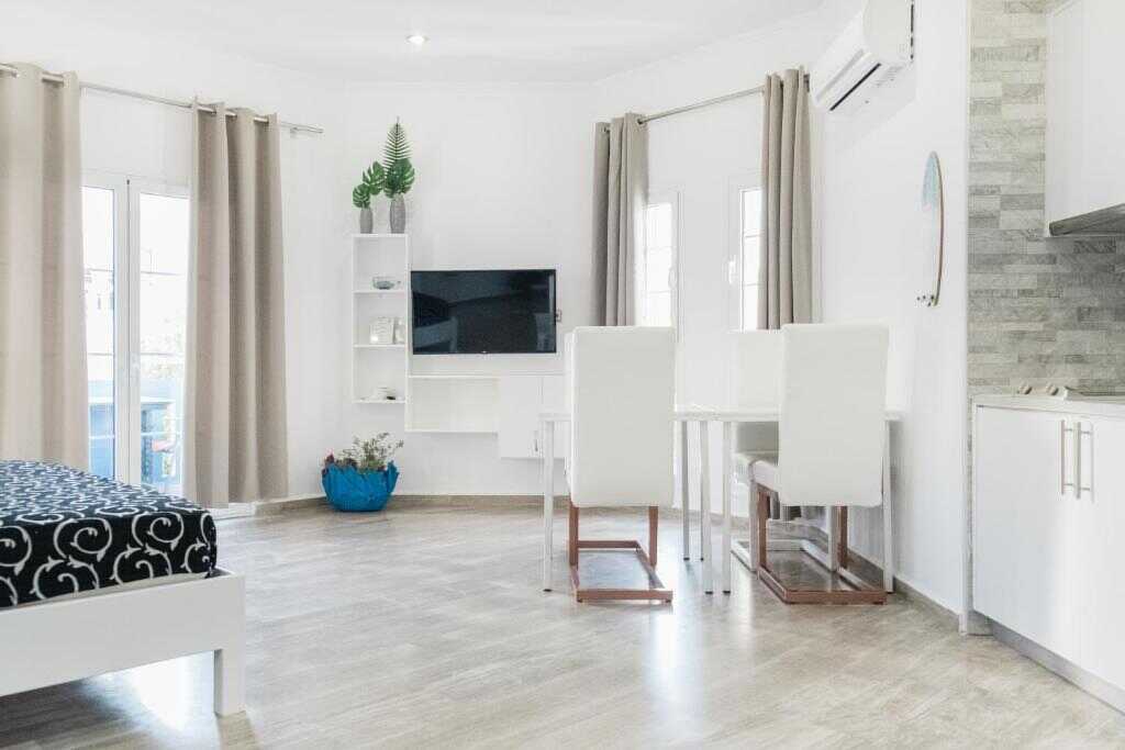 Enrumslägenheter med balkong eller terrass. En dubbelsäng eller två enkelsängar. Möjlighet till extrabädd i bäddsoffa i några av lägenheterna. Minikök med kylskåp och enkel köksutrustning. Wifi ingår. Luftkonditionering och deponering mot avgift. Bad/dusch och wc.