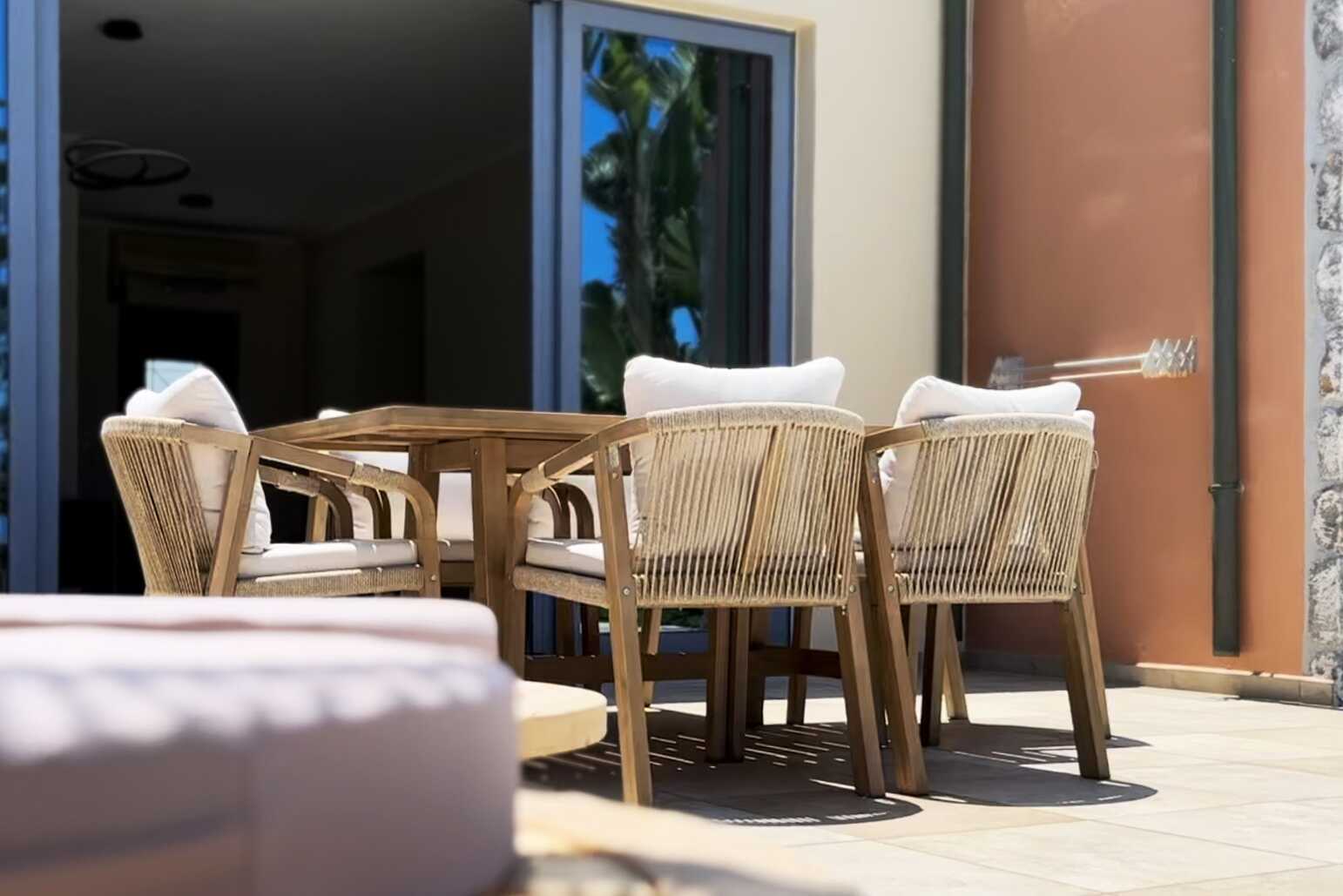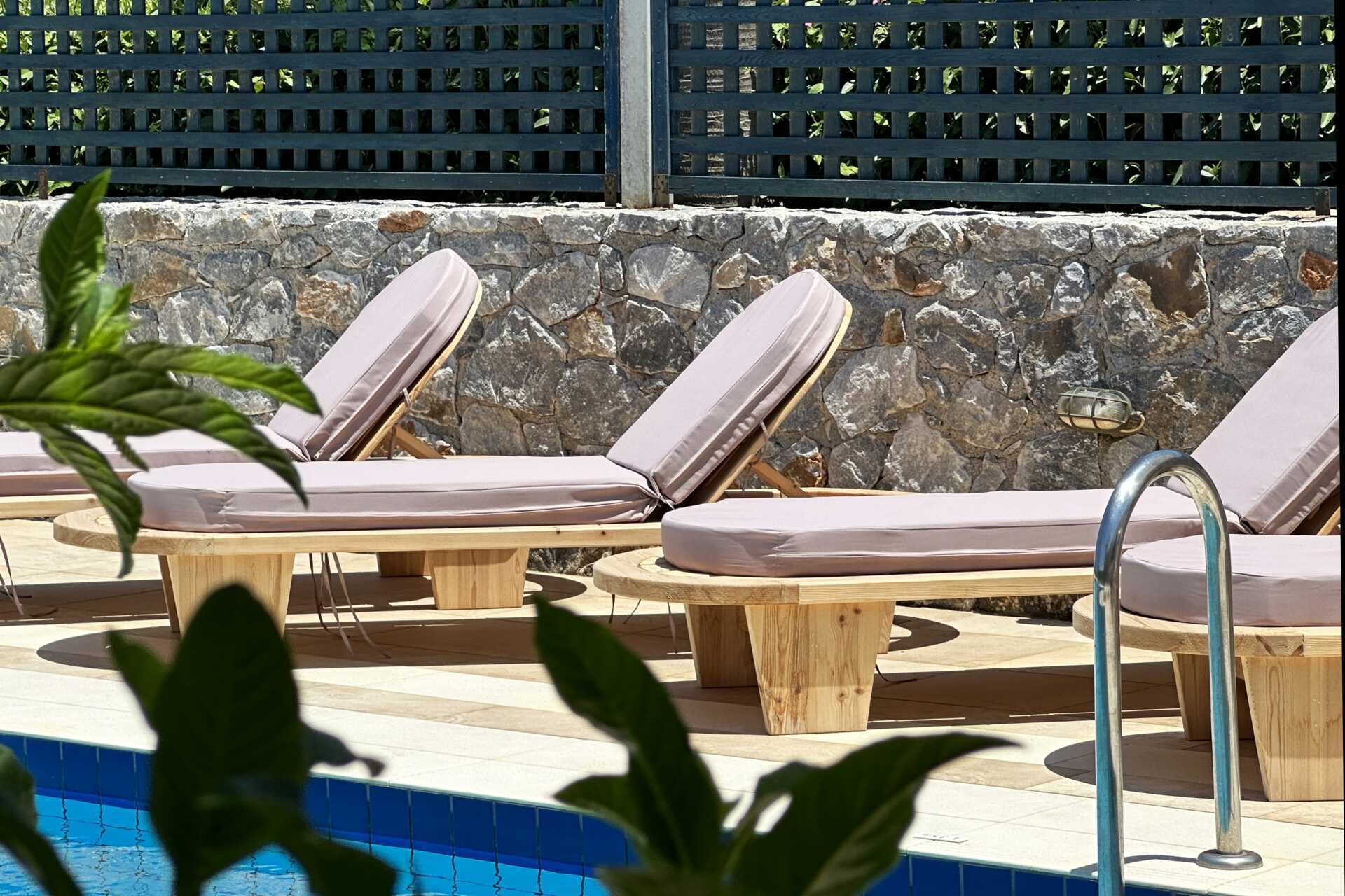 Trerumslägenhet i en- eller tvåplansvillor med privat pool och begränsad havsutsikt från markterrassen. På terrassen finns matplats och solstolar och till varje lägenhet finns en balisäng på gräsmattan. Två sovrum och ett kombinerat vardagsrum/kök. Bekväm dubbelsäng med bäddmadrass i sovrummen. Möjlighet till extrabäddar i bäddbara fåtöljer. Välutrustat kök med spishäll och ugn, kylskåp, diskmaskin, kaffebryggare, juicepress, mikrovågsugn och enkel köksutrustning. Vattenkokare vid förfrågan. Wifi, luftkonditionering och deponering ingår. Tv med internationella kanaler. Hårtork. Två badrum med badkar eller dusch samt wc. Städning 6 ggr/vecka.