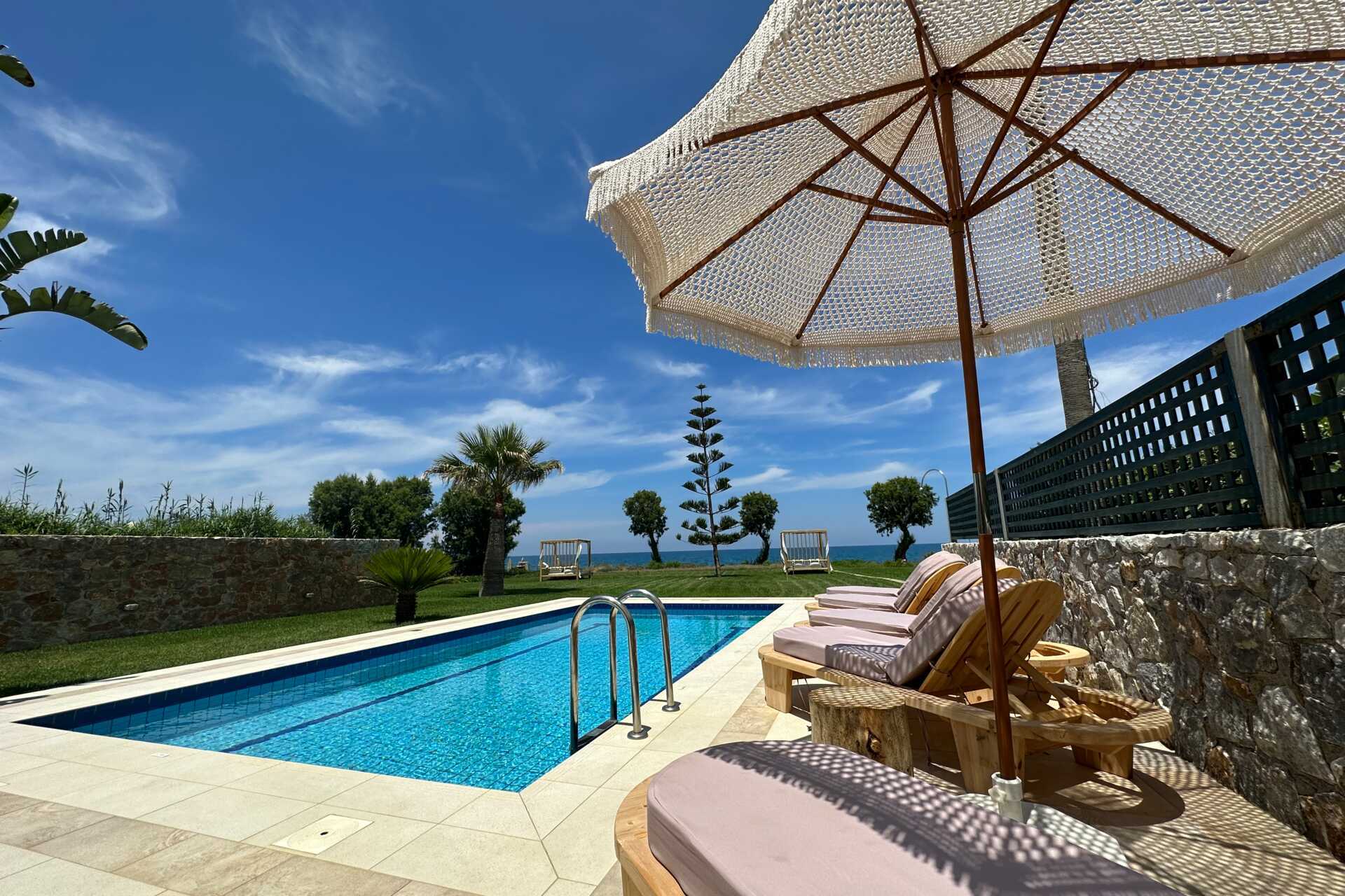 Trerumslägenhet med markterrass, privat pool och begränsad havsutsikt. På terrassen finns matplats och solstolar och till varje lägenhet finns en balisäng på gräsmattan. Lägenheterna ligger i en- eller tvåplansvillor med modern inredning. Två sovrum och kombinerat vardagsrum med kök. Bekväm dubbelsäng med bäddmadrass i sovrummen. Möjlighet till extrabäddar i bäddbara fåtöljer. Välutrustat kök med spishäll och ugn, kylskåp, diskmaskin, kaffebryggare, juicepress, mikrovågsugn och enkel köksutrustning. Vattenkokare vid förfrågan. Wifi, luftkonditionering och deponering ingår. Tv med internationella kanaler. Hårtork. Två badrum med badkar eller dusch samt wc. Städning 6 ggr/vecka.