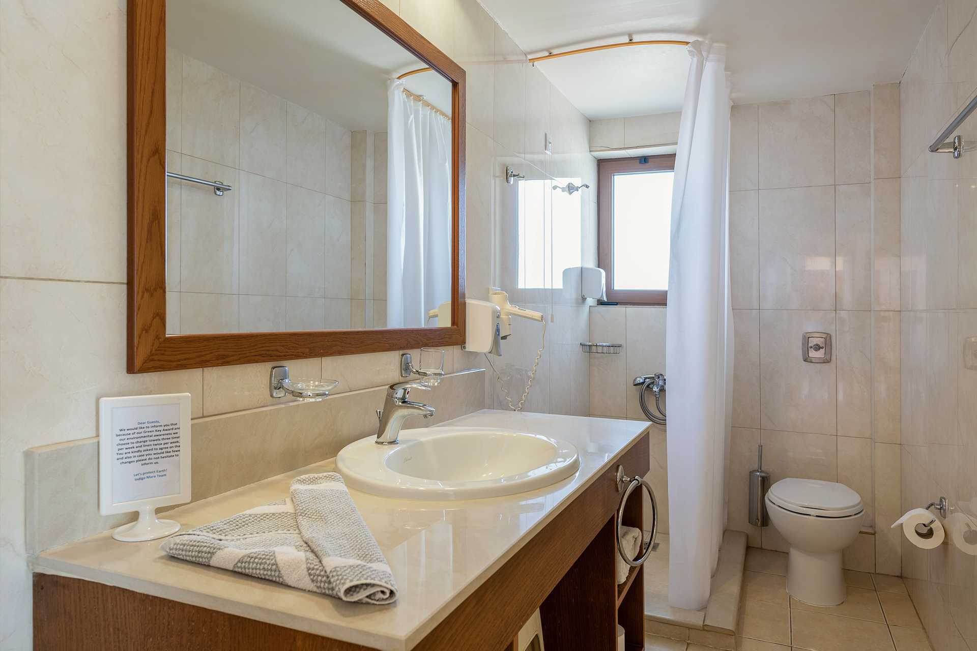 Enrumslägenhet med balkong eller terrass, vissa med begränsad havsutsikt. Kombinerat sovrum och minikök. Två enkelsängar. Möjlighet till extrabädd i bäddsoffa. Minikök med kokplattor, kylskåp, vattenkokare och enkel köksutrustning. Wifi, luftkonditionering och deponering ingår. TV med internationella kanaler. Hårtork. Badrum med dusch och wc. Städning 7 ggr/vecka.