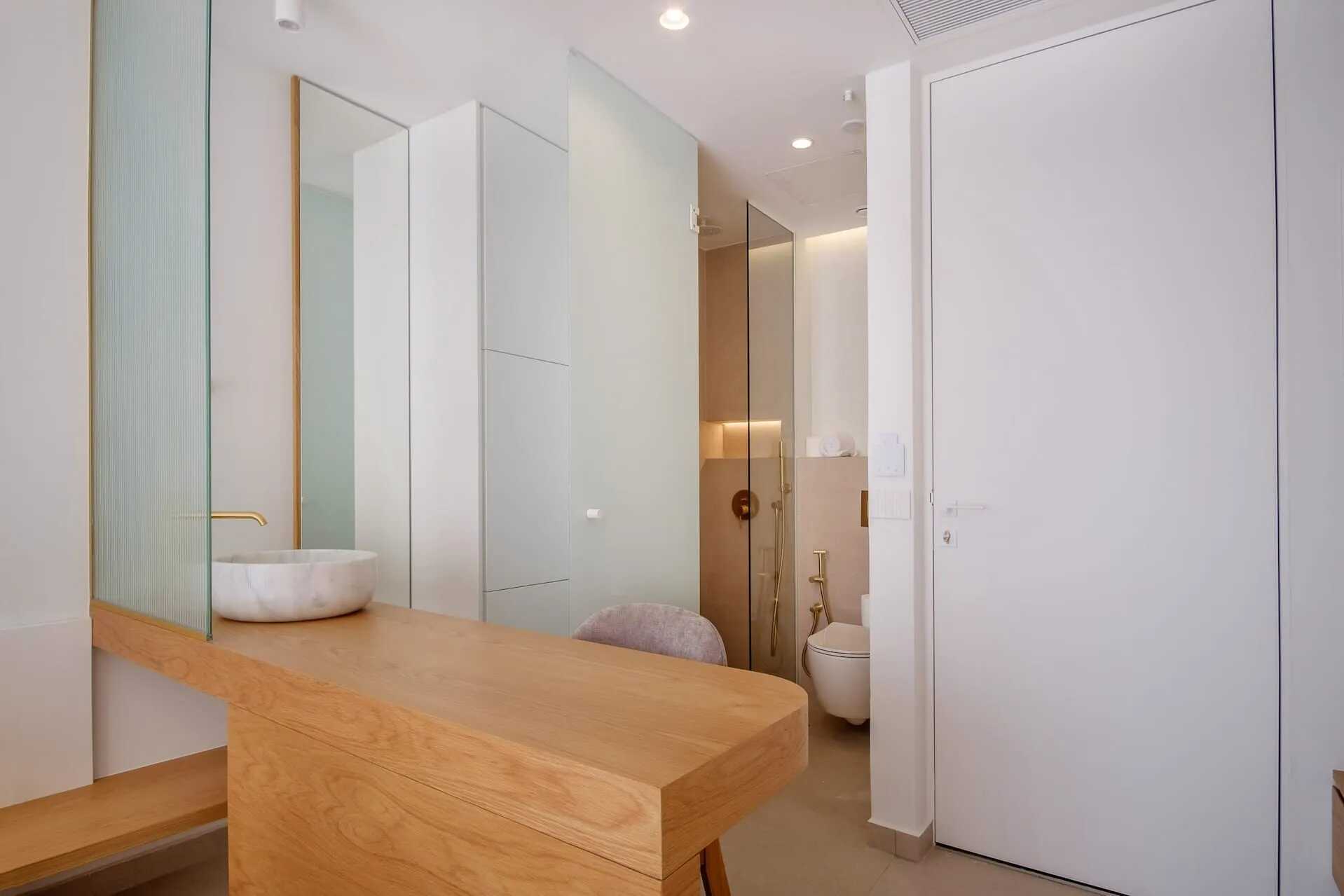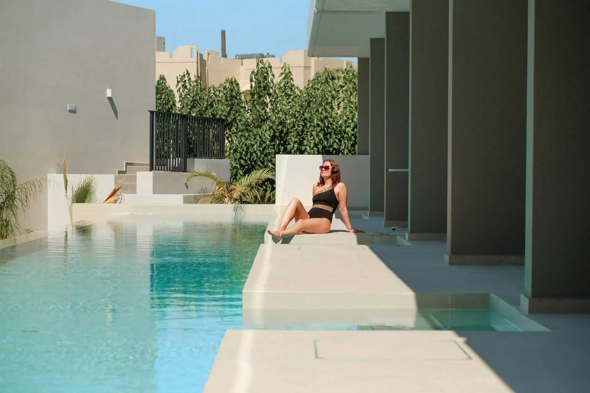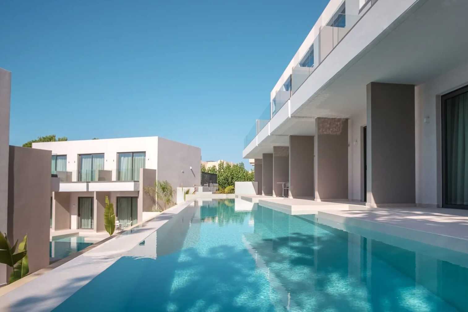 Juniorsvit med terrass och utgång till en gemensam pool. En dubbelsäng eller två enkelsängar. Wifi, luftkonditionering och deponering ingår. Minibar. Vattenkokare samt kaffe och te. Espresso kaffebryggare - två kapslar ingår vid ankomst, påfyllning mot avgift. Badrockar och tofflor. Hårtork. Tvättställ i rummet. Frostad glasdörr till dusch och wc. Städning 7 ggr/vecka.