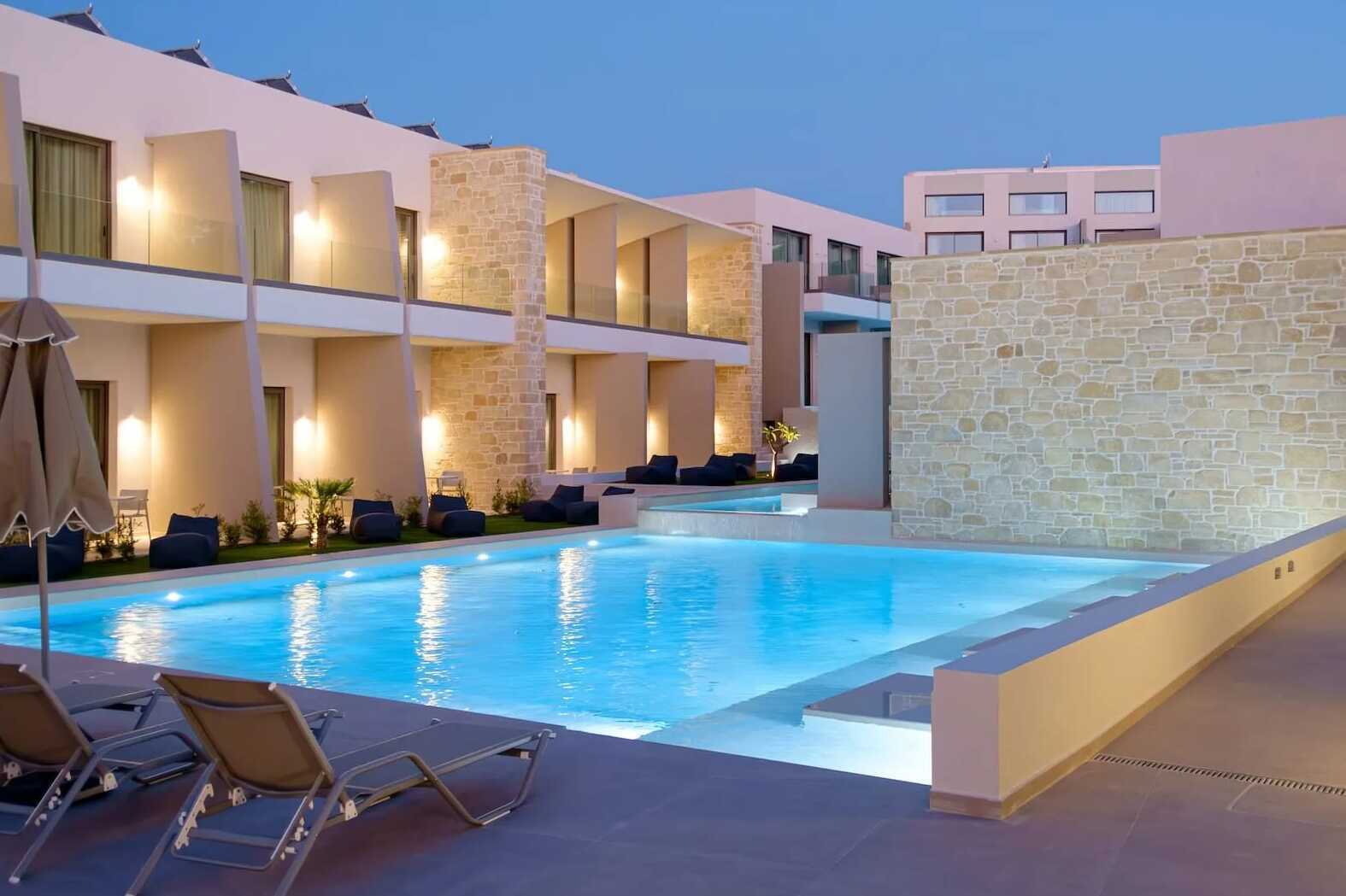 Deluxe juniorsvit med terrass och utgång till en gemensam pool. En dubbelsäng eller två enkelsängar. Möjlighet till extrabädd i bäddsoffa. Wifi, luftkonditionering och deponering ingår. Minibar. Vattenkokare samt kaffe och te. Espresso kaffebryggare - två kapslar ingår vid ankomst, påfyllning mot avgift. Badrockar och tofflor. Hårtork. Tvättställ i rummet. Frostad glasdörr till dusch och wc. Städning 7 ggr/vecka.