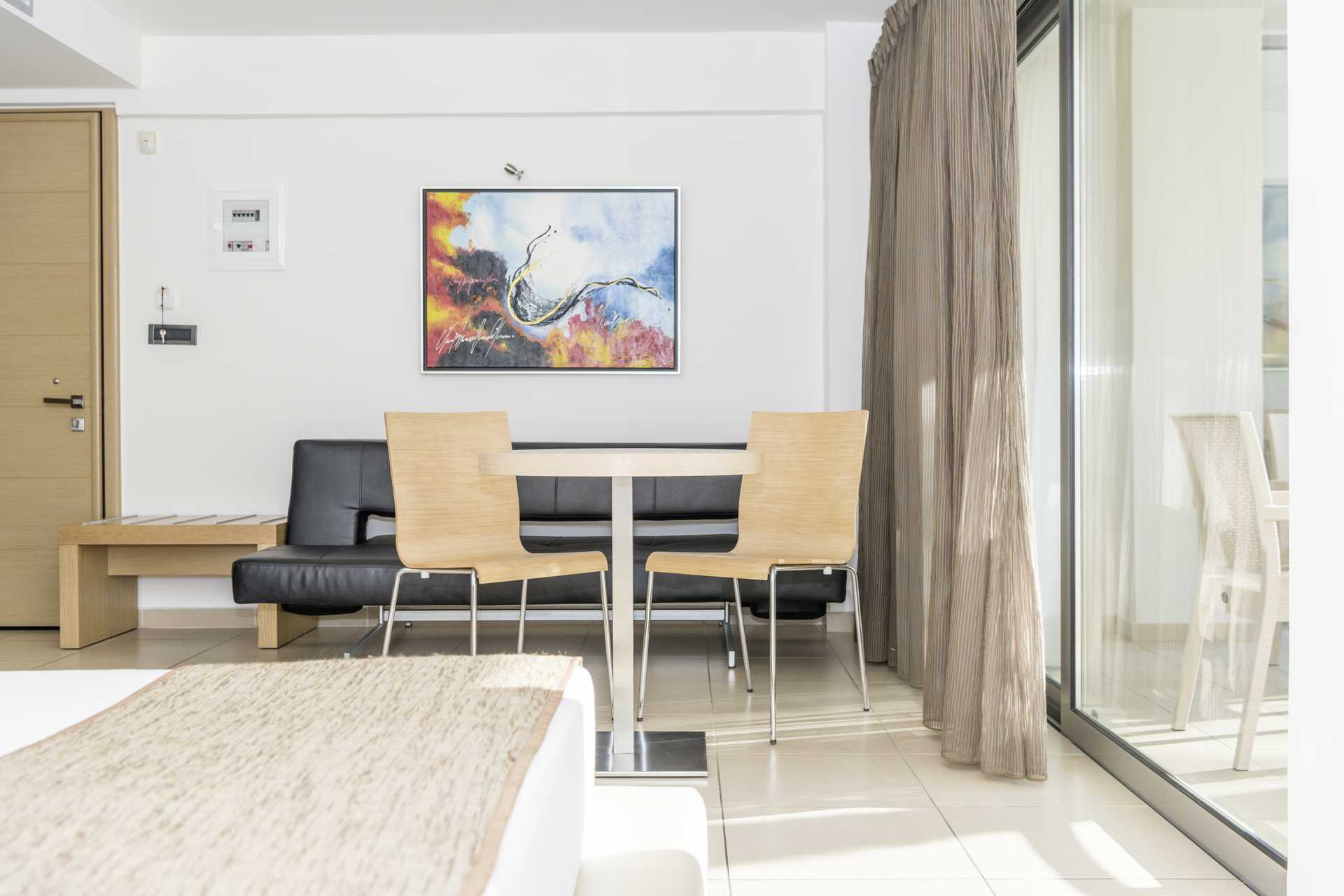 Enrumslägenhet superior med uteplats med delad pool och poolutsikt. Kombinerat sovrum med vardagsrum och minikök. Två enkelsängar. Möjlighet till extrabädd i bäddsoffa. Minikök med kokplattor, kylskåp, vattenkokare och enkel köksutrustning. Wifi och luftkonditionering ingår. Deponering mot avgift. Tv med internationella kanaler. Hårtork. Badrum med dusch och wc. Städning 6 ggr/vecka.