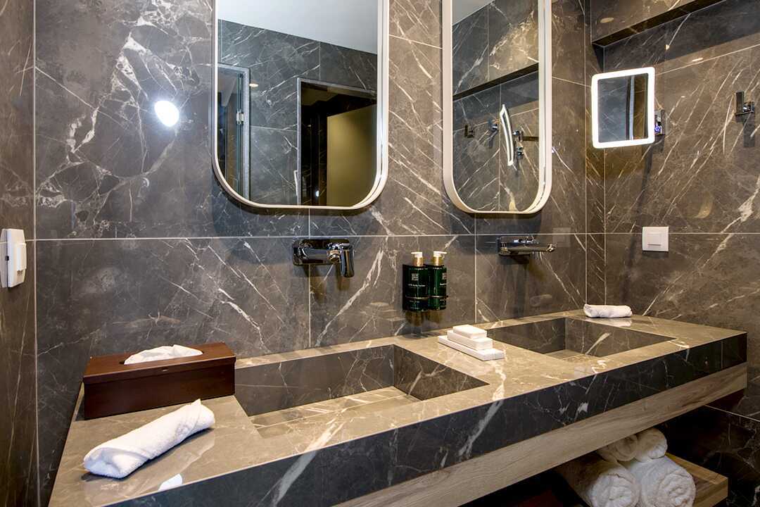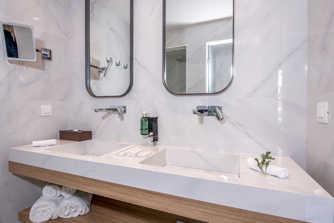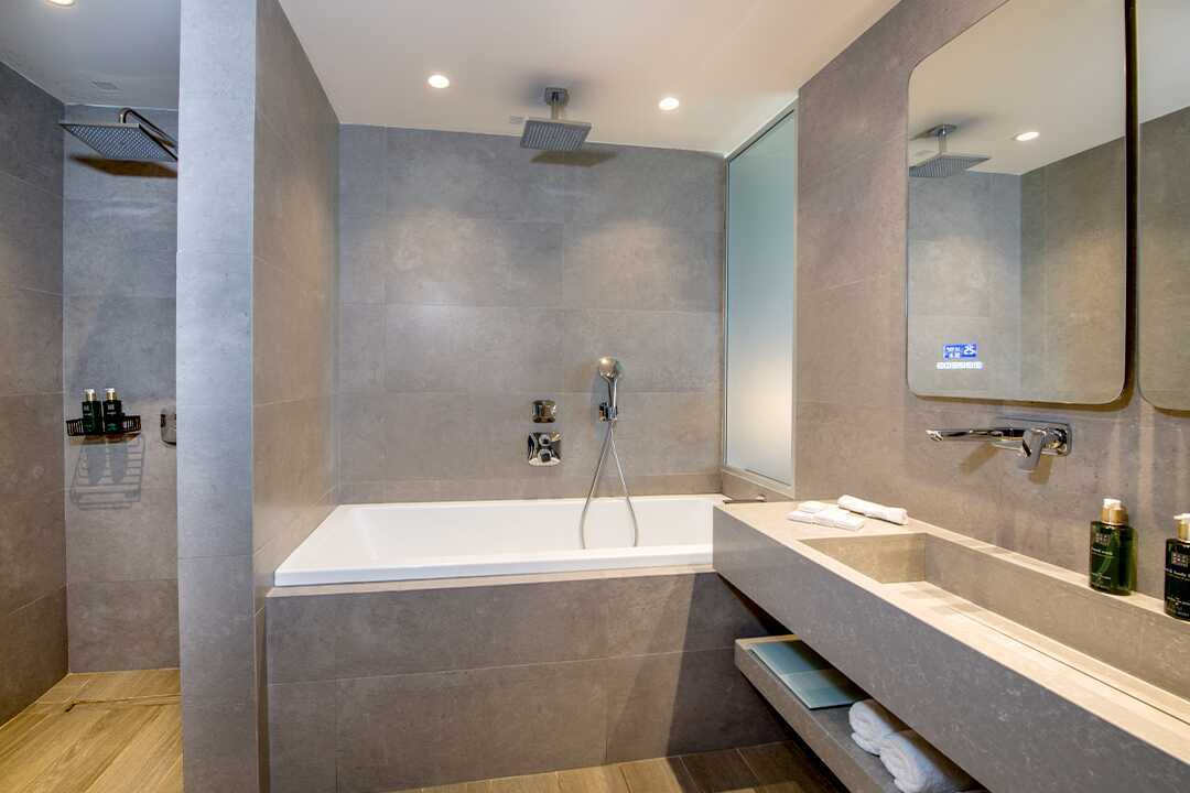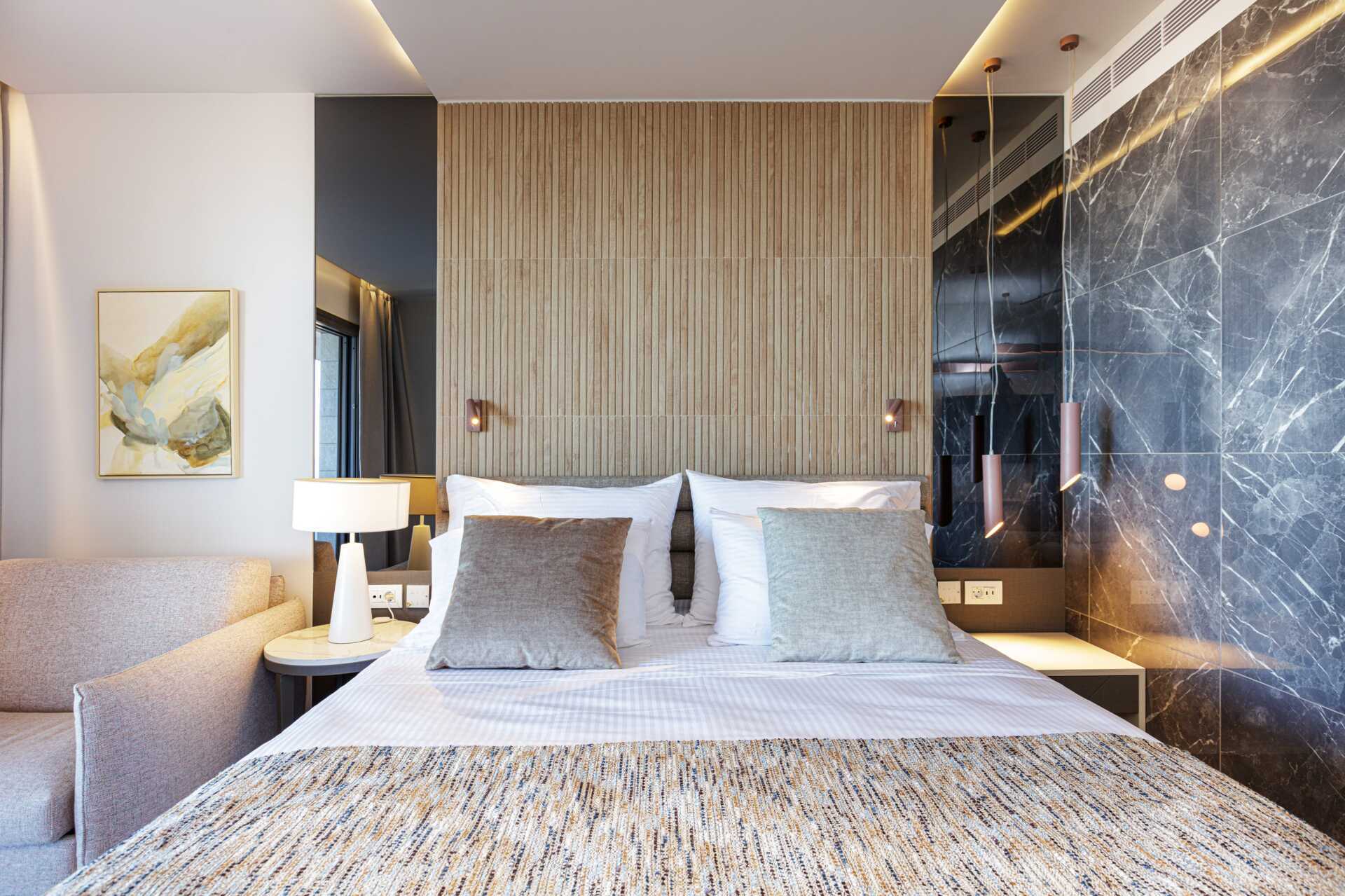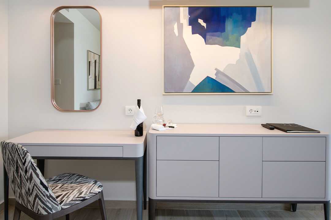 Juniorsvit Seafront med balkong och havsutsikt. Juniorsviterna ligger med bästa läge nära stranden och havet. En dubbelsäng. Möjlighet till extrabädd i bäddsoffa. Wifi, luftkonditionering och deponering ingår. Kylskåp. Espresso kaffemaskin - kapslar ingår och fylls på varje dag. Vattenkokare samt kaffe och te. Tv med internationella kanaler. Strykjärn och strykbräda. Badrockar och tofflor. Hårtork. Badrum med badkar eller dusch samt wc. Städning 7 ggr/vecka.
