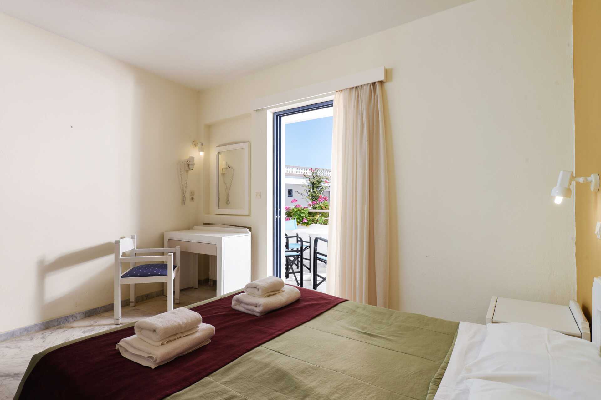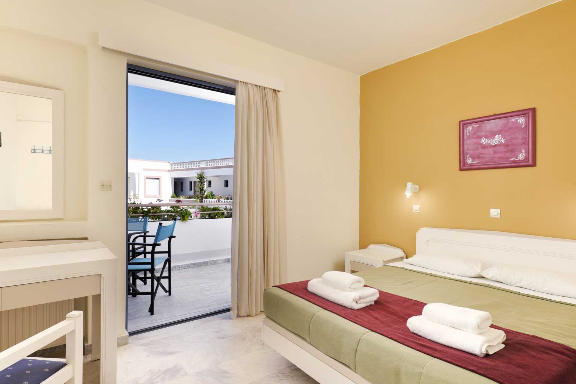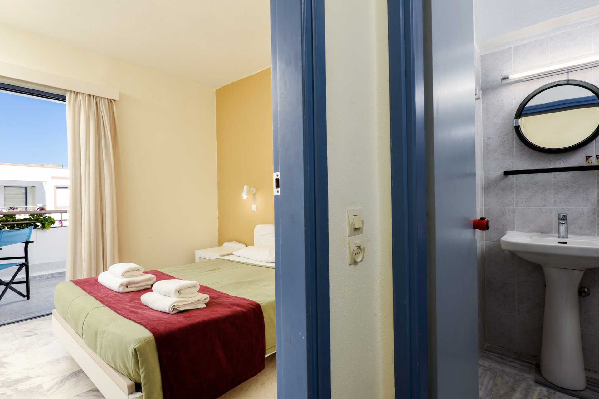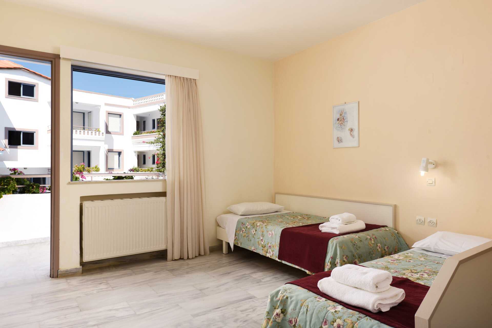 Enrumslägenhet med balkong eller terrass. Kombinerat sovrum med minikök. Två enkelsängar. Möjlighet till extrabädd i bäddsoffa. Minikök med kokplattor, kylskåp, vattenkokare och enkel köksutrustning. Wifi och luftkonditionering ingår. Deponering mot avgift. Tv med internationella kanaler. Hårtork. Badrum med dusch och wc. Städning 6 ggr/vecka.
