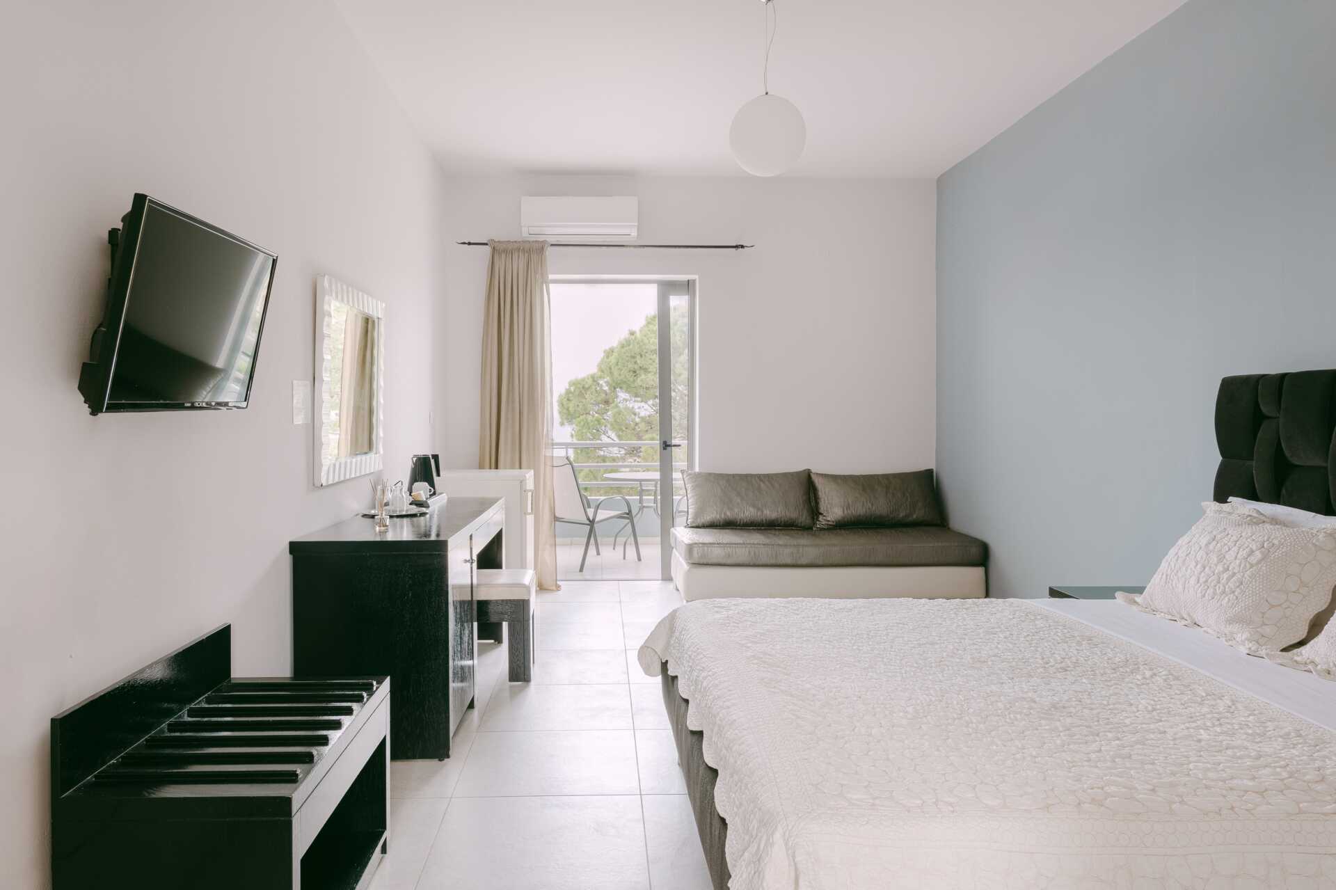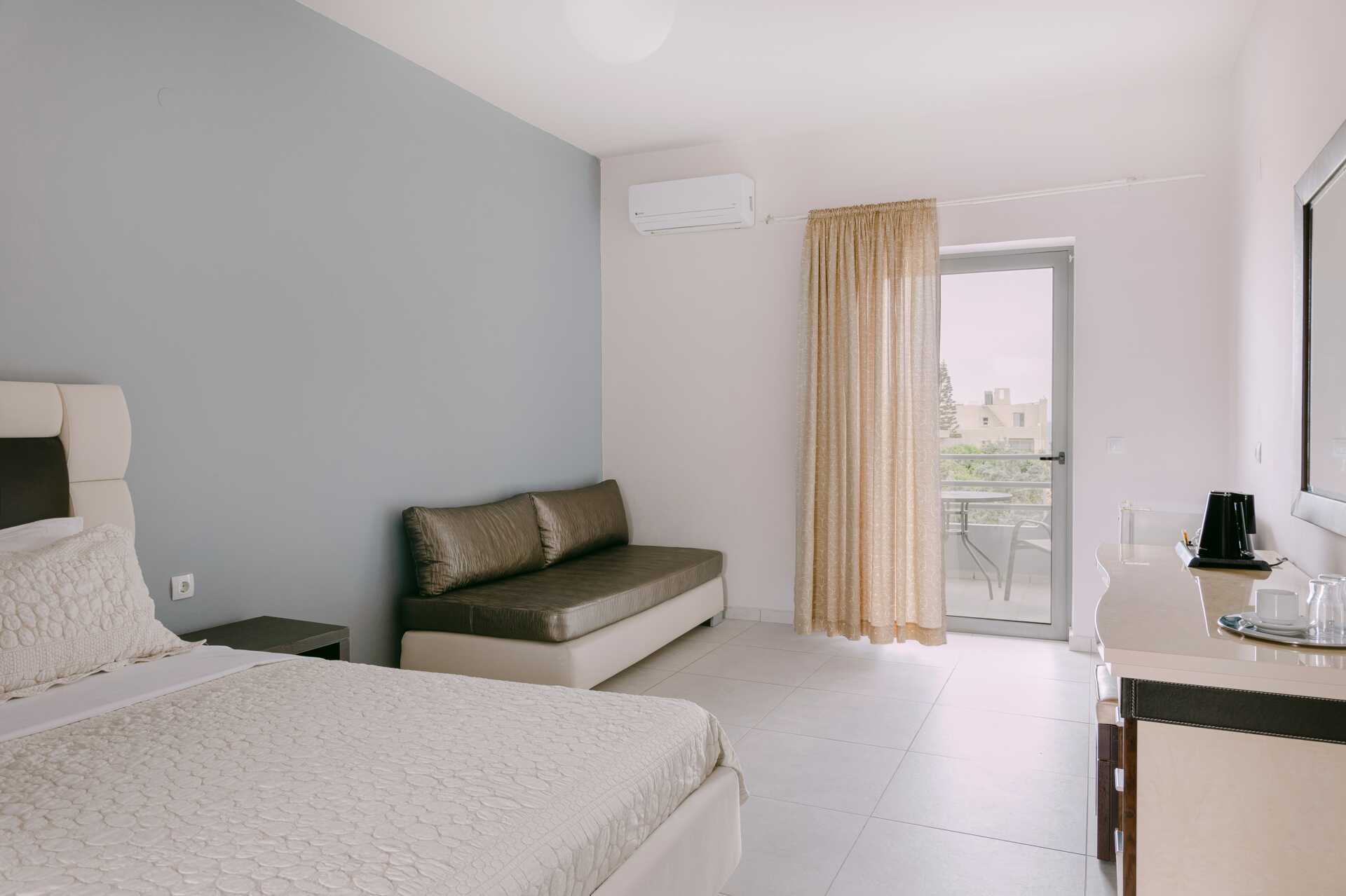 Dubbelrum med balkong. En dubbelsäng eller två enkelsängar. Möjlighet till extrabädd i bäddsoffa. Luftkonditionering och deponering ingår. Badrum med dusch och wc. Städning 6 ggr/vecka.