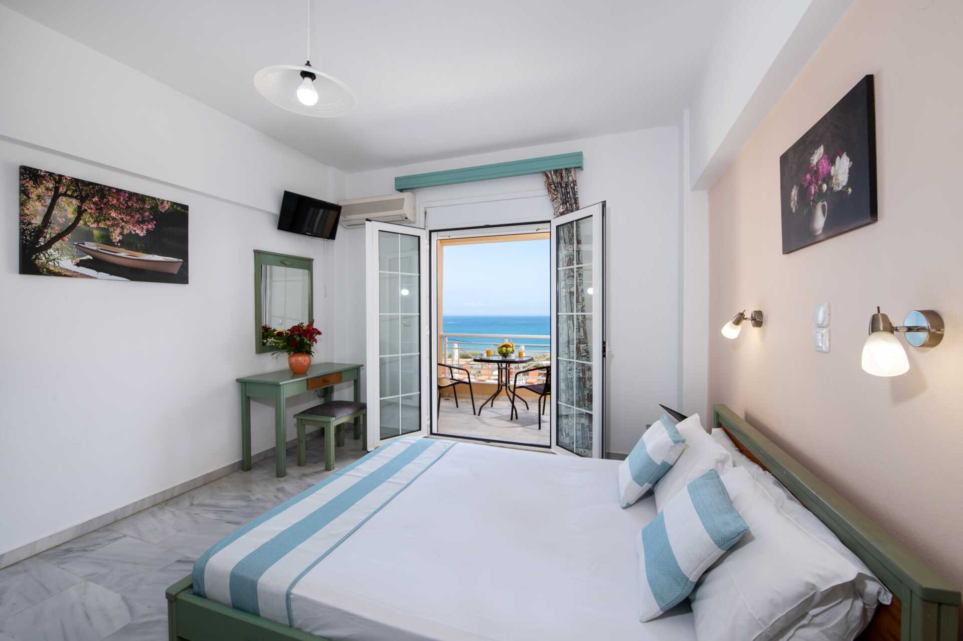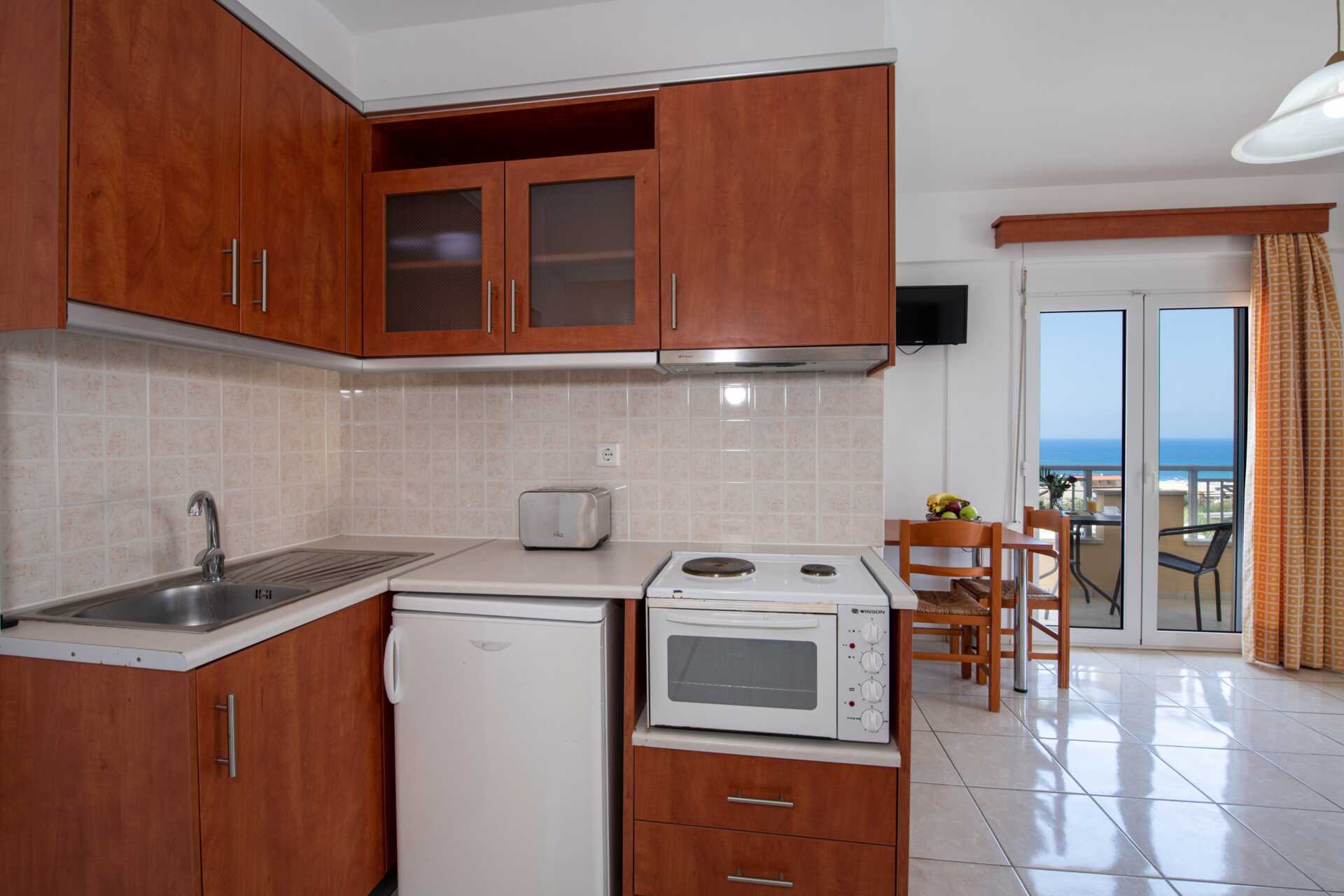 Tvårumslägenhet med balkong elelr terrass. Sovrum och kombinerat vardagsrum/minikök. Två enkelsängar. Minikök med kokplattor, kylskåp och enkel köksutrustning. Luftkonditionering och deponering mot avgift. Tv med internationella kanaler. Badrum med badkar eller dusch samt wc. Städning 3 ggr/vecka.