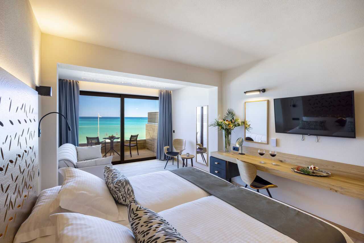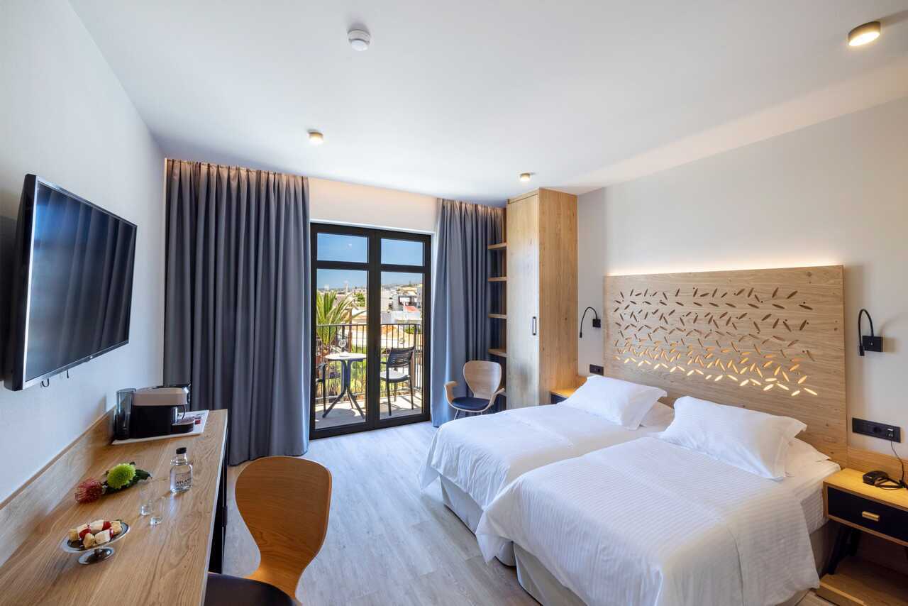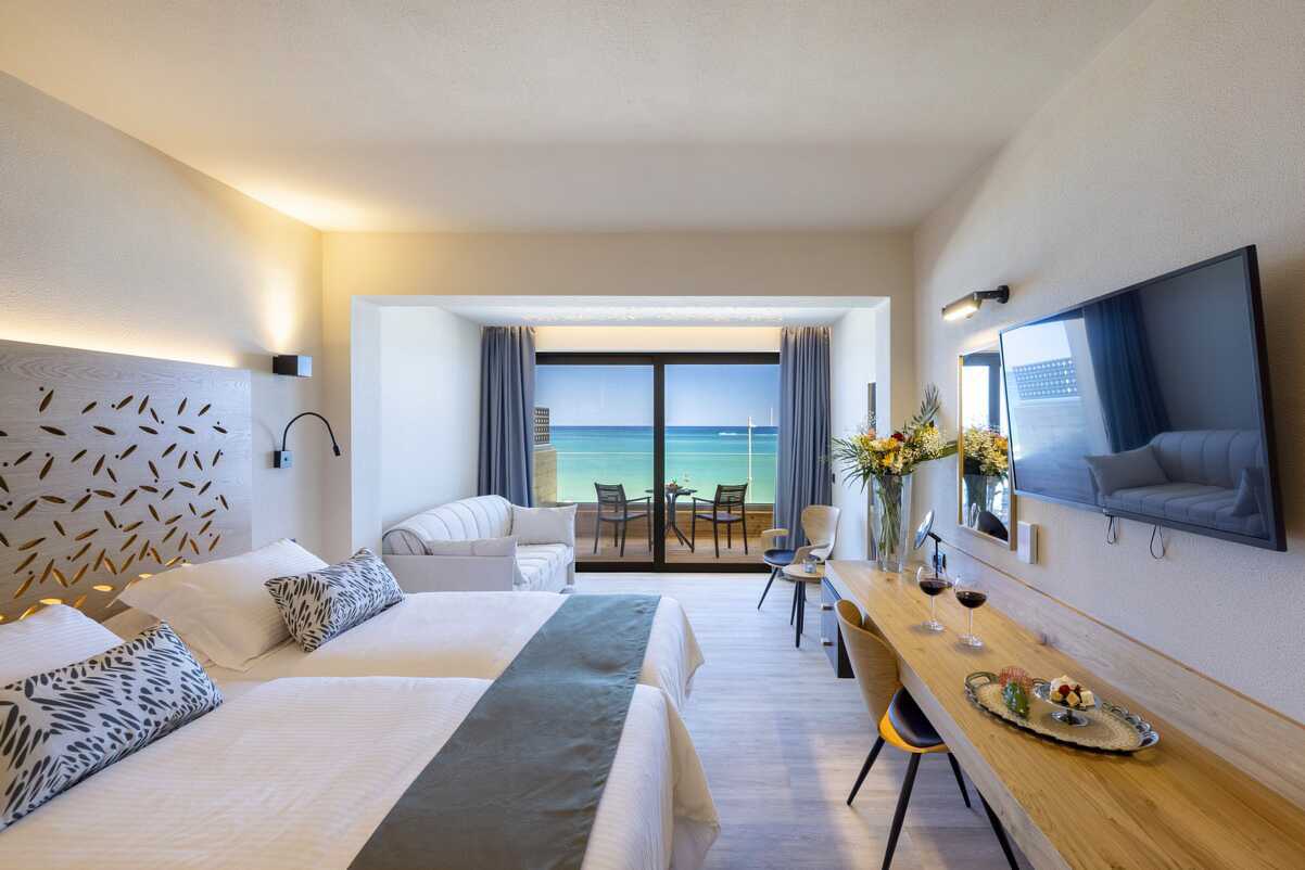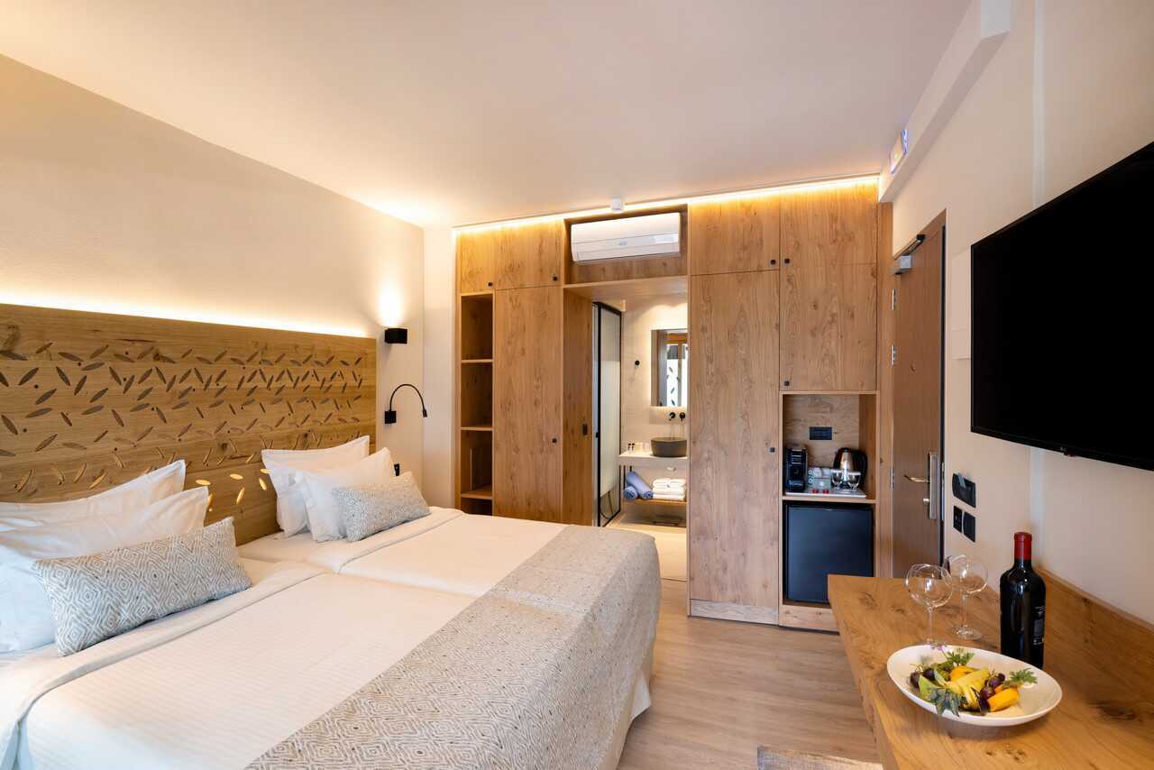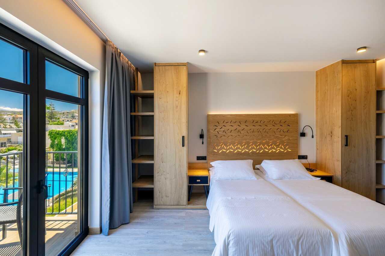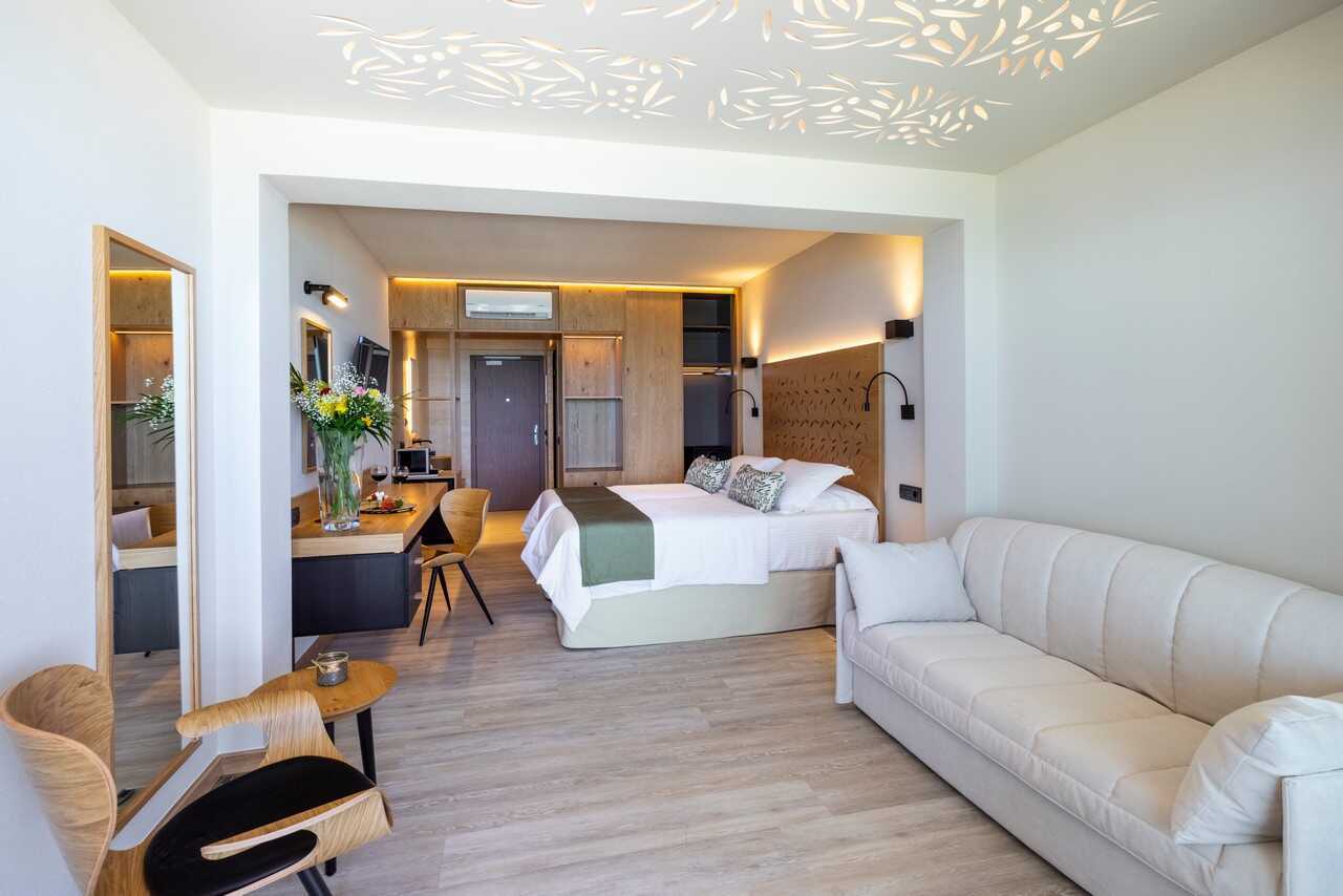 Superiorrum med balkong eller terrass, vissa har poolutsikt alternativt balkong med havsutsikt. En dubbelsäng eller två enkelsängar. Möjlighet med extrabäddar i bäddsoffa. Wifi, deponering och luftkonditionering ingår. Kylskåp. Kaffemaskin. Vattenkokare samt kaffe och te. Tv med internationella kanaler. Treglasfönster. Strykjärn och strykbräda. Hårtork. Badrum med dusch och wc. Städning 7 ggr/vecka.