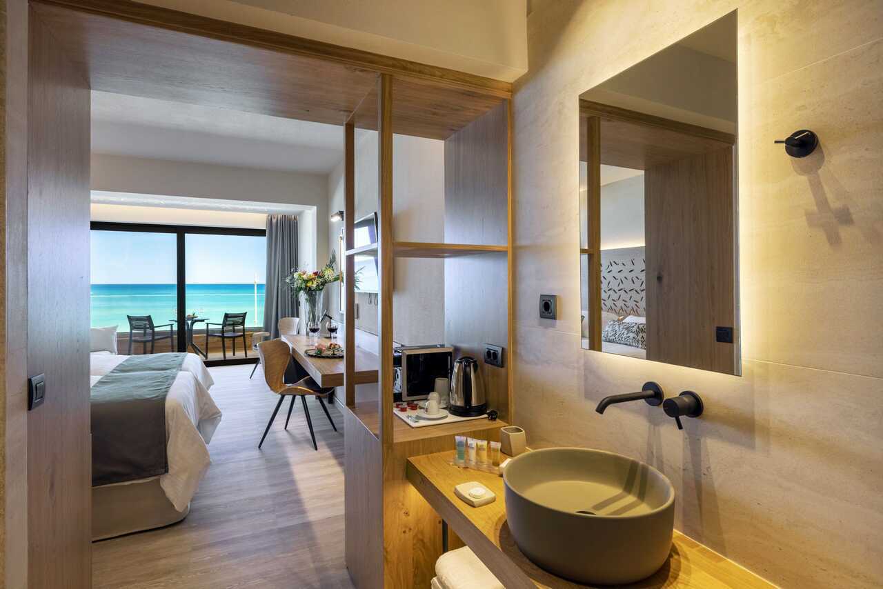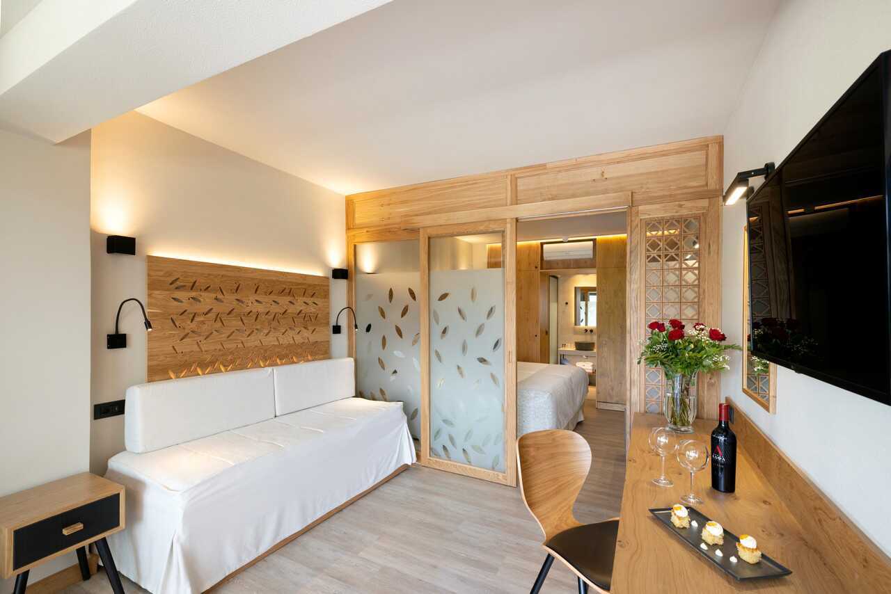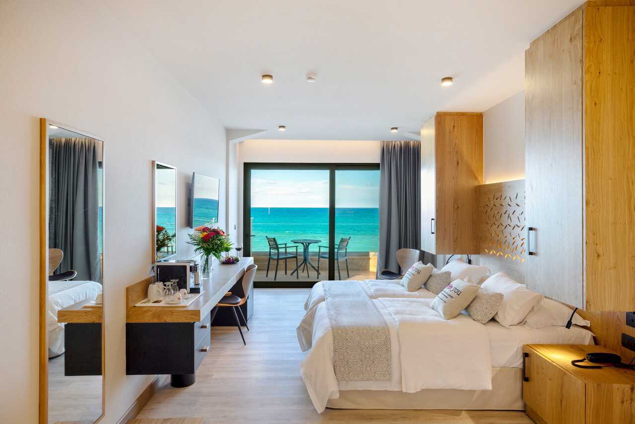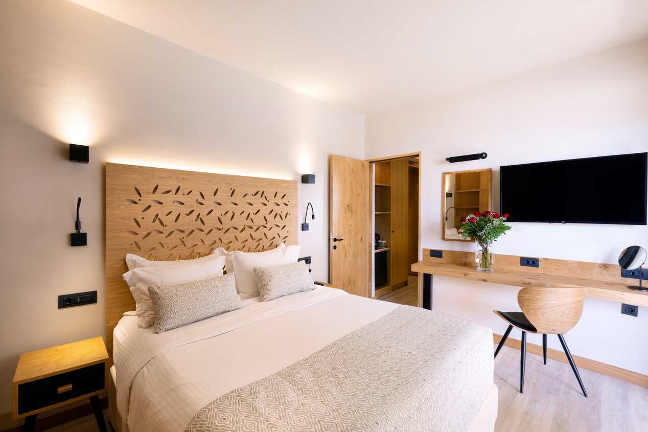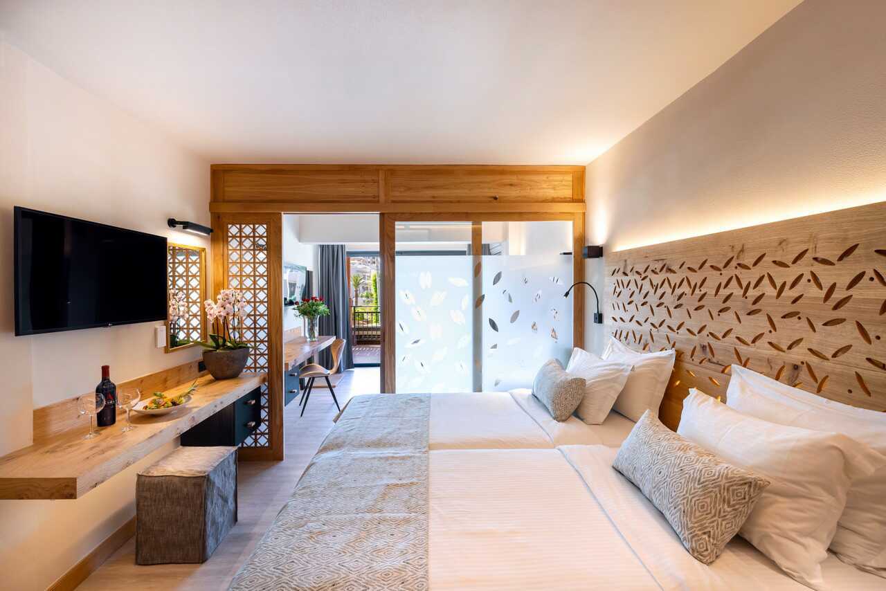 Superiorrum med balkong eller terrass, vissa har poolutsikt alternativt balkong med havsutsikt. En dubbelsäng eller två enkelsängar. Möjlighet med extrabäddar i bäddsoffa. Wifi, deponering och luftkonditionering ingår. Kylskåp. Kaffemaskin. Vattenkokare samt kaffe och te. Tv med internationella kanaler. Treglasfönster. Strykjärn och strykbräda. Hårtork. Badrum med dusch och wc. Städning 7 ggr/vecka.