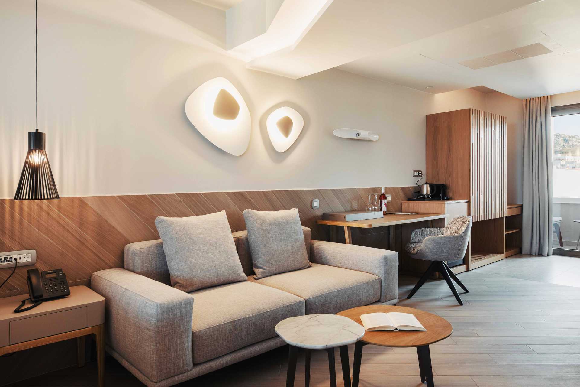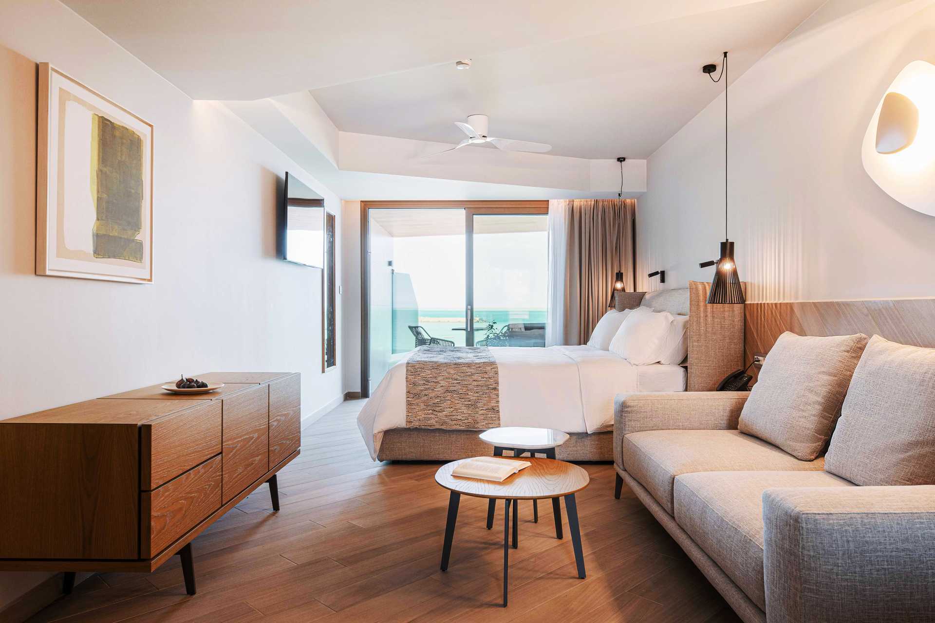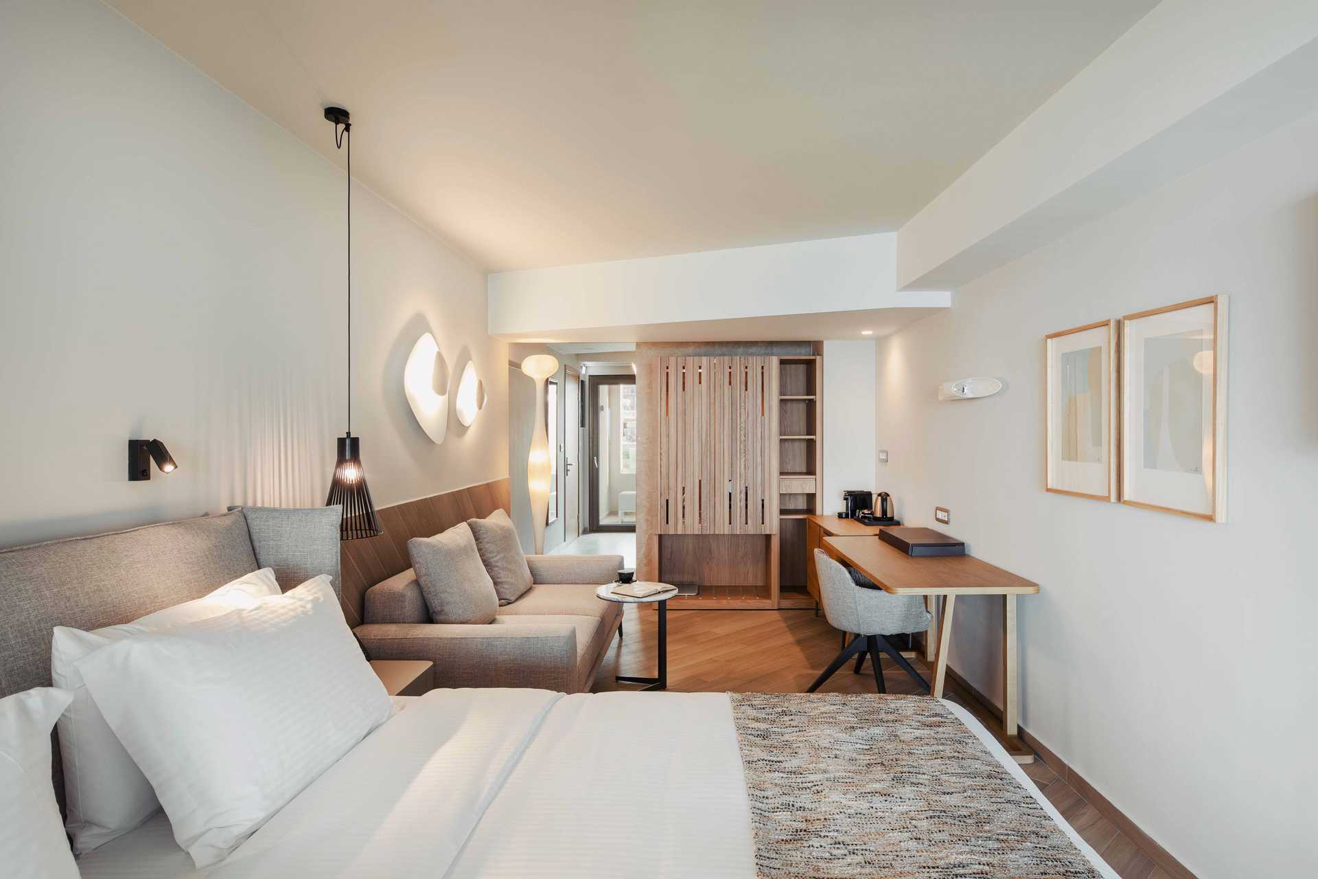 Juniorsvit Premium med havsutsikt och en rymlig balkong om ca 15 kvadratmeter. En dubbelsäng eller två enkelsängar. Wifi, luftkonditionering och wifi ingår. Espressomaskin med kapslar ingår. Vattenkokare samt kaffe och te. Kylskåp. En flaska vin, en flaska vatten och färsk frukt väntar vid ankomst. Tv med internationella kanaler. Strykjärn och strykbräda. Badrockar och tofflor. Hårtork. Badrum med dusch och wc. Städning 7 ggr/vecka.