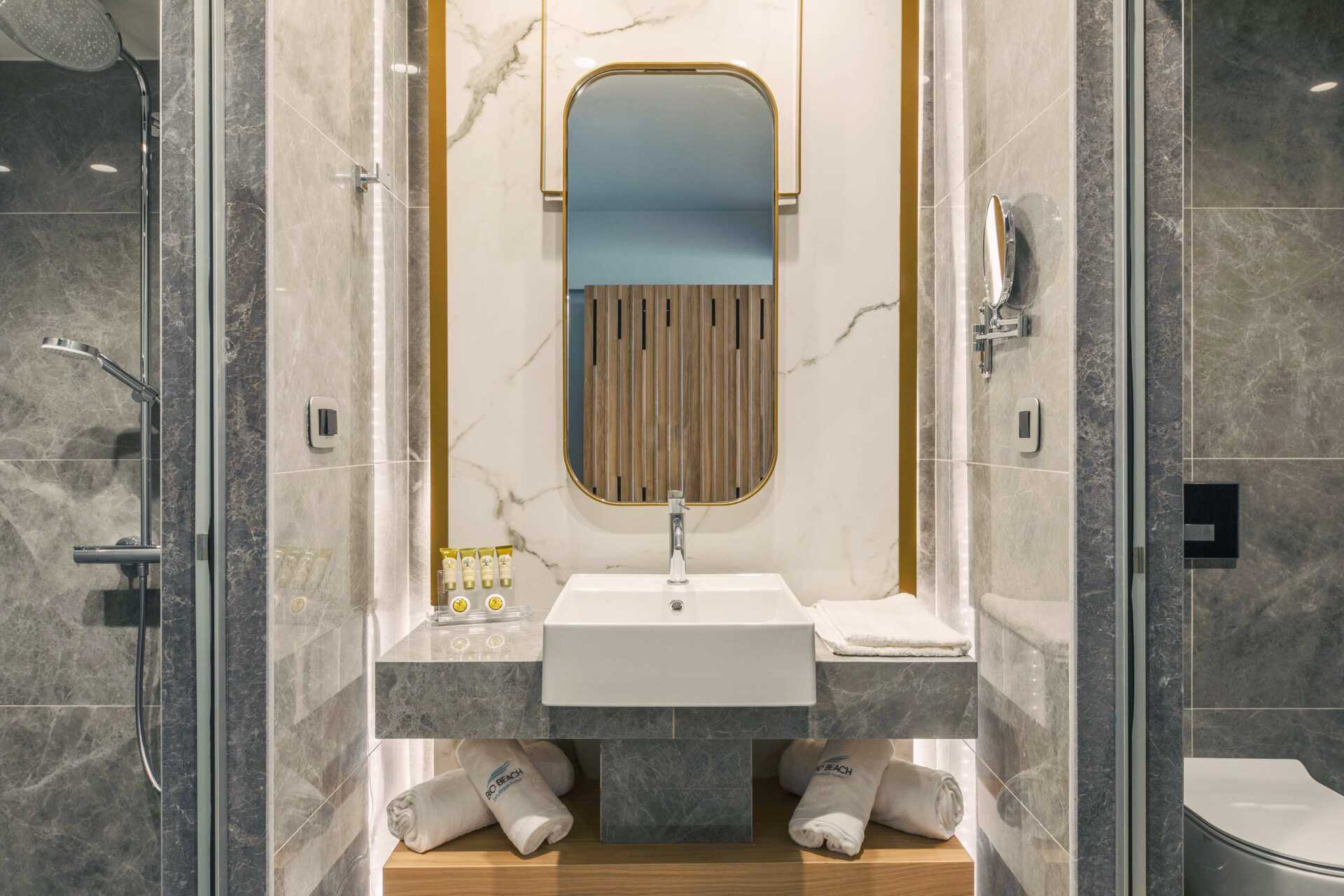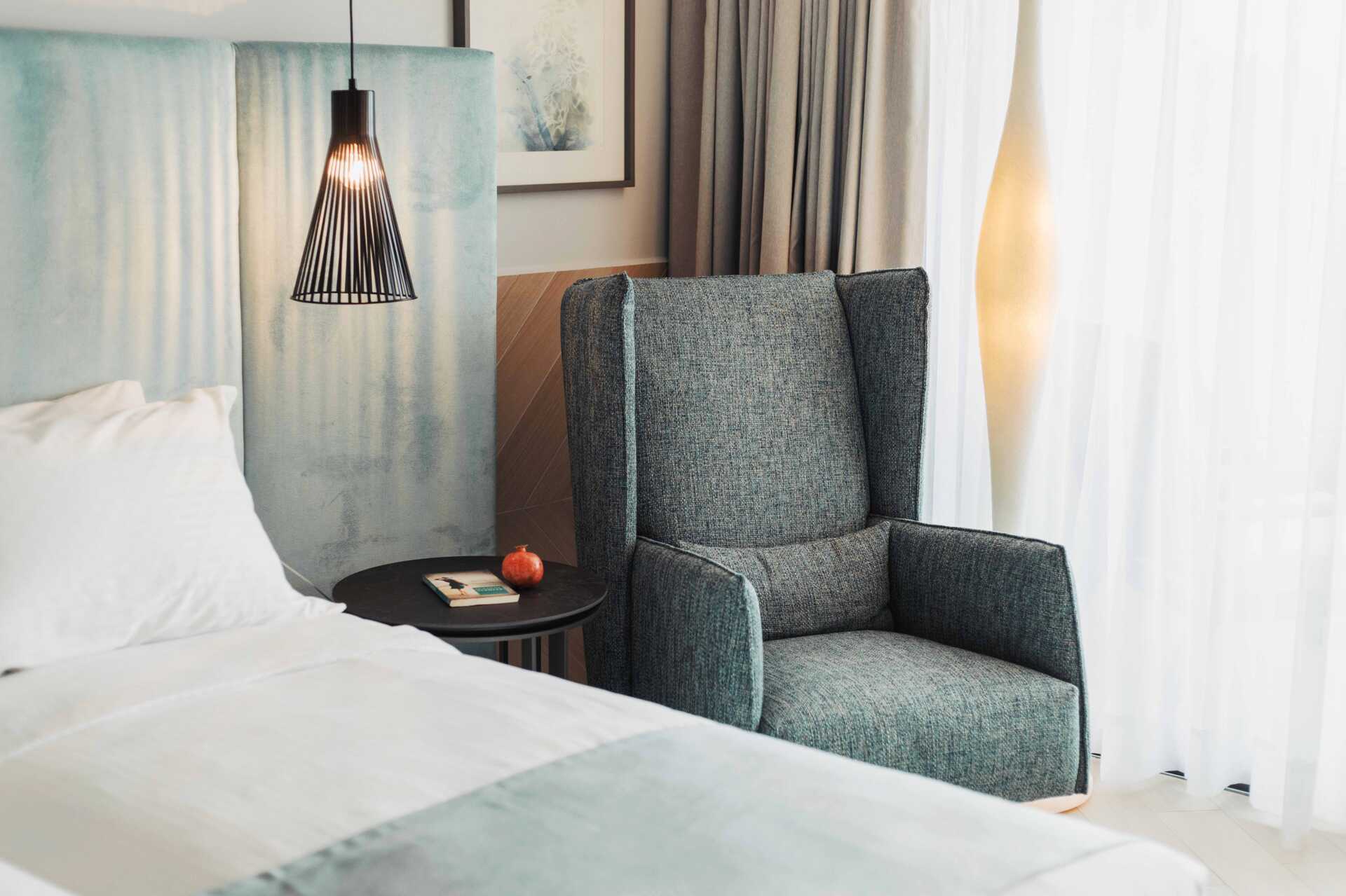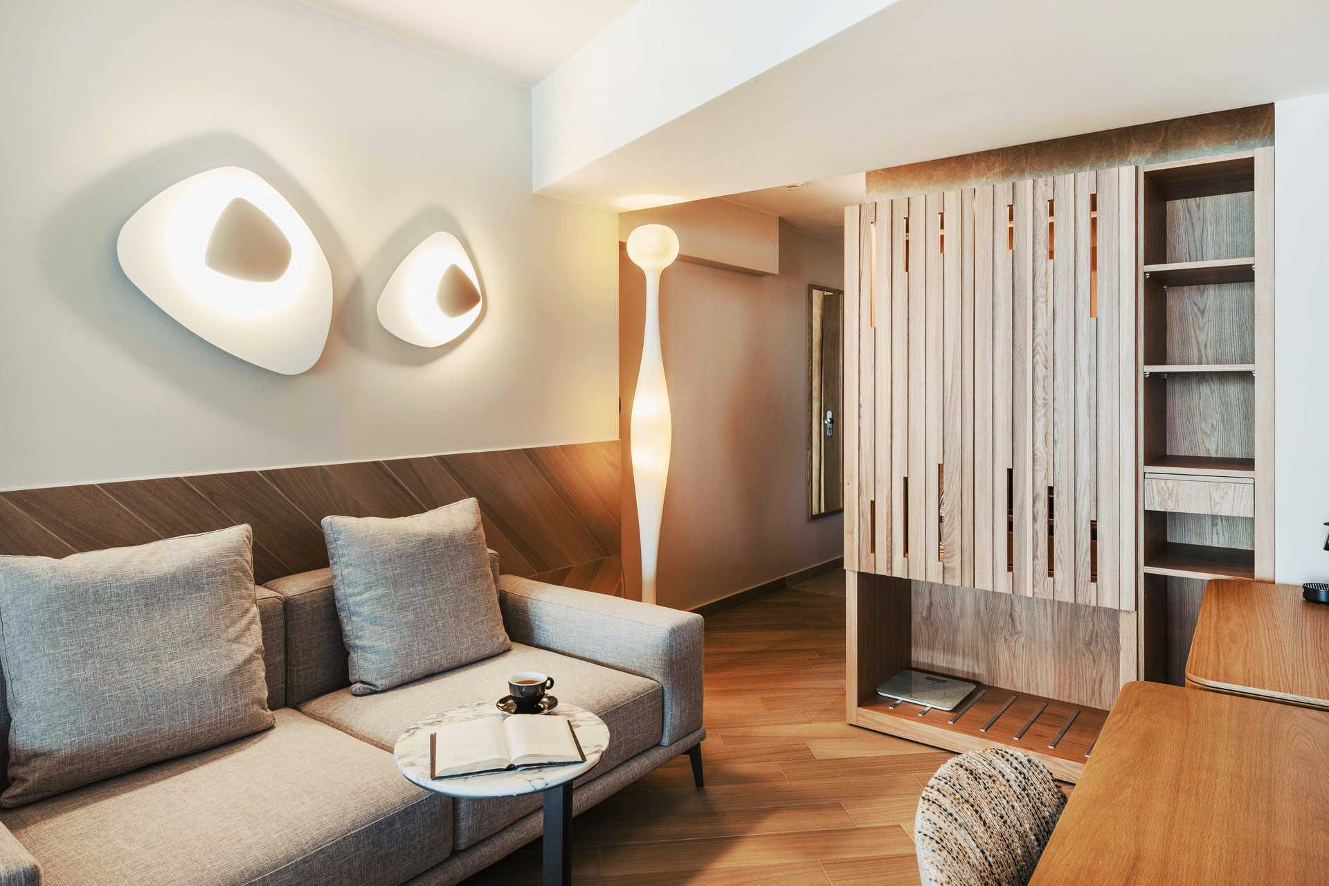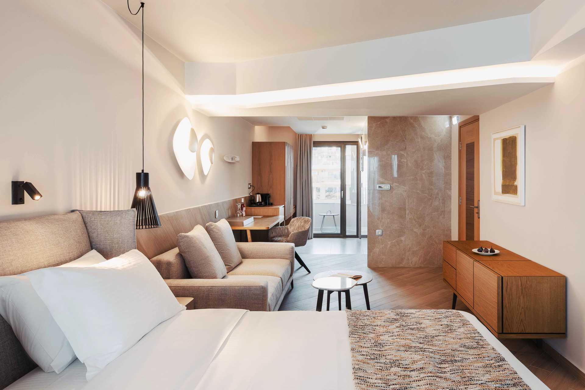 Juniorsvit Premium med havsutsikt och en rymlig balkong om ca 15 kvadratmeter. En dubbelsäng eller två enkelsängar. Wifi, luftkonditionering och wifi ingår. Espressomaskin med kapslar ingår. Vattenkokare samt kaffe och te. Kylskåp. En flaska vin, en flaska vatten och färsk frukt väntar vid ankomst. Tv med internationella kanaler. Strykjärn och strykbräda. Badrockar och tofflor. Hårtork. Badrum med dusch och wc. Städning 7 ggr/vecka.