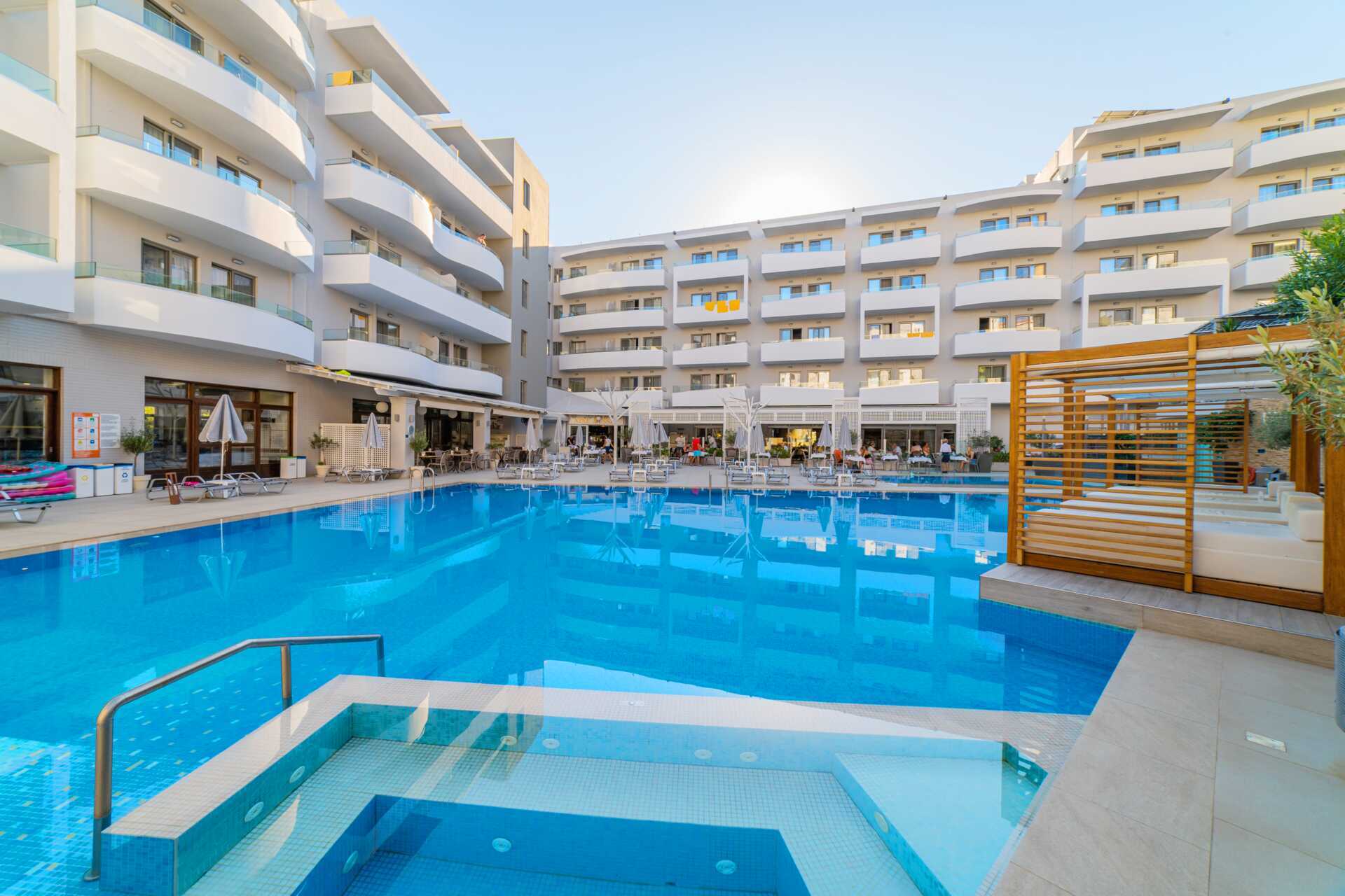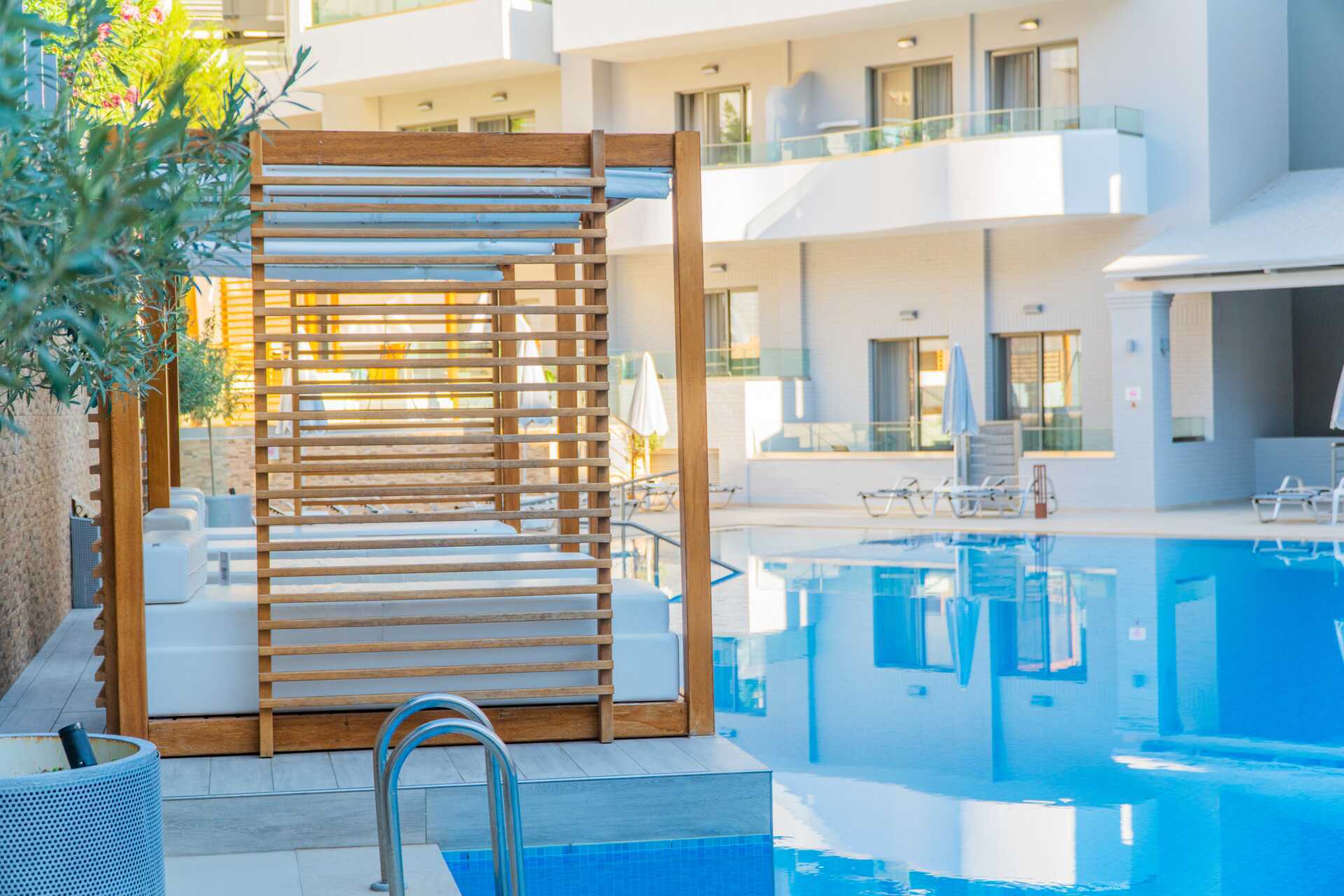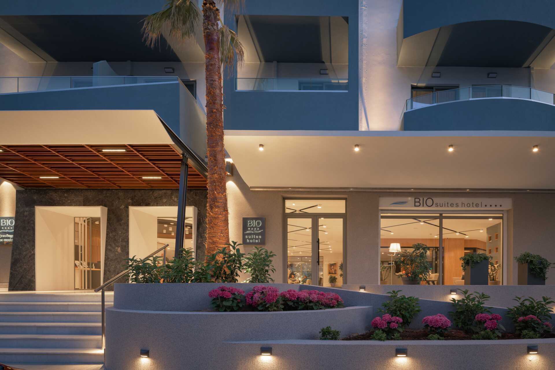 Bio Suites & Spa i Rethymnon är ett fräscht lägenhetshotell med hög standard. Vid det eleganta poolområdet finns en pool samt en separat barnpool. Solstolar, parasoller och handdukar erbjuds utan kostnad. Intill poolen finns en poolbar/restaurang som är till hälften inomhus. En kort promenad bort ligger hotellets egen strandremsa Bio Beach där det finns solstolar och parasoller utan kostnad.