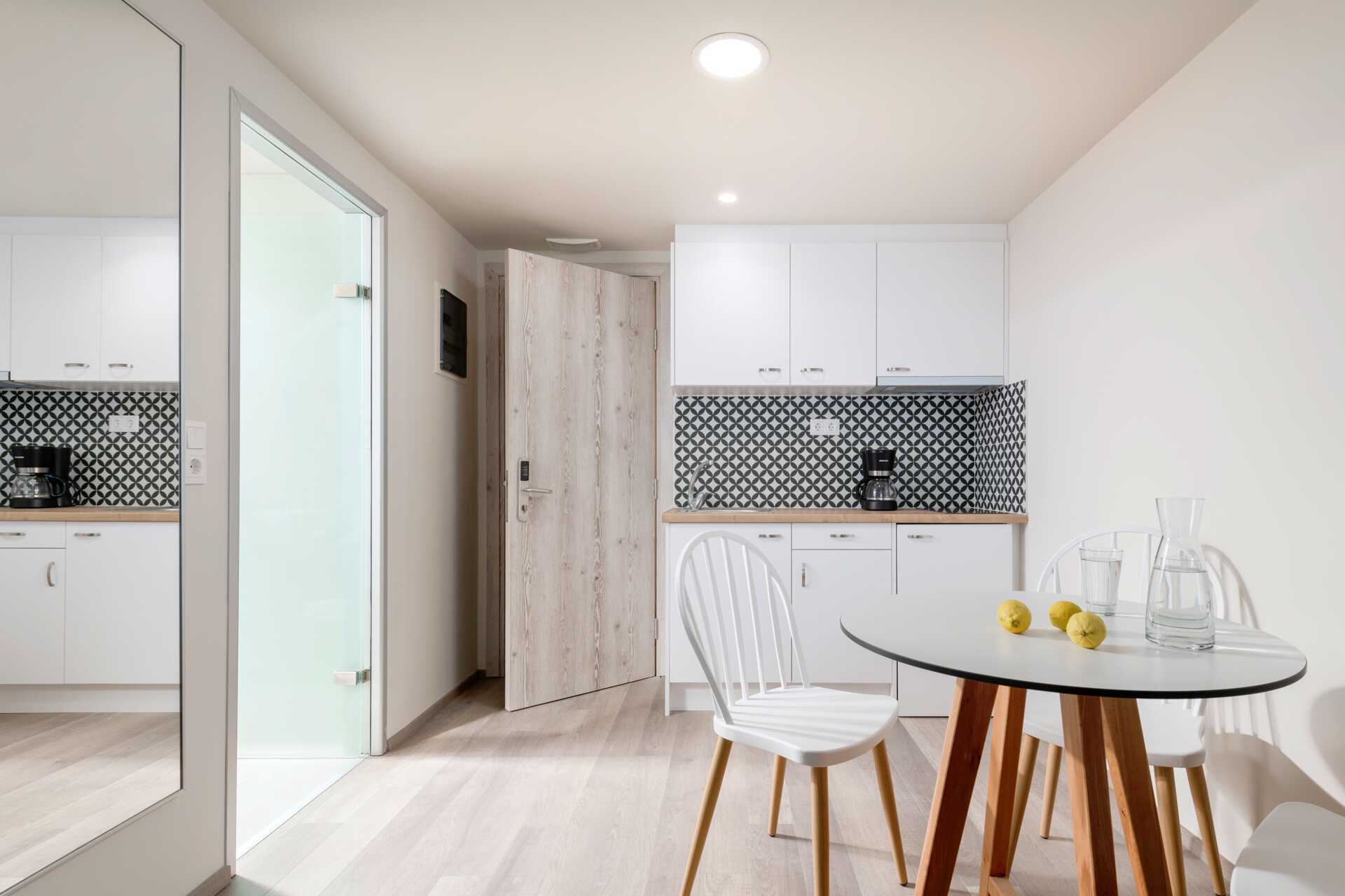 Enrumslägenhet superior med balkong, vissa med poolutsikt. Kombinerat sovrum och minikök. Två enkelsängar. Möjlig extrabädd i bäddsoffa. Minikök med kokplattor, kylskåp, mikrovågsugn, vattenkokare, brödrost, kaffebryggare och enkel köksutrustning. Daglig påfyllning av kaffe och te. Vid ankomst väntar en flaska vin, en flaska vatten och frukt i lägenheten. Luftkonditionering och wifi ingår. Deponering mot avgift. Tv med internationella kanaler. Badrockar och tofflor. Hårtork. Badrum med dusch och wc. Städning 7 gånger/vecka.