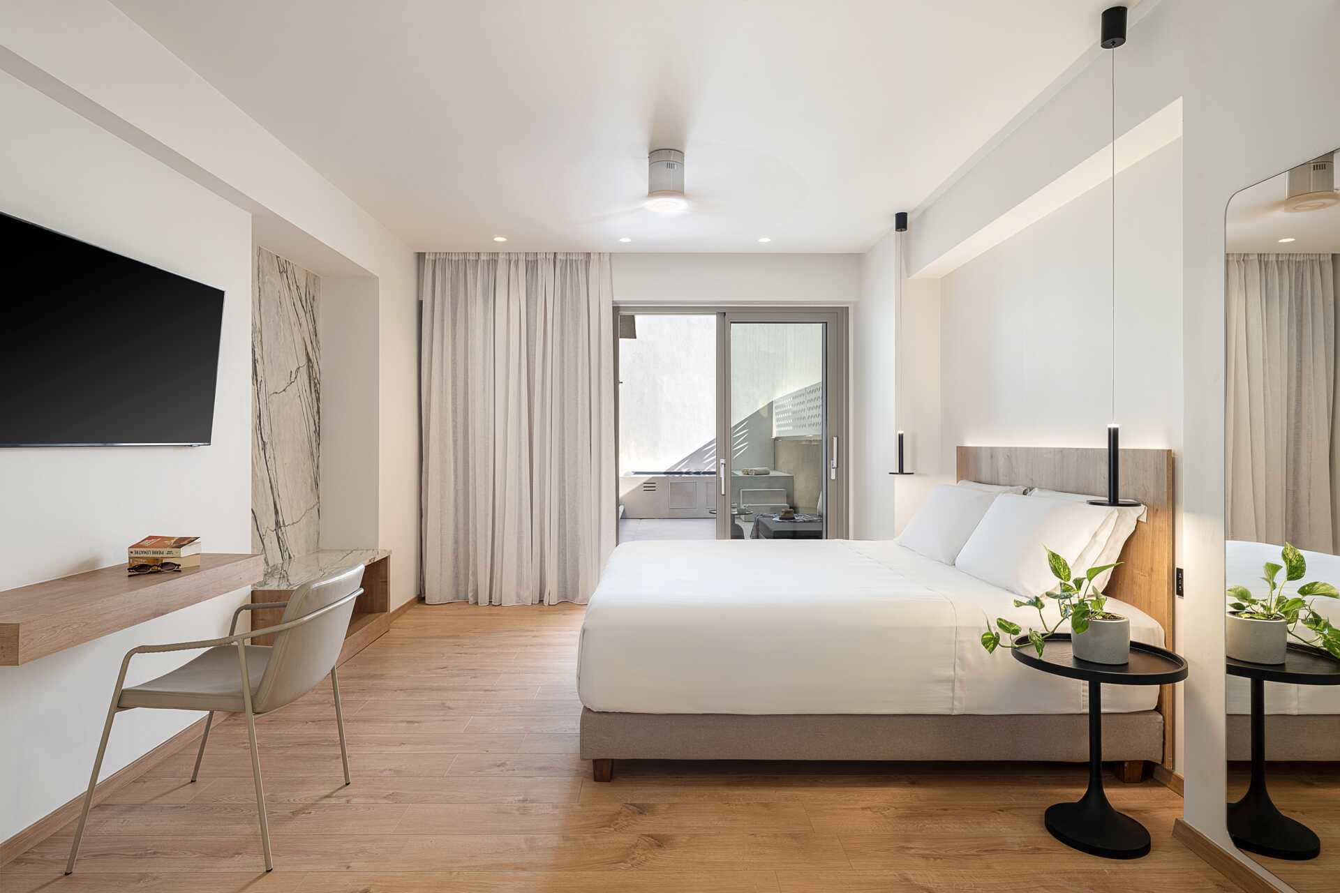 Superiorrum med balkong eller terrass samt en jacuzzi, bord och solstolar på uteplatsen. En dubbelsäng. Wifi, luftkonditionering och deponering ingår. Kylskåp. Vattenkokare. Tv med internationella kanaler. Hårtork. Hårtork. Badrum med dusch och wc. Städning 6 ggr/vecka. Barn under två år räknas in i maxantalet personer i rummet.
