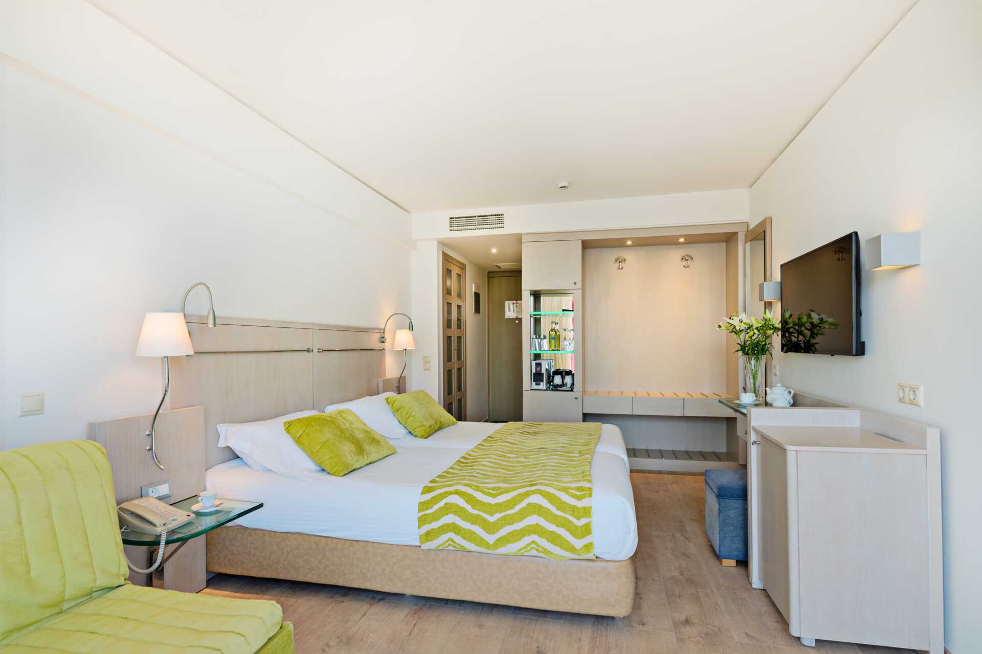 Juniorsvit Superior med balkong med havsutsikt. En dubbelsäng eller två enkelsängar. Möjlighet till extrabädd i enkelsäng, i hopfällbar säng eller i bäddbar fåtölj. Vid ankomst väntar en flaska vin, frukt och en flaska vatten i rummet. Kylskåp. Vattenkokare med kaffe och te. Wifi, luftkonditionering och deponering ingår. Tv med internationella kanaler. Badrockar och tofflor. Hårtork. Badrum med badkar eller dusch samt wc. Städning 7 ggr/vecka. Några rum kan störas av trafiken.