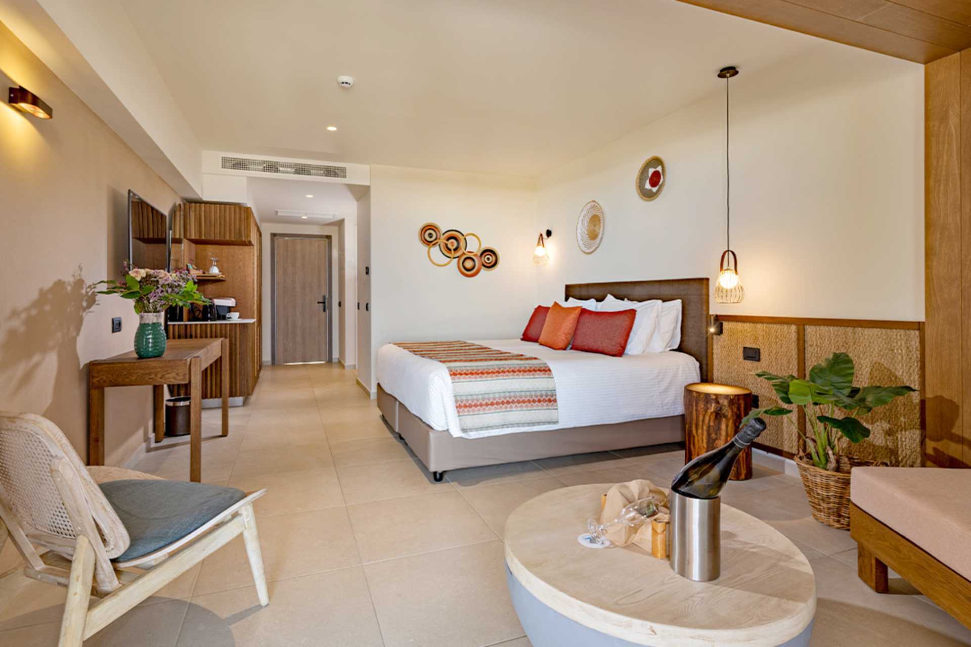 Juniorsvit med balkong. En dubbelsäng. Kuddmeny. Wifi, luftkonditionering och deponering ingår. Kylskåp. Nespresso kaffemaskin - kapslar ingår vid ankomst. Vattenkokare samt kaffe och te. Mousserande vin, en flaska vatten och frukt vid ankomst. Tv med internationella kanaler. Badrockar och tofflor. Strykjärn och strykbräda. Pool- och strandhanddukar. Hårtork. Badrum med dusch och wc. Städning 7 ggr/vecka.