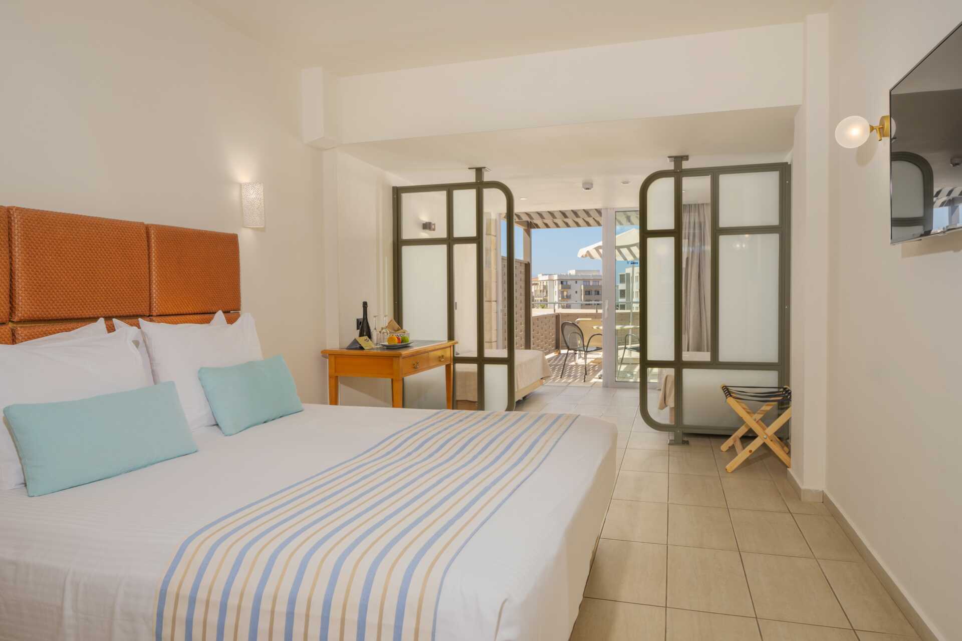Juniorsviter superior med balkong eller terrass med poolutsikt. En dubbelsäng eller två enkelsängar. Möjlighet till extrabädd i bäddsoffa eller i enkelsäng. Bekvämligheter som duntäcken, kuddmeny och myggnät. Vid ankomst väntar blommor, en flaska vatten, en flaska mousserande vin och frukt i rummet. Wifi och luftkonditionering ingår. Deponering mot avgift. Kylskåp, minibar mot avgift. Vattenkokare samt kaffe och te. Espressomaskin. Tv med internationella kanaler. I varje juniorsvit superior finns också en surfplatta. Poolhanddukar finns på rummet vid ankomst. Badrockar och tofflor. Hårtork. Badrum med dusch och wc. Städning 7 ggr/vecka. Barn under två år räknas in i maxantalet personer i rummet.