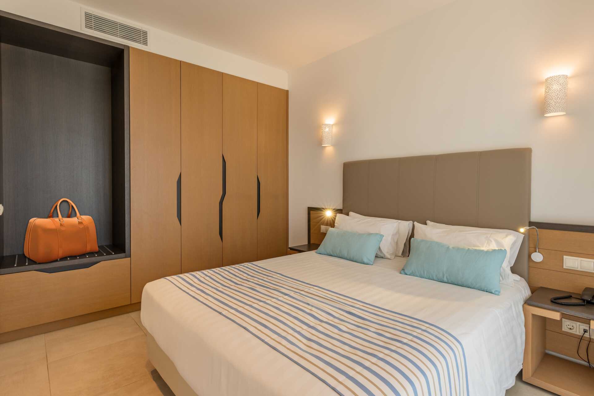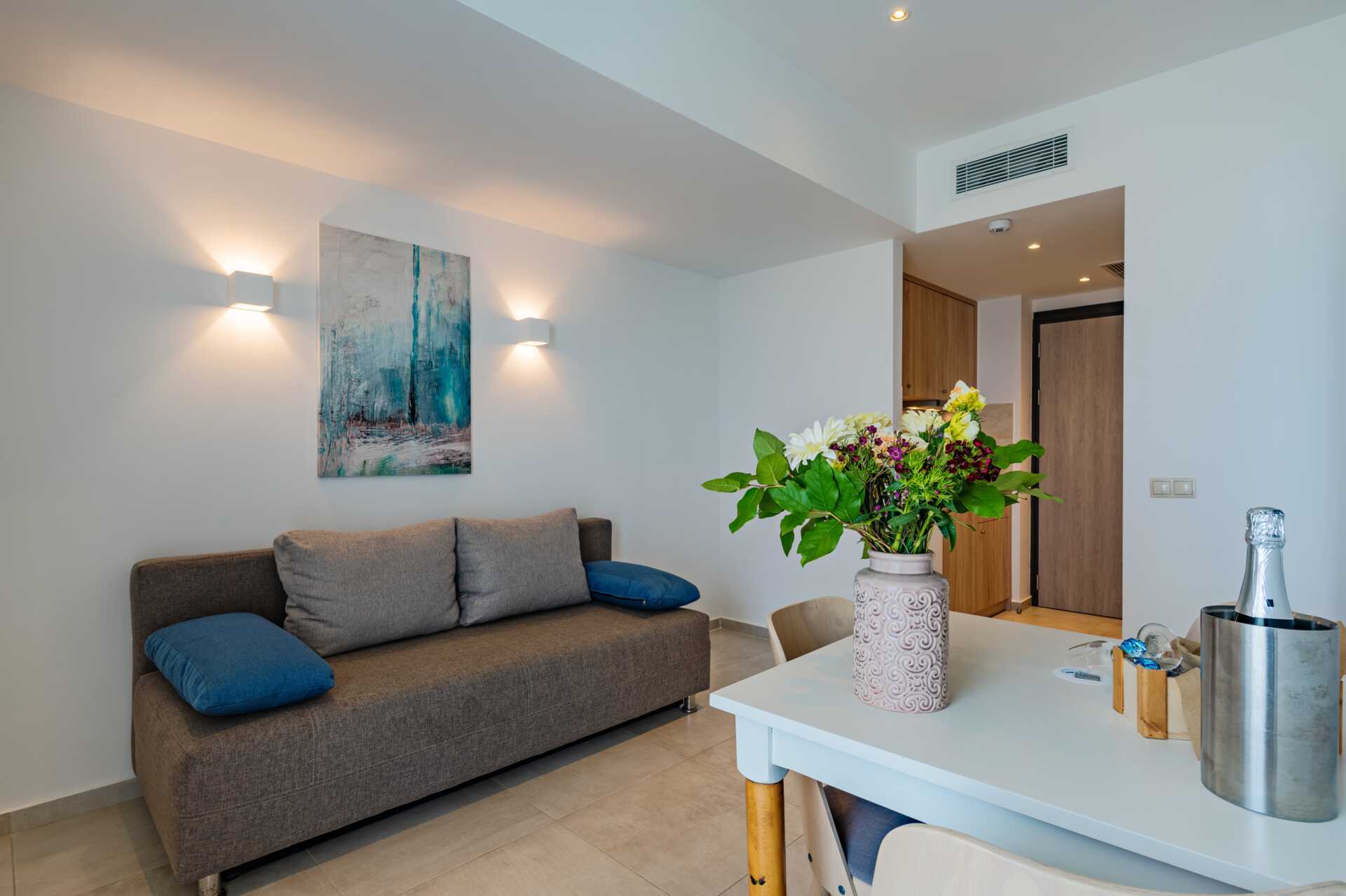 Tvårumssvit med balkong eller terrass. Sviten består av ett sovrum och ett vardagsrum. En dubbelsäng eller två enkelsängar. Möjlighet till extrabäddar i bäddsoffa. Bekvämligheter som duntäcken, kuddmeny och myggnät. Vid ankomst väntar blommor, en flaska vatten, en flaska mousserande vin och frukt i rummet. Wifi och luftkonditionering ingår. Deponering mot avgift. Kylskåp, minibar mot avgift. Vattenkokare samt kaffe och te. Espressomaskin. Tv med internationella kanaler Poolhanddukar finns på rummet vid ankomst. Badrockar och tofflor. Hårtork. Badrum med badkar och wc. Städning 7 ggr/vecka. Barn under två år räknas in i maxantalet personer i rummet.