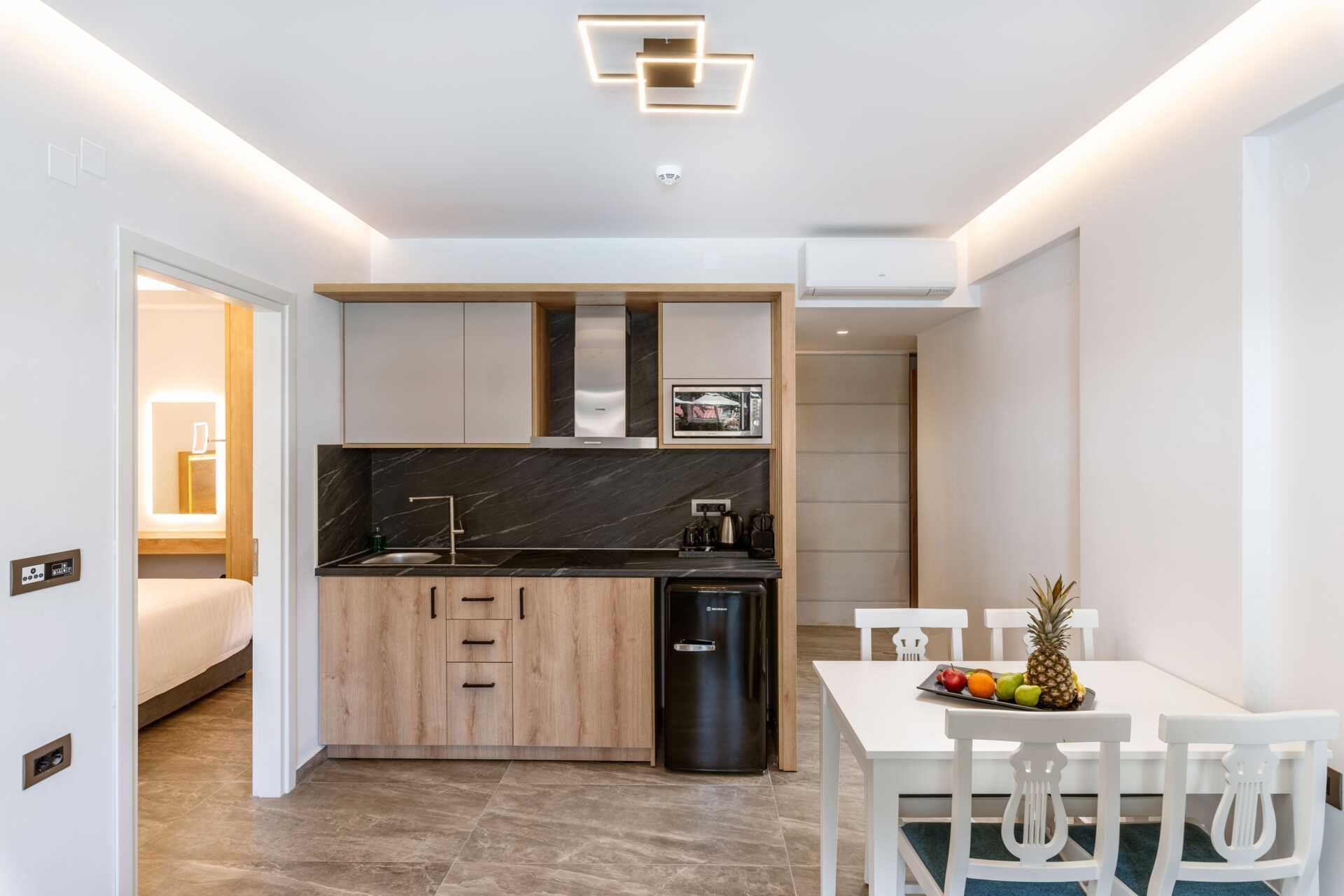 Tvårumslägenhet superior av varierande storlek och utseende. Balkong eller markterrass med poolutsikt. Sovrum och kombinerat vardagsrum med minikök. En dubbelsäng. Möjlighet till extrabäddar i två bäddsoffor. Minikök med kokplattor, kylskåp, vattenkokare, brödrost, mikrovågsugn och bra köksutrustning. Tvättmaskin. Strykjärn och strykbräda. Wifi, luftkonditionering och deponering ingår. Tv med internationella kanaler. Hårtork. Badrum med dusch och wc. Städning 6 ggr/vecka.