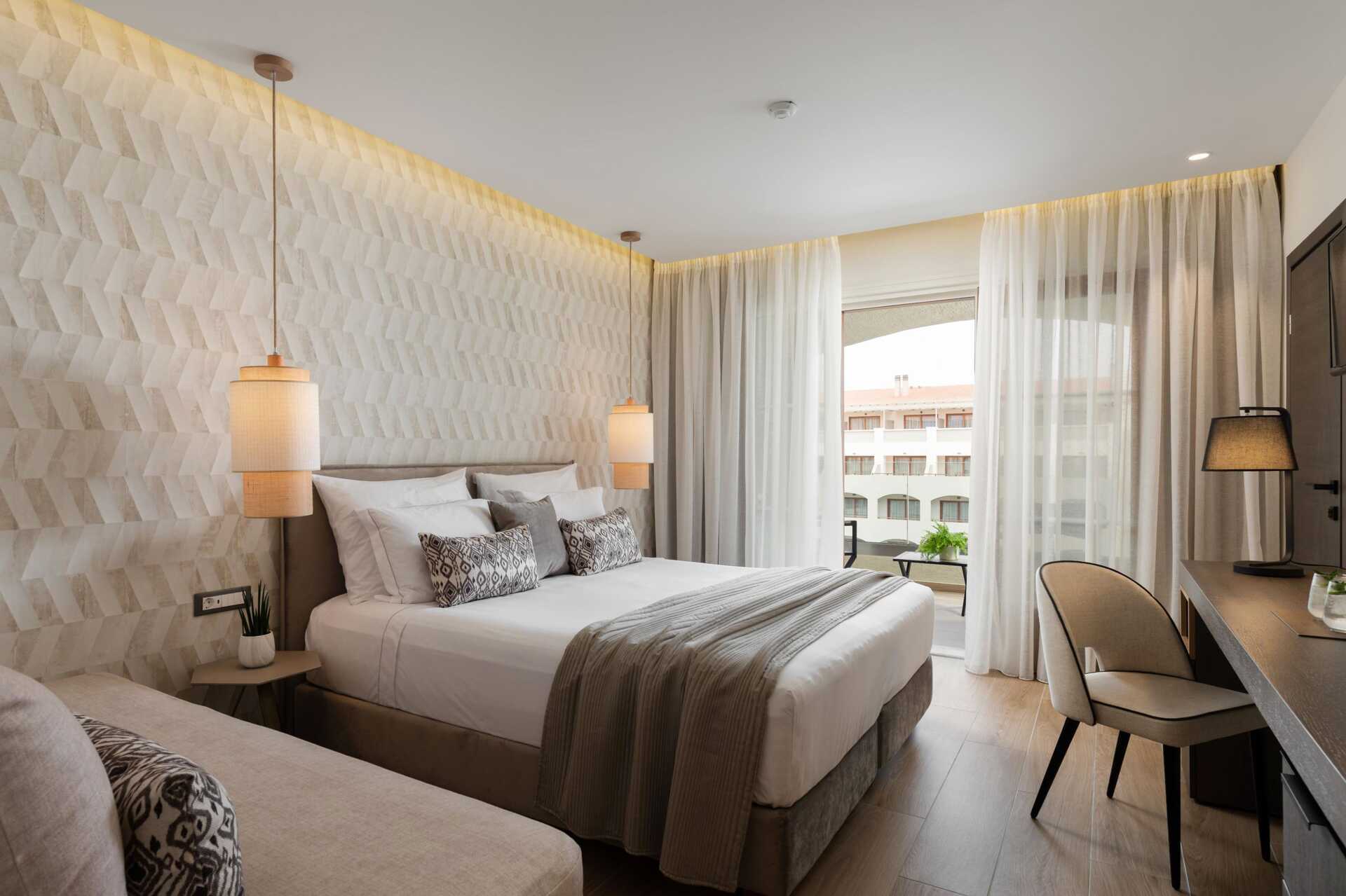 Superiorrum med balkong, vissa med poolutsikt. Rummen finns i både huvudbyggnaden och i sidobyggnaden. En dubbelsäng. Möjlighet till extrabädd i bäddsoffa. Wifi, luftkonditionering och deponering ingår. Kylskåp. Vattenkokare samt kaffe och te. Tv med internationella kanaler. Badrockar och tofflor. Hårtork. Badrum med badkar eller dusch samt wc. Städning 7 ggr/vecka.