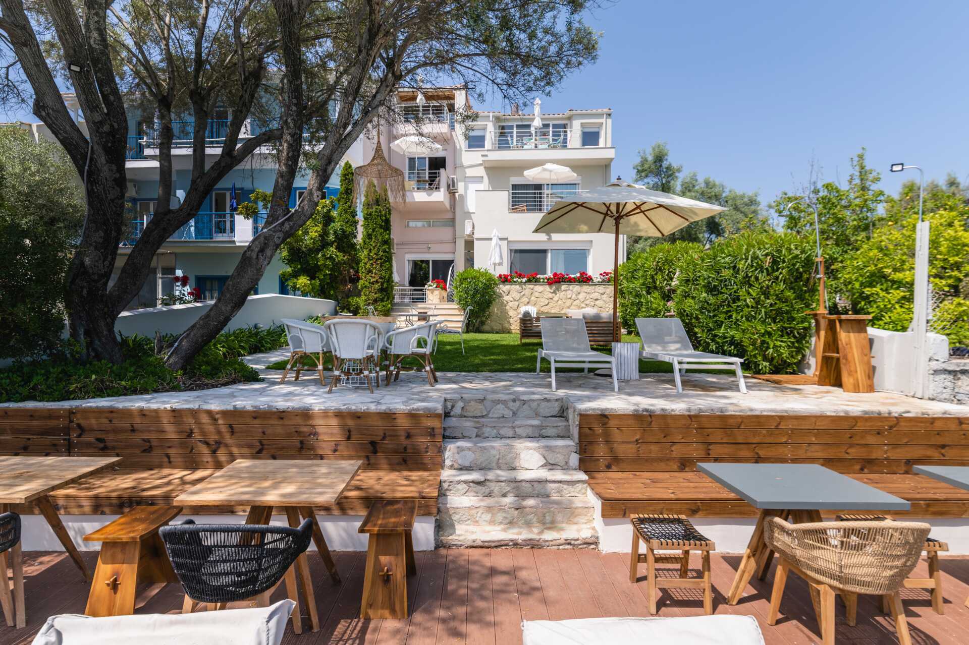 Grand Suite med balkong och havsutsikt. En dubbelsäng eller två enkelsängar. I vissa rum finns möjlighet till extrabädd för en tredje person. Wifi och luftkonditionering ingår. Minikök med kylskåp, kokplattor, brödrost och enkel köksutrustning. Tv med lokala kanaler. Hårtork. Badrum med dusch och wc. Städning 6 ggr/vecka.