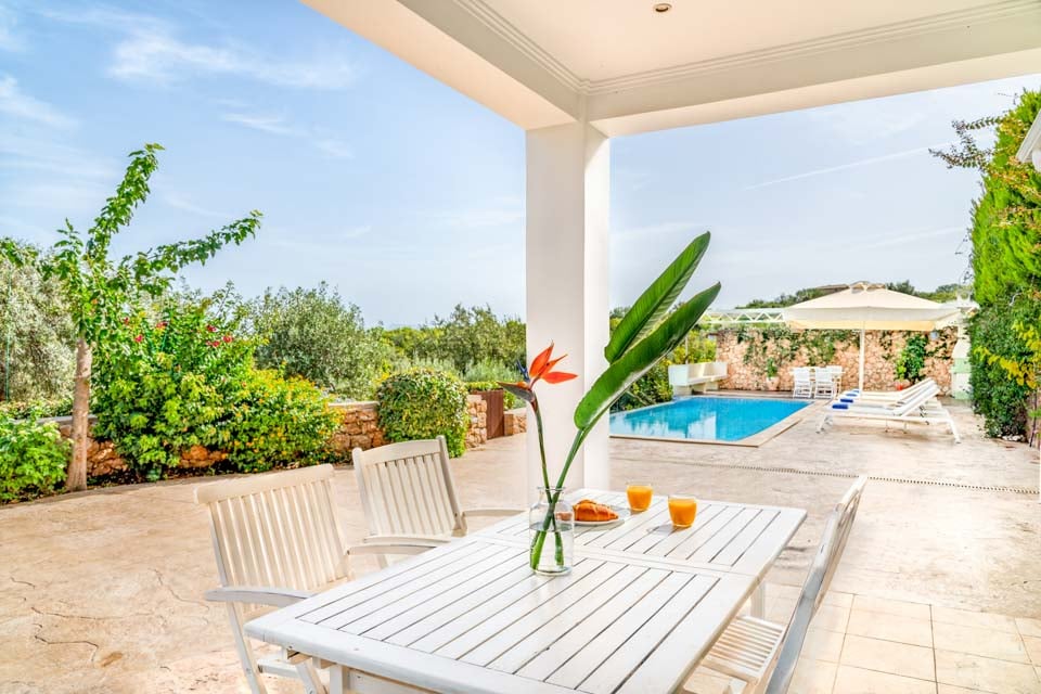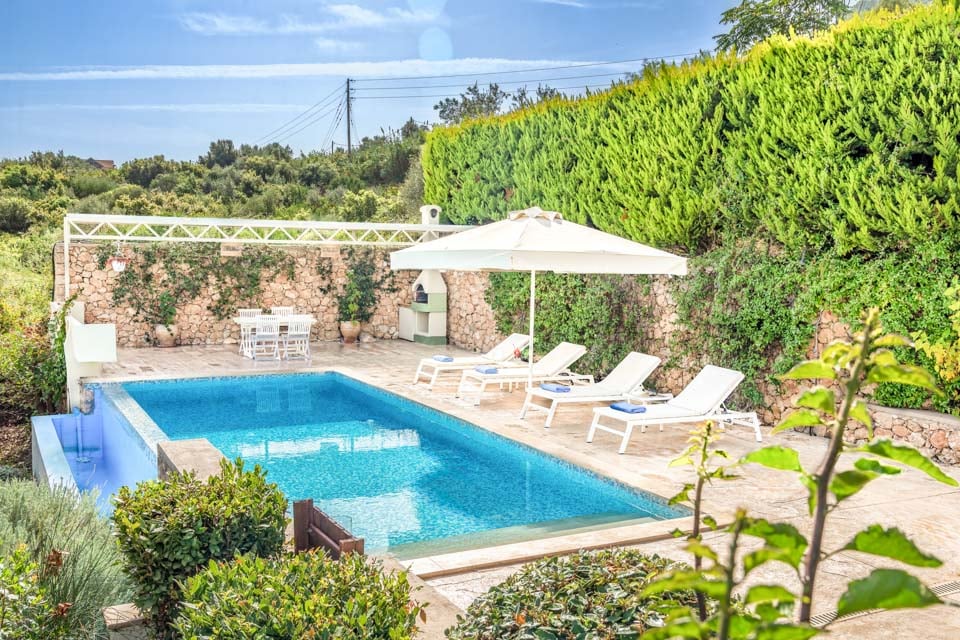 Håll dig sval i middagsvärmen genom att koppla av i poolen eller ducka i skuggan och de luftkonditionerade rummen, eller arbeta på din solbränna och njut av solen på solstolarna som finns utspridda på terrassen. Alternativt kan du bege dig ner till de gömda stränderna Pasha och Perigali, perfekta platser för att koppla av vid kusten eller till och med vada ut i det lugna vattnet för ett dopp i Joniska havet.