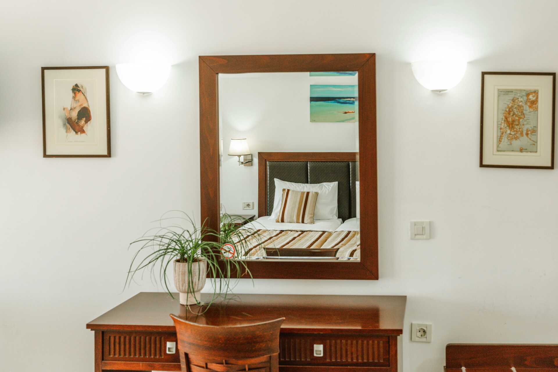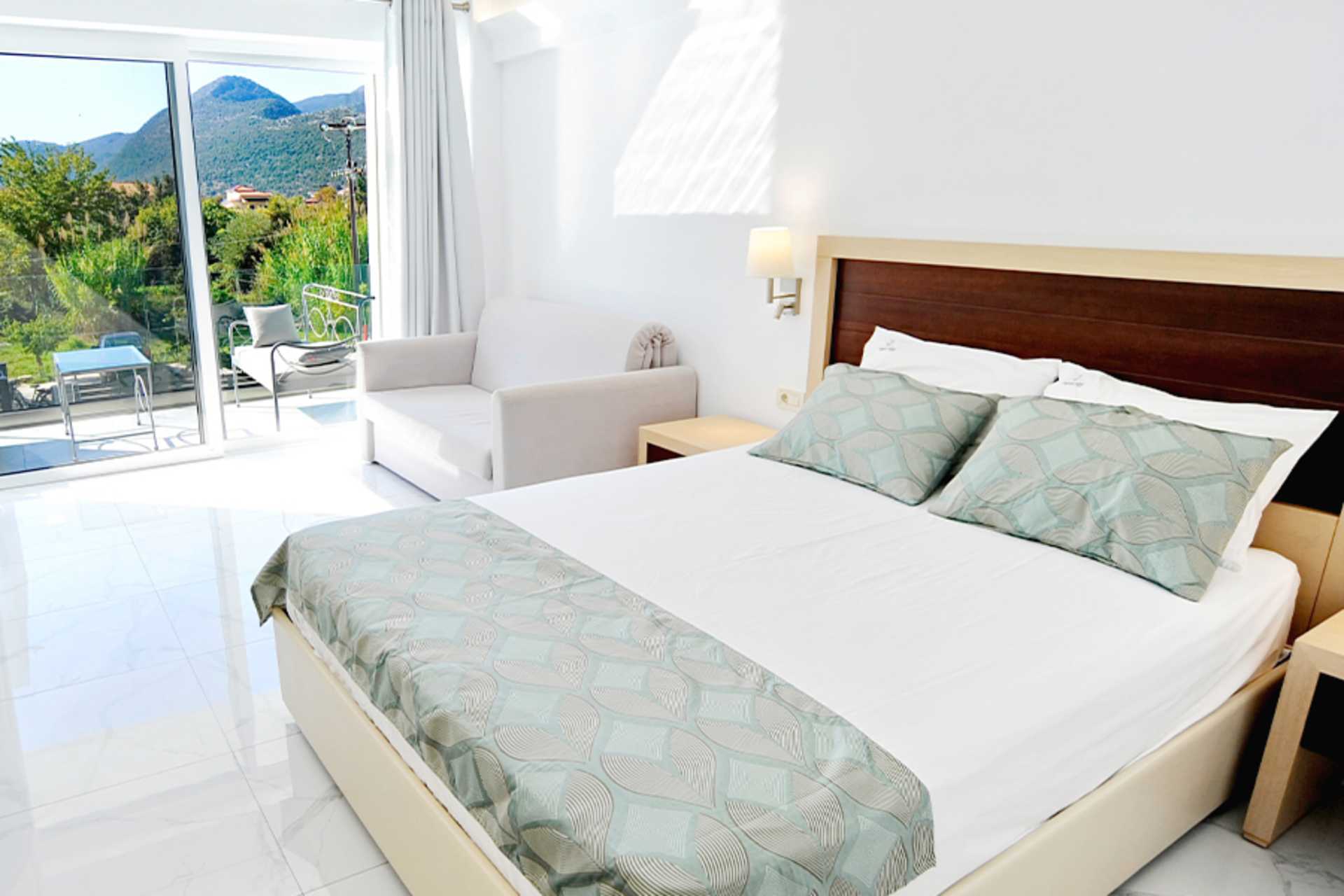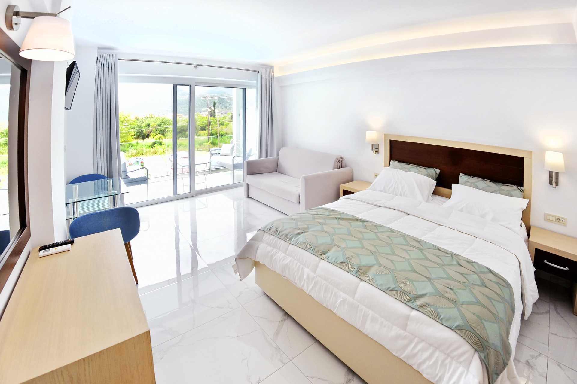 Enrumslägenhet deluxe med balkong eller markterrass och poolutsikt. Lägenheterna ligger i den nya delen. Sovrum kombinerat med minikök. En dubbelsäng. Möjlighet till extrabäddar i bäddsoffa. Minikök med kokplattor, kylskåp, vattenkokare och enkel köksutrustning. Wifi, luftkonditionering och deponering ingår. Tv med lokala kanaler. Badrum med dusch och wc. Städning 6 ggr/vecka.