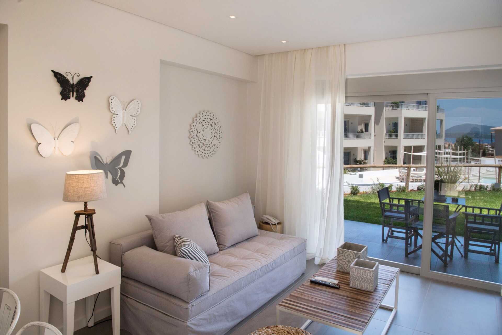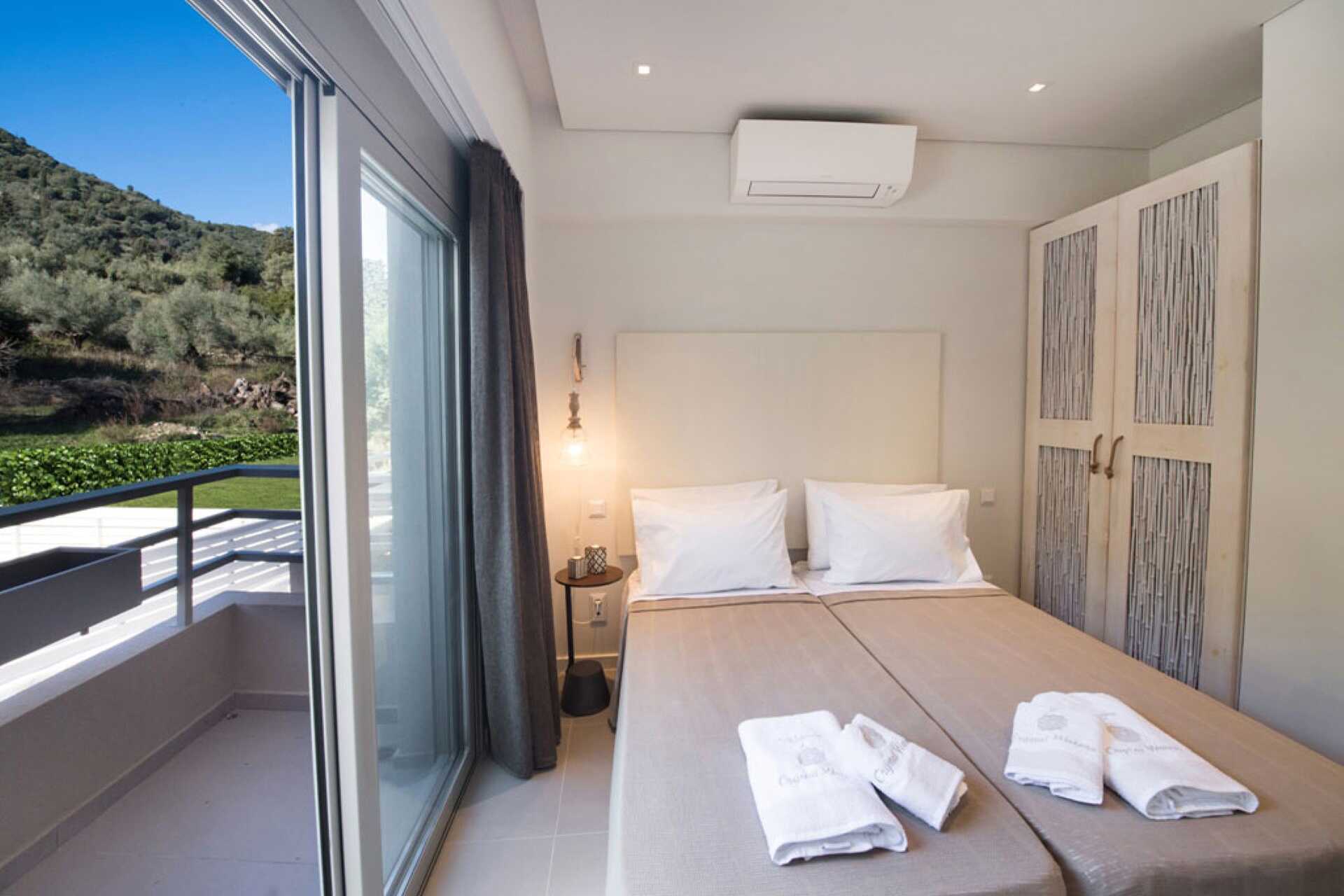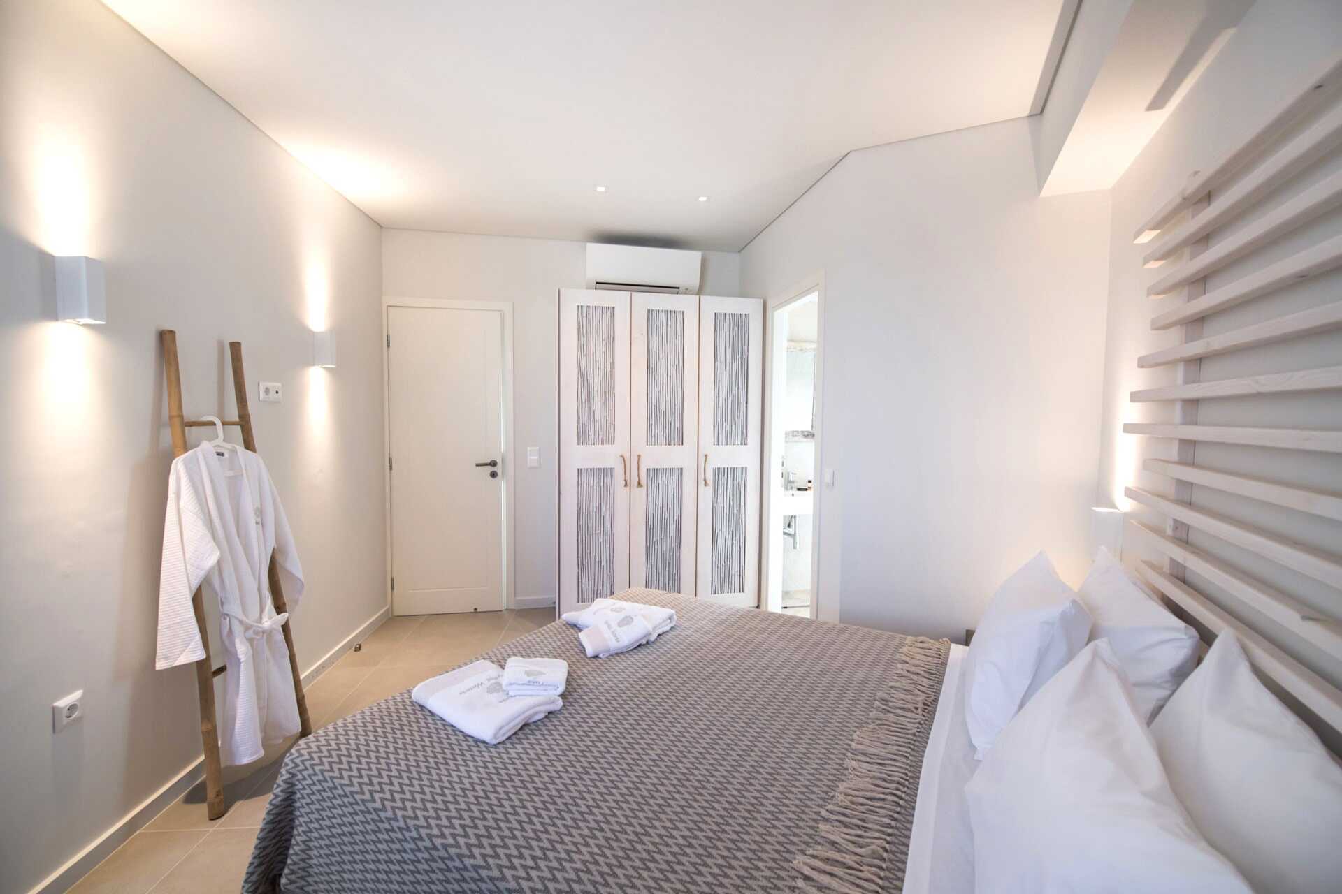 Tvårumssvit med markterrass. På entréplan finns ett vardagsrum med matplats - vissa vid bardisk, en eller två bäddsoffor, toalett och en uteplats. En trappa upp finns två sovrum, varav ett med balkong. Ett sovrum med en dubbelsäng och ett sovrum med två enkelsängar samt ett badrum med dusch och wc. Wifi, luftkonditionering och deponering ingår. Minibar. Vattenkokare samt kaffe och te. Tv med internationella kanaler. Hårtork. Städning 7 ggr/vecka.