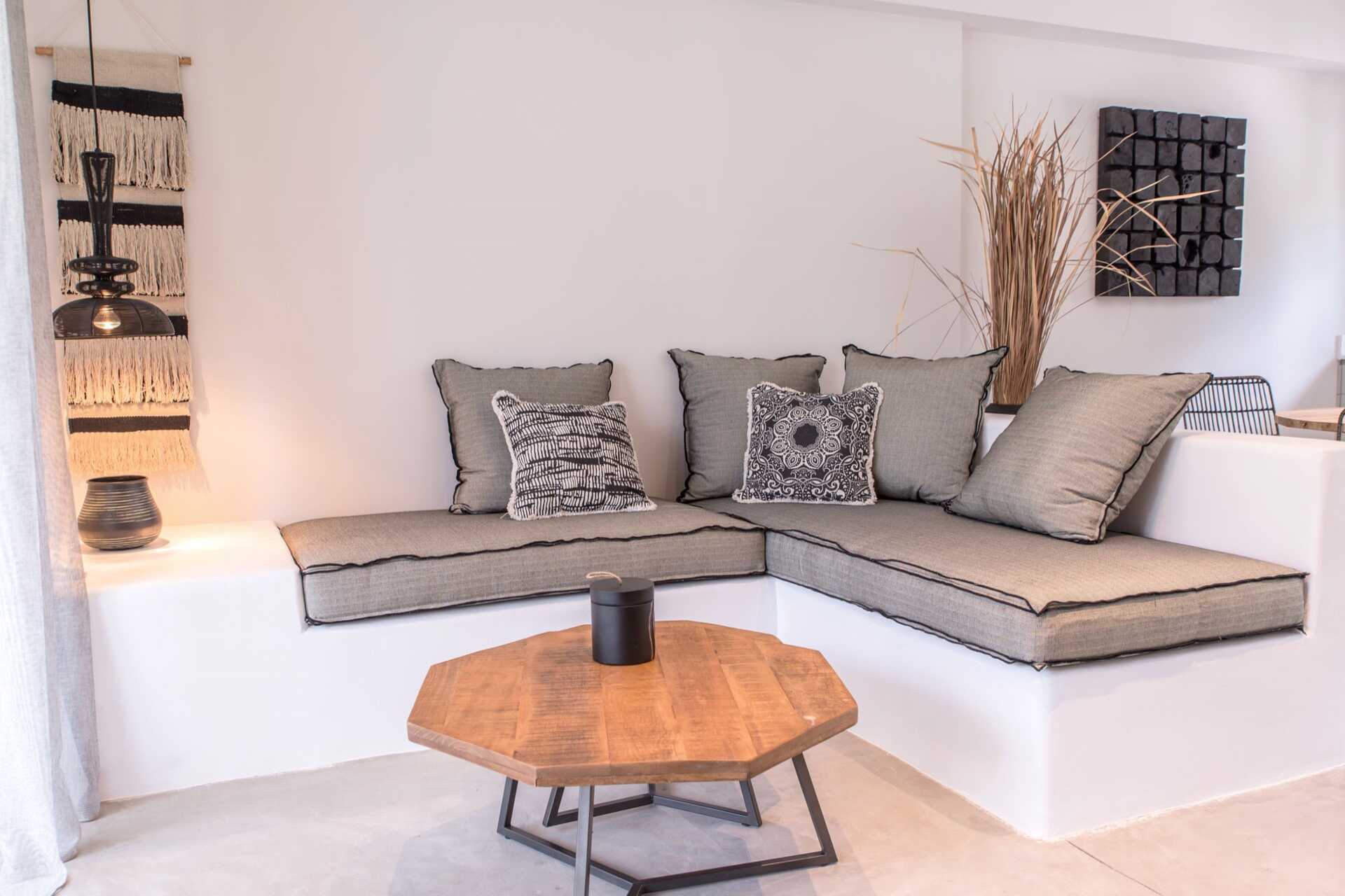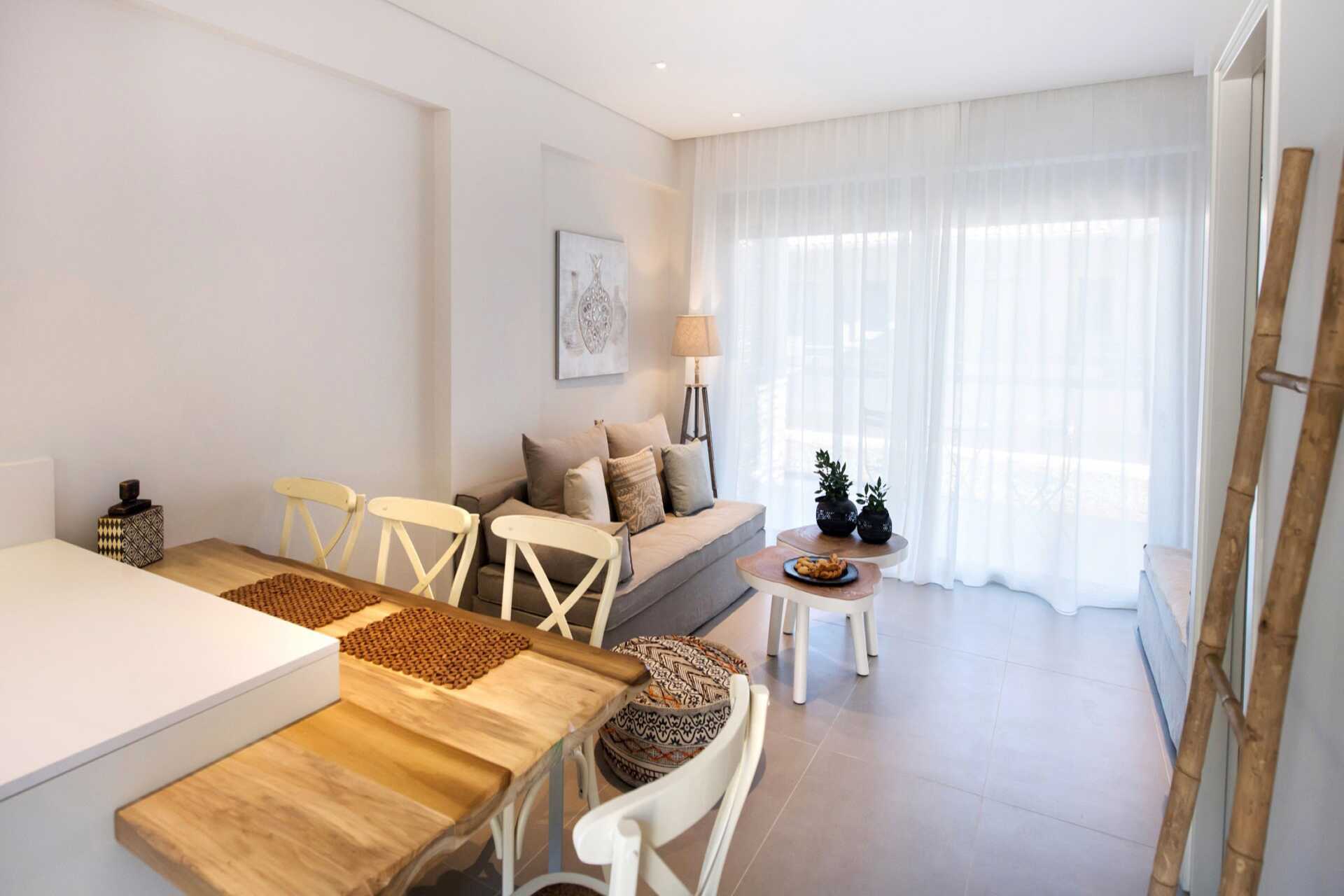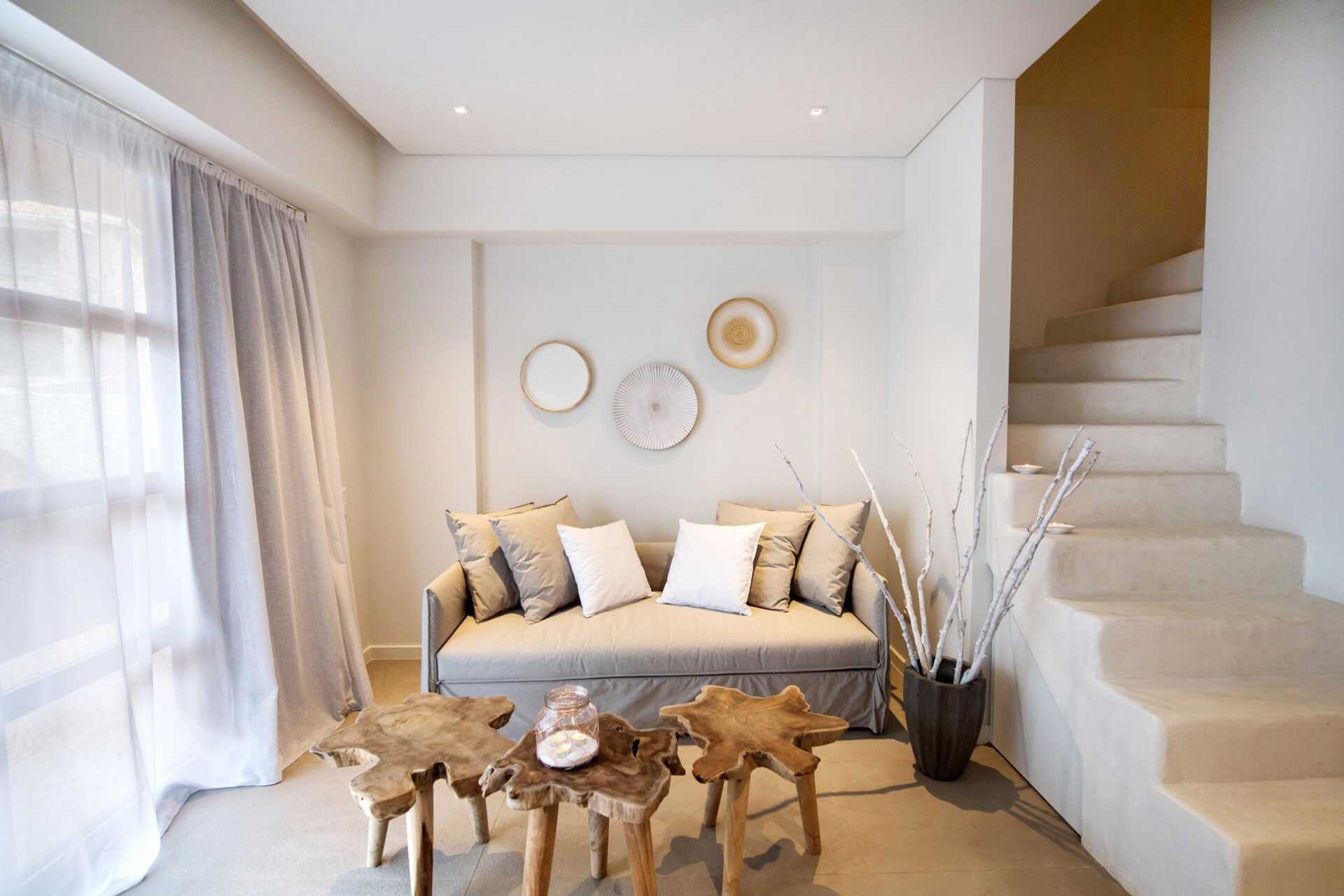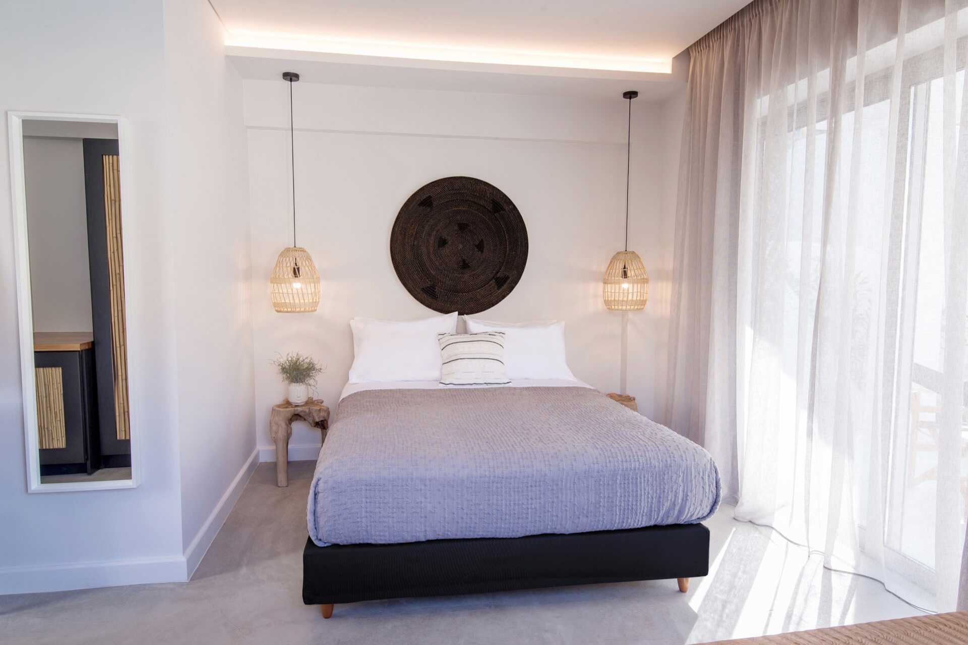 Tvårumssvit med markterrass. På entréplan finns ett vardagsrum med matplats - vissa vid bardisk, en eller två bäddsoffor, toalett och en uteplats. En trappa upp finns två sovrum, varav ett med balkong. Ett sovrum med en dubbelsäng och ett sovrum med två enkelsängar samt ett badrum med dusch och wc. Wifi, luftkonditionering och deponering ingår. Minibar. Vattenkokare samt kaffe och te. Tv med internationella kanaler. Hårtork. Städning 7 ggr/vecka.