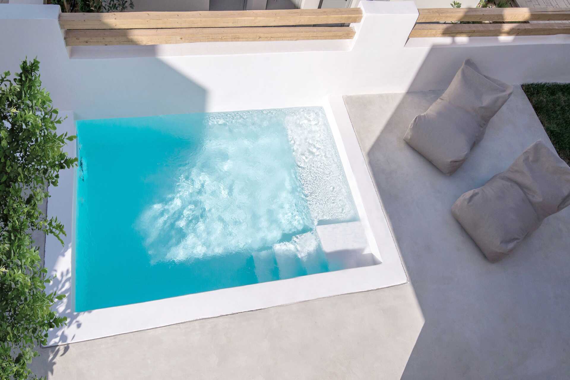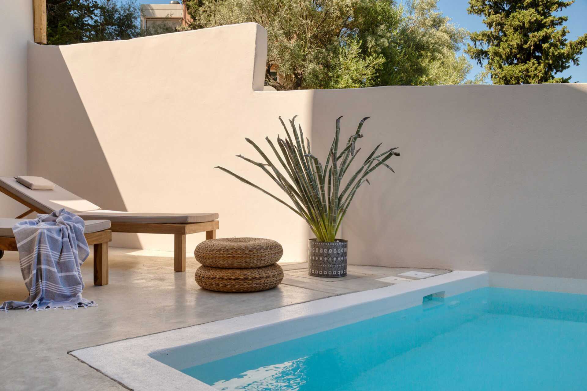 Dubbelrum med markterrass och privat pool. På terrassen finns stolar och bord samt trappsteg ner i poolen. En dubbelsäng eller två enkelsängar. Wifi, luftkonditionering och deponering ingår. Minibar. Vattenkokare samt kaffe och te. Tv med internationella kanaler. Hårtork. Badrum med dusch och wc. Städning 7 ggr/vecka.