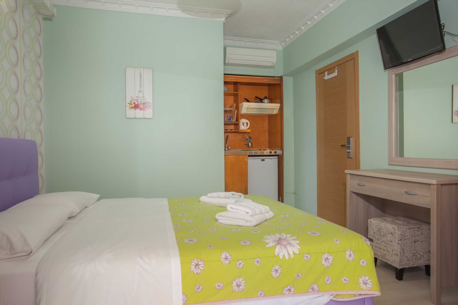 Renoverad enrumslägenhet med balkong, vissa med poolutsikt. Till sommaren 2025 är några lägenheter helrenoverade och några är delvis renoverade där badrummet inte har renoverats. Kombinerat sovrum och minikök med kokplattor, kylskåp och enkel köksutrustning. Wifi ingår. Luftkonditionering och deponering mot avgift. Tv. Badrum med dusch och wc. Städning 5 ggr/vecka.