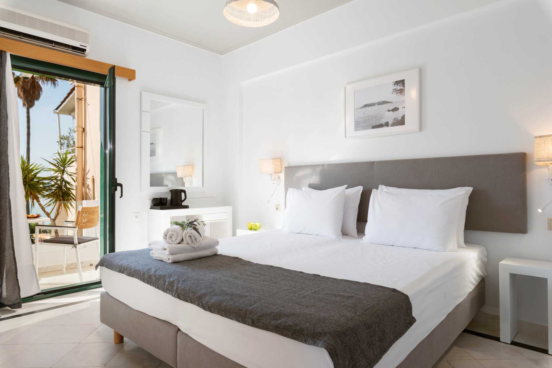 Gregory’s har ett perfekt läge direkt på sandstranden i Nidri och här finns solstolar och parasoller mot avgift. Strandhanddukar finns på hotellet mot en avgift. Till den charmiga hamnen, där fisk- och skaldjursrestauranger och mysiga tavernor ligger på rad är det bara en kort promenad.