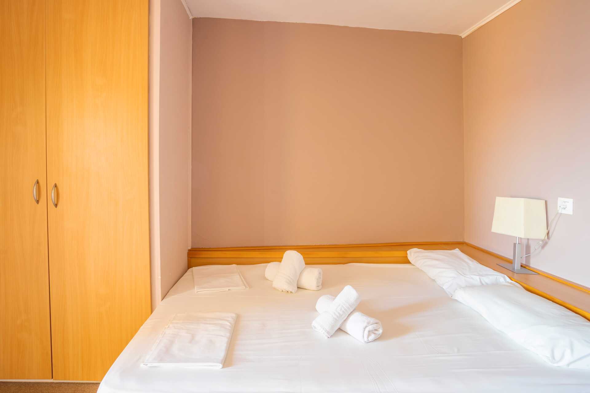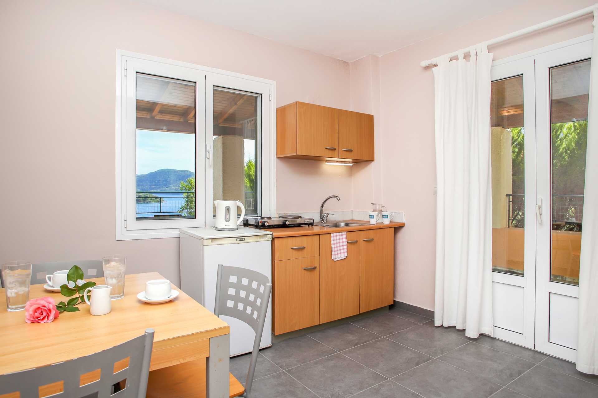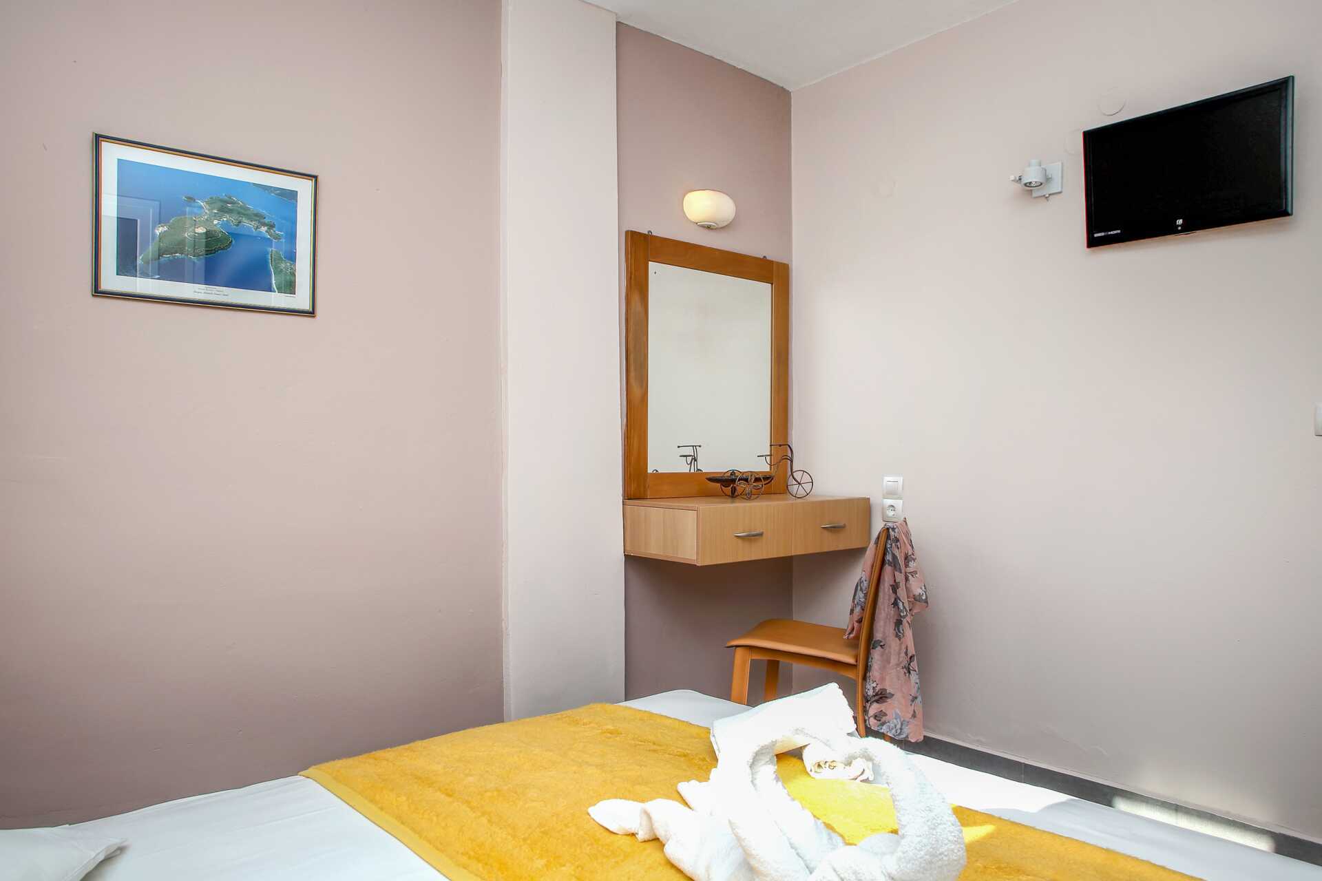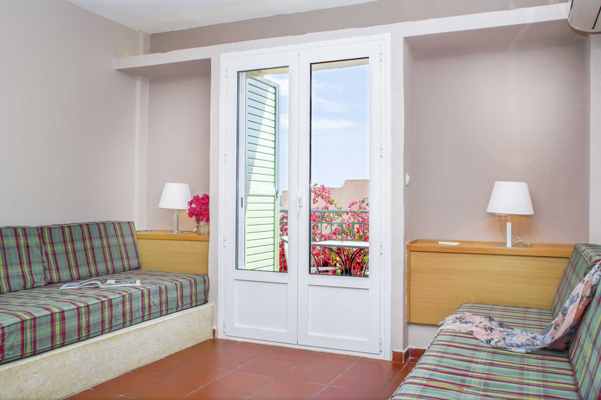 Ej renoverade tvårumslägenheter av varierande storlek och standard. Delad uteplats, vissa med begränsad havsutsikt. Vissa delade uteplatser kan användas av andra hotellgäster som gångväg. Ett sovrum och ett kombinerat vardagsrum med minikök. Golvfasta sängar - en dubbelsäng eller två enkelsängar. Möjlighet till extrabäddar i bäddbar soffa. Minikök med kokplattor, vattenkokare, kylskåp och enkel köksutrustning. Wifi och luftkonditionering ingår. Tv med lokala kanaler i sovrummet. Hårtork. Badrum med badkar eller dusch samt wc. Städning 3 ggr/vecka.