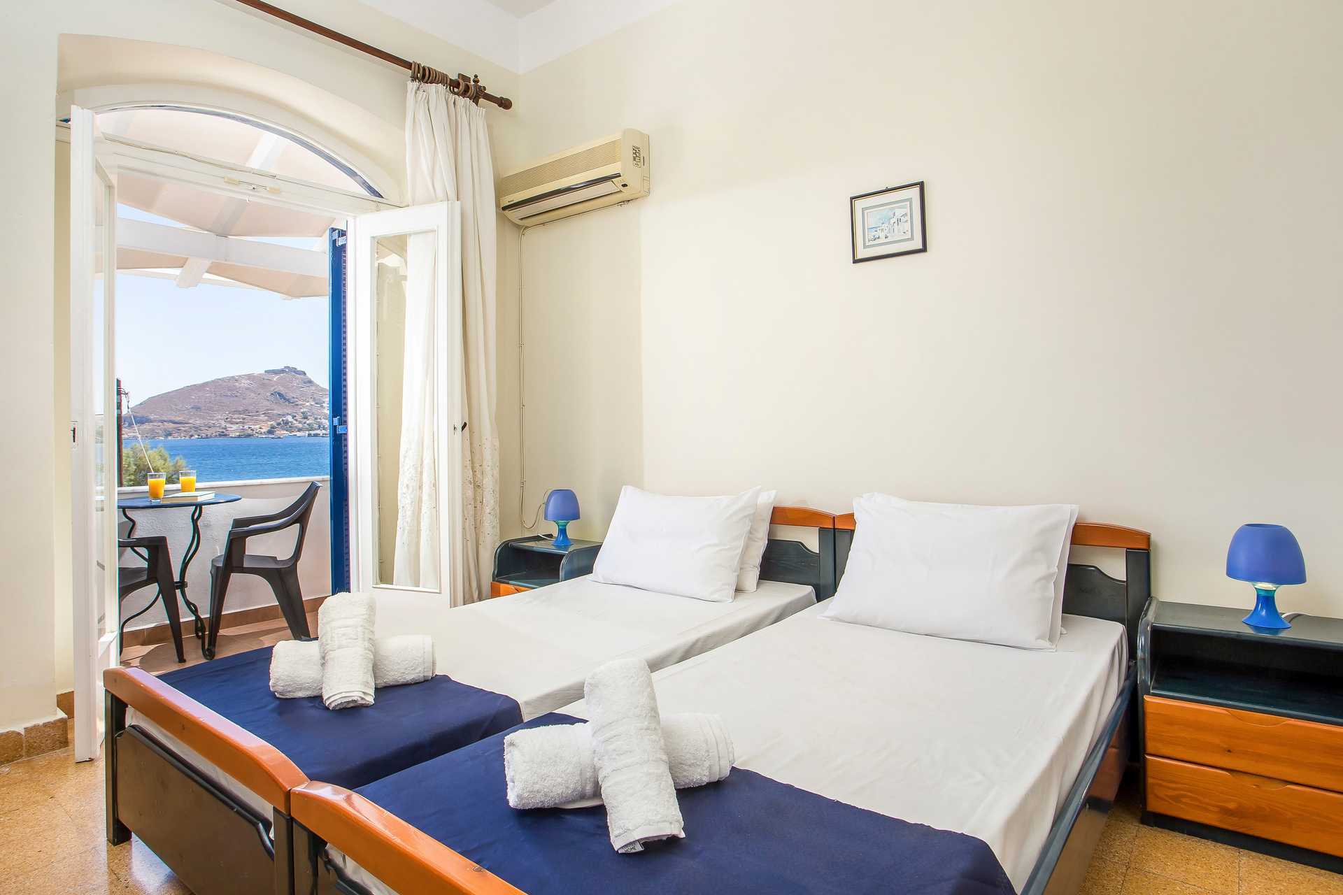 Dubbelrum i varierande storlek med balkong, vissa med havsutsikt. En dubbelsäng eller två enkelsängar. Wifi, luftkonditionering och deponering ingår. Kylskåp. Vattenkokare samt kaffe och te. Hårtork. Badrum med dusch och wc. Städning 6 ggr/vecka.