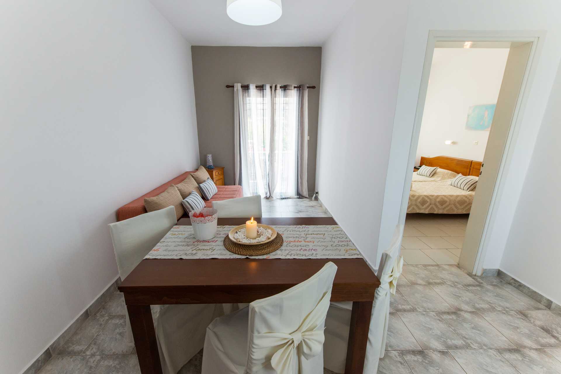 Enrumslägenhet med balkong, vissa med poolutsikt och vissa med begränsad havsutsikt. Kombinerat sovrum med minikök. Två enkelsängar. Möjlighet med extrabädd i bäddsoffa. Minikök med kylskåp och frysfack, kokplattor, smörgåsgrill, vattenkokare och enkel köksutrustning. Kaffebryggare samt ytterligare köksutrustning finns att låna mot förfrågan i receptionen. Wifi och luftkonditionering ingår. Tv med internationella kanaler. Hårtork. Badrum med dusch och wc. Hög kant till duschen. Städning 7 ggr/vecka. Några av rummen är renoverade och de övriga rummen kan skilja sig åt med olika typer av möbler, färger osv.