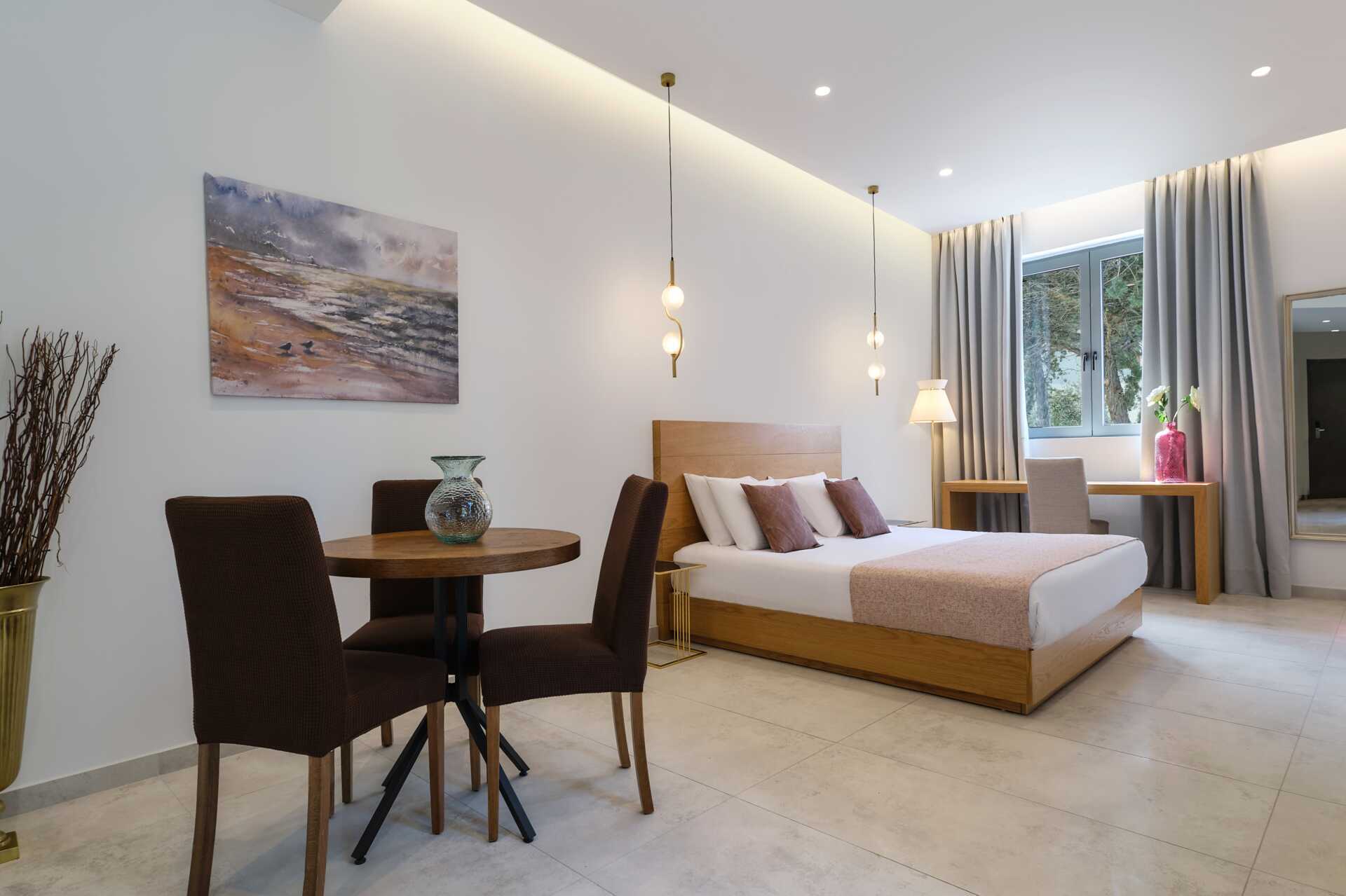 Superiorrum med balkong eller terrass. En dubbelsäng. Kostnadsfri wifi, luftkonditionering och deponering. Minibar. Tv med internationella kanaler. Badrockar och tofflor. Hårtork. Badrum med dusch och wc. Städning 7 ggr/vecka.