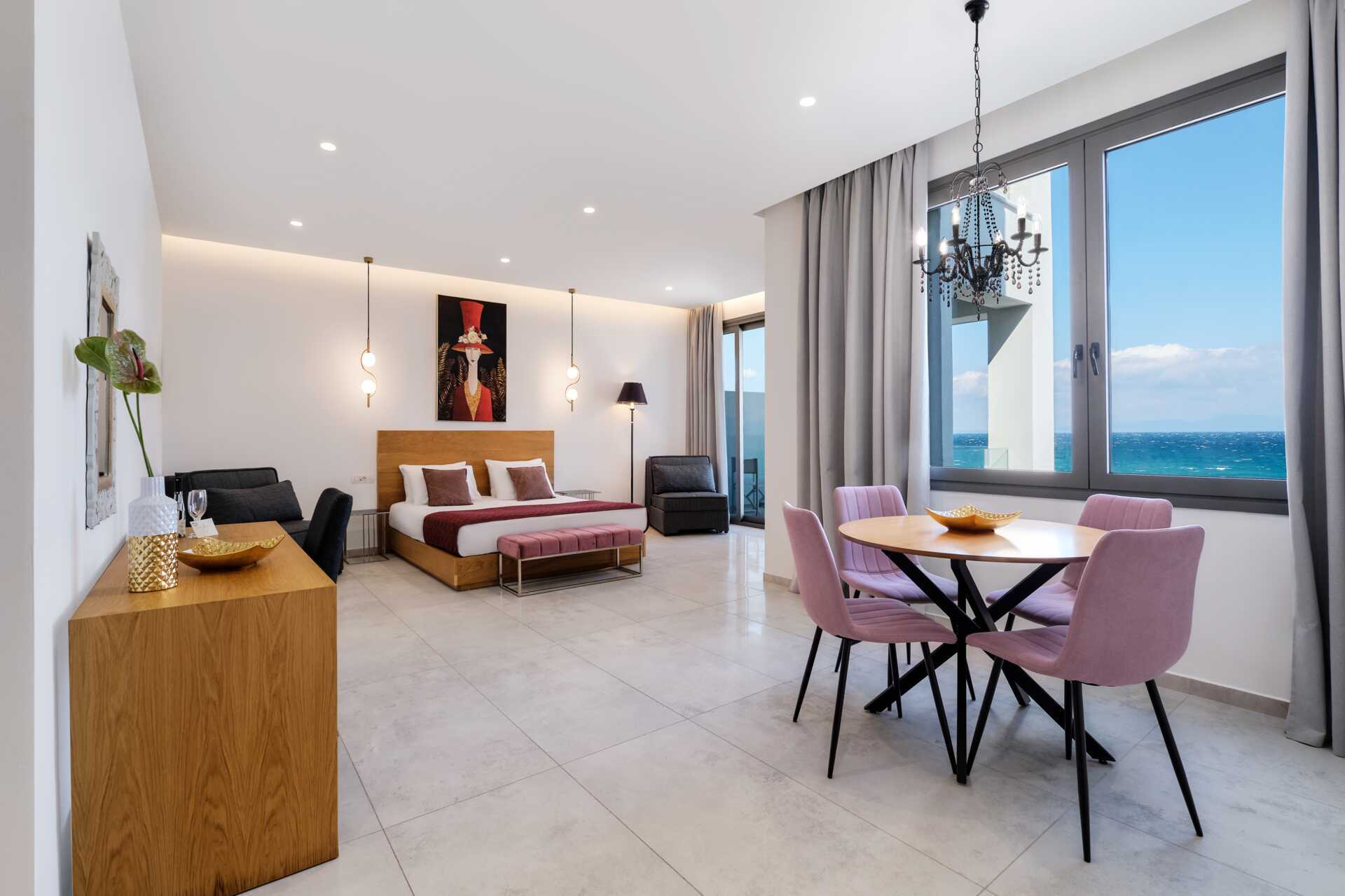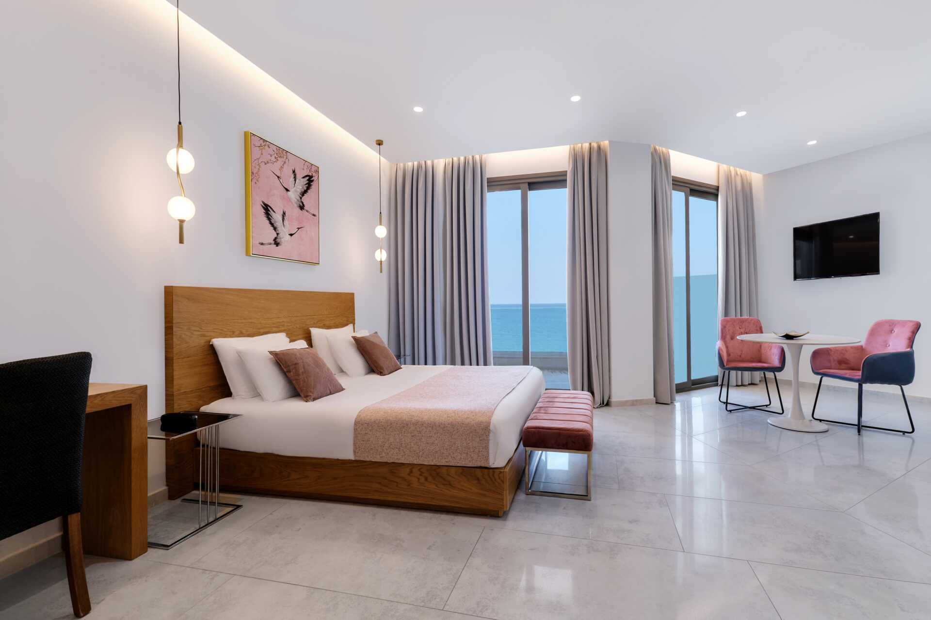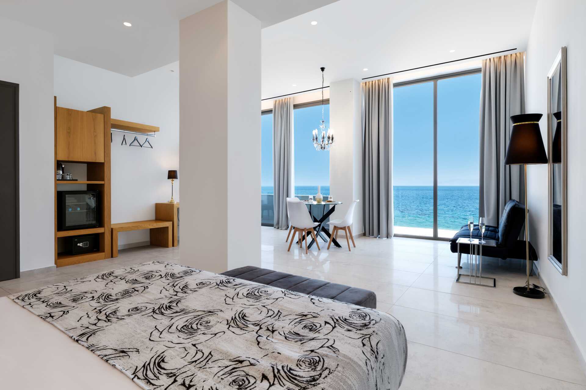 Juniorsvit med balkong. En dubbelsäng. Möjlighet till extrabädd i hopvikbar säng. Kostnadsfri wifi, luftkonditionering och deponering. Minibar. Tv med internationella kanaler. Badrockar och tofflor. Hårtork. Badrum med dusch och wc. Städning 7 ggr/vecka.