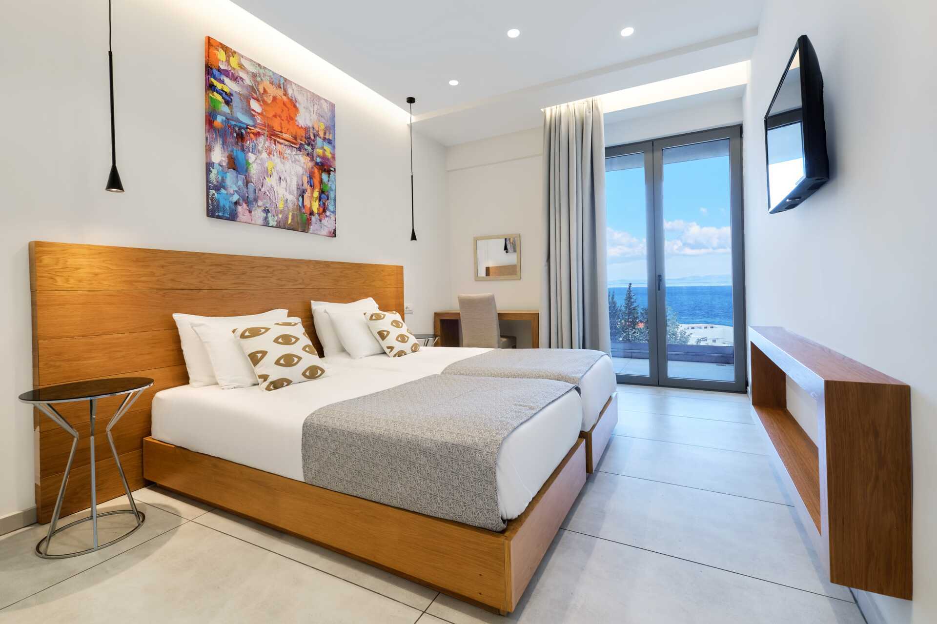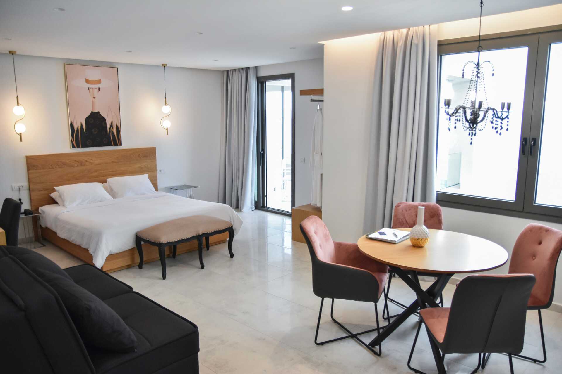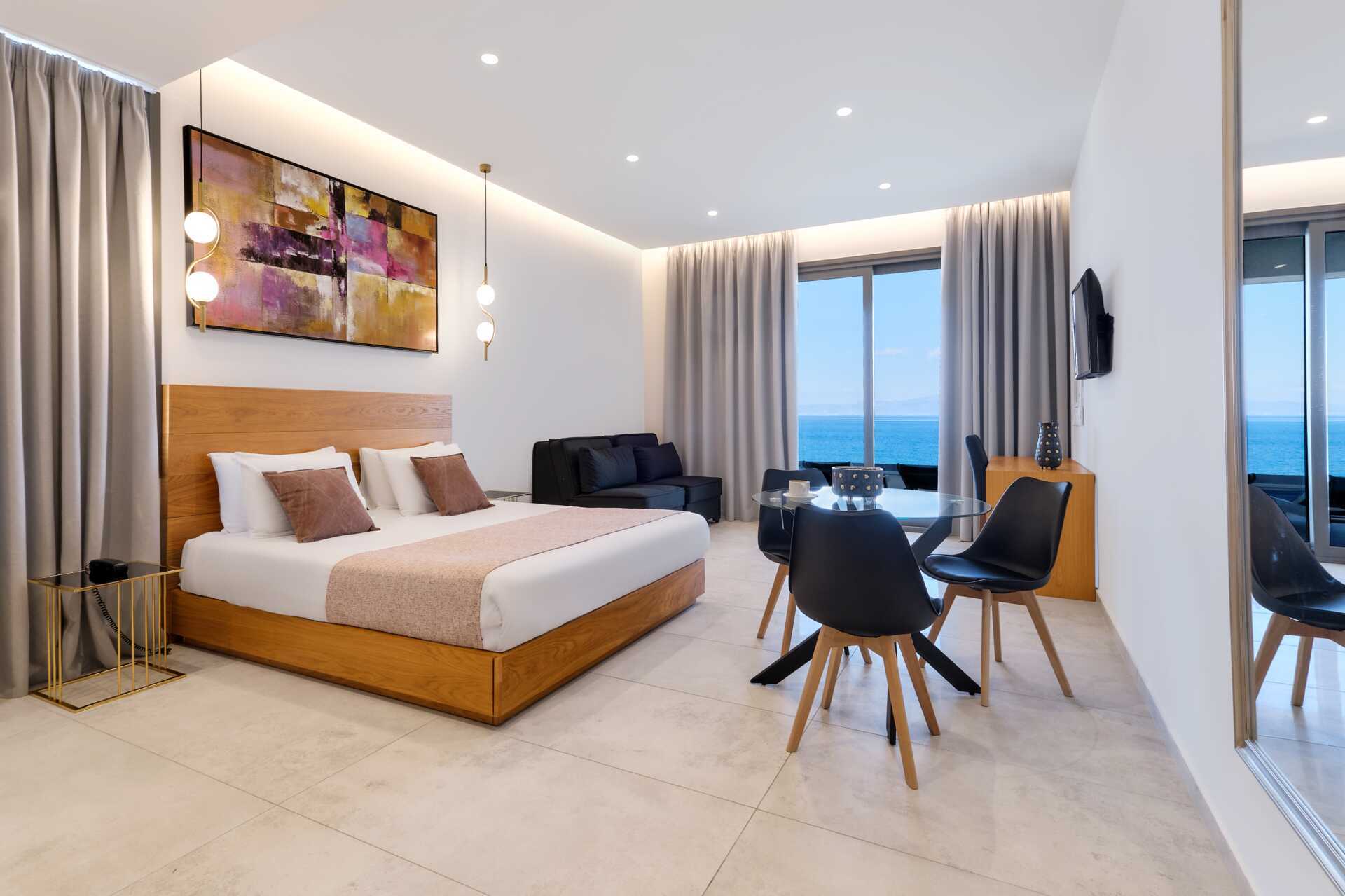 Juniorsvit med balkong. En dubbelsäng. Möjlighet till extrabädd i hopvikbar säng. Kostnadsfri wifi, luftkonditionering och deponering. Minibar. Tv med internationella kanaler. Badrockar och tofflor. Hårtork. Badrum med dusch och wc. Städning 7 ggr/vecka.