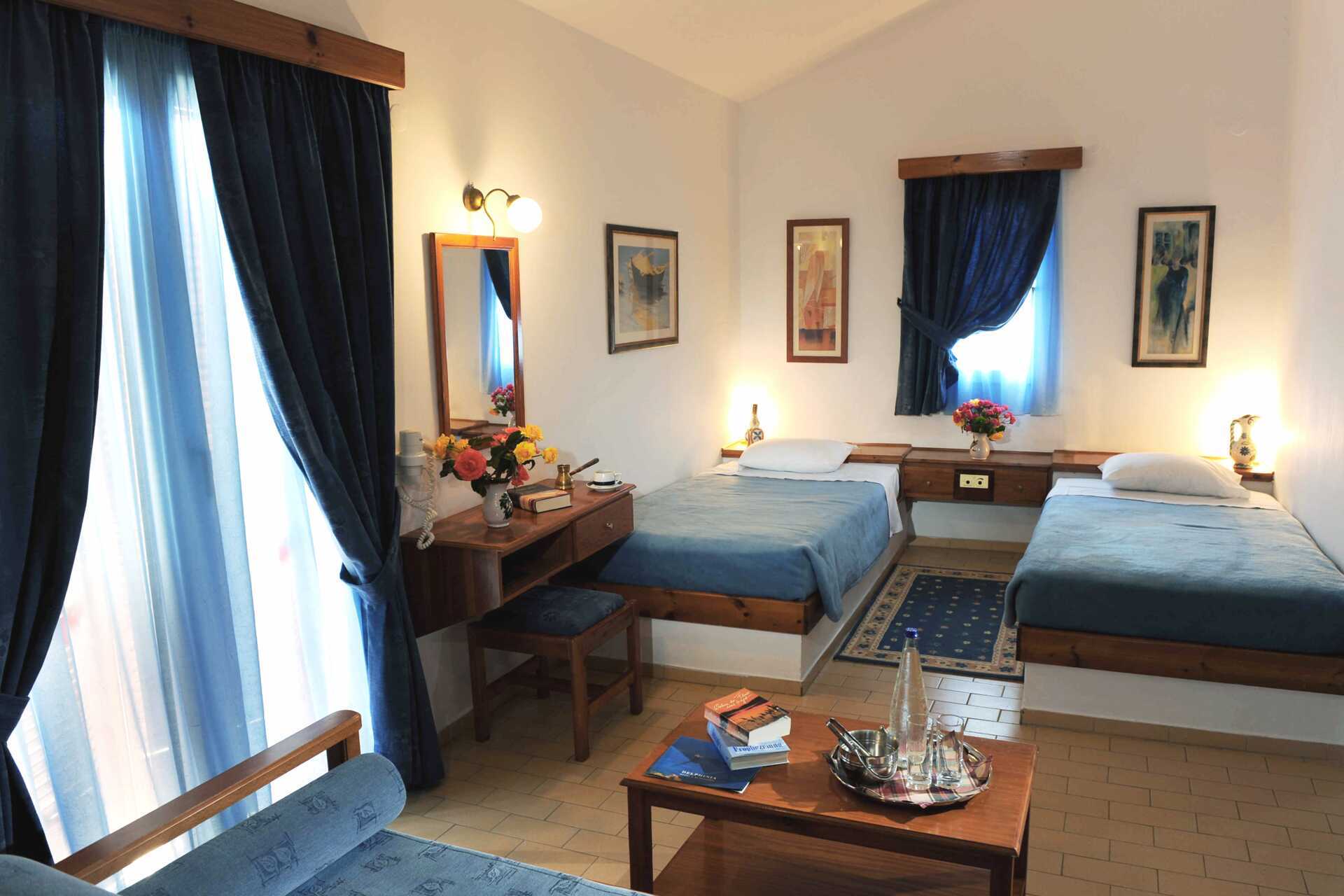 Dubbelrum med balkong och trädgårdsutsikt. Två enkelsängar. Wifi, luftkonditionering och deponering ingår. Minibar. Tv med internationella kanaler. Hårtork. Badrum med dusch och wc. Städning 6 ggr/dag.