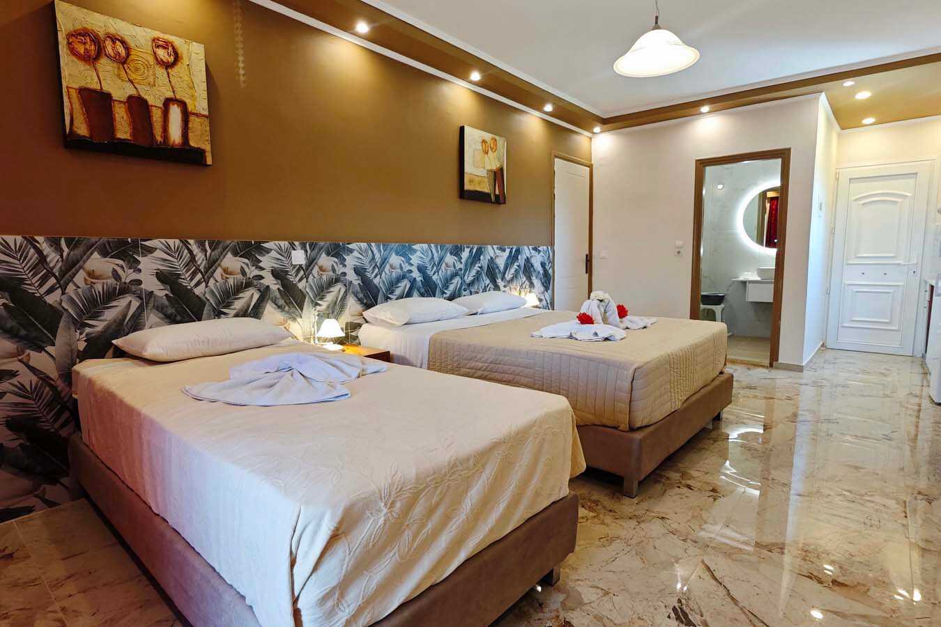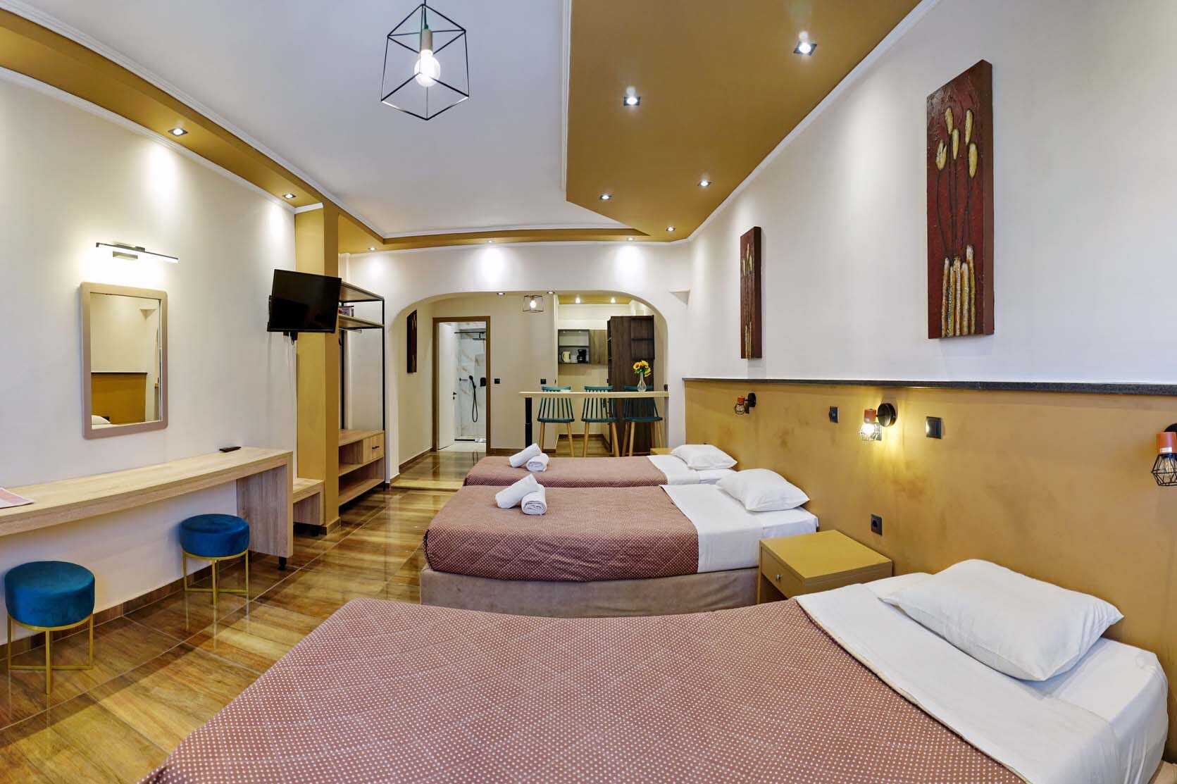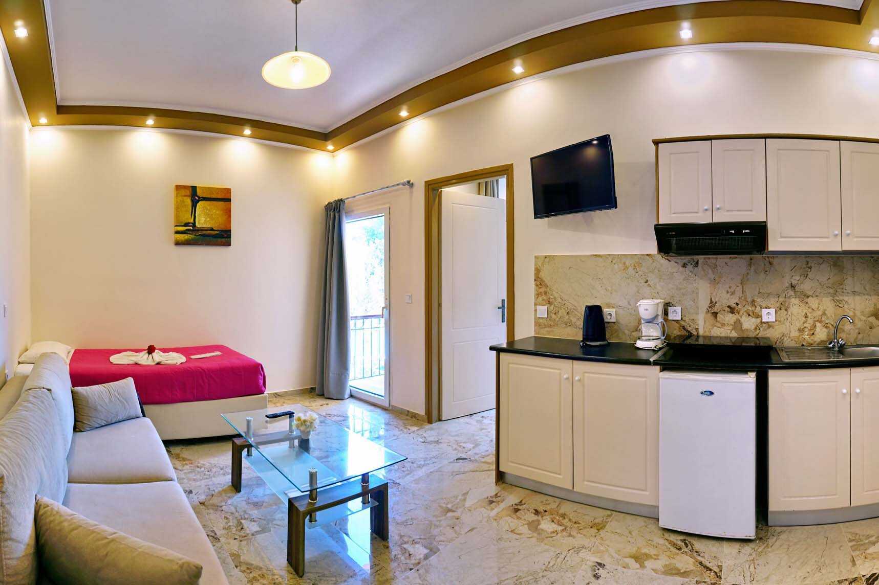 Enrumslägenhet med balkong eller terrass. Kombinerat sovrum och minikök. En dubbelsäng eller två enkelsängar. Minikök med kokplattor, kylskåp och enkel köksutrustning. Wifi, deponering och luftkonditionering ingår. Tv. Hårtork. Badrum med dusch och wc. Städning 6 ggr/vecka.