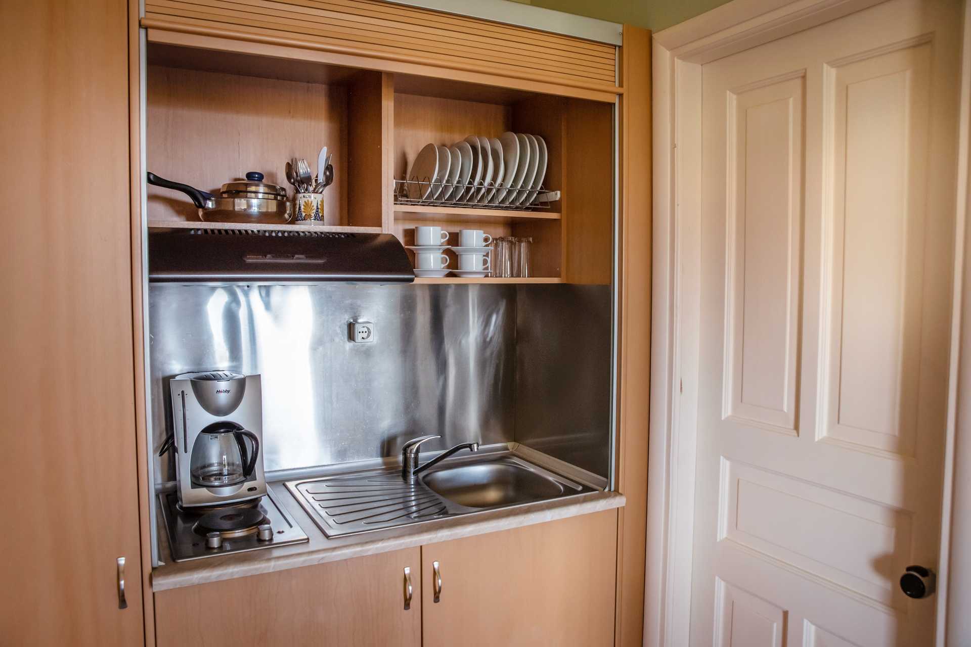Enrumslägenhet med med balkong eller terrass. Kombinerat sovrum och minikök. En dubbelsäng eller två enkelsängar. Minikök med kokplattor, kylskåp, kaffebryggare och enkel köksutrustning. Luftkonditionering ingår. Deponering mot avgift. Tv med internationella kanaler. Hårtork. Badrum med dusch och wc. Städning 7 ggr/vecka. Barn under två år räknas in i maxantalet personer i lägenheten.