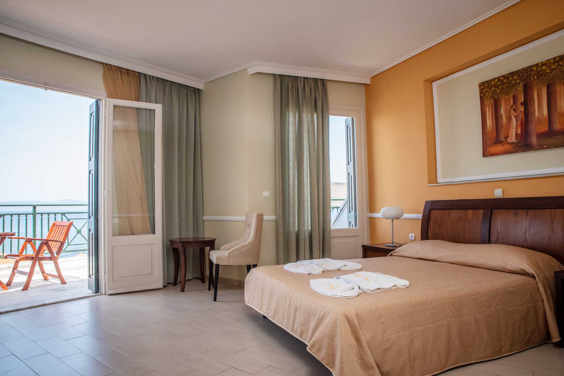 Superiorrum med balkong eller terrass med havsutsikt. En dubbelsäng eller två enkelsängar. Luftkonditionering ingår. Deponering mot avgift. Kylskåp. Tv med internationella kanaler. Hårtork. Badrum med dusch och wc. Städning 7 ggr/vecka. Barn under två år räknas in i maxantalet personer i rummet.