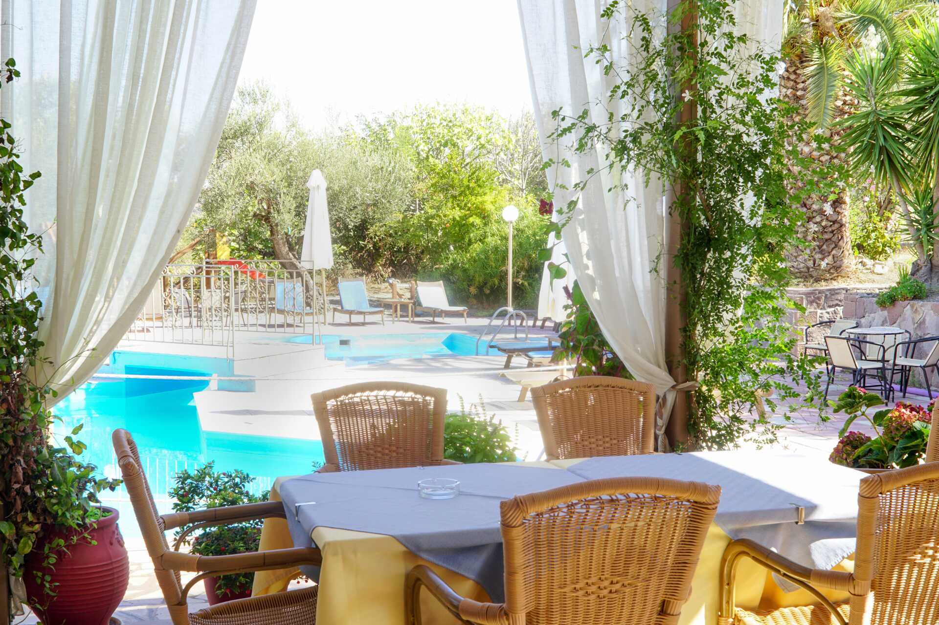 I hotellets restaurang kan du njuta av klassiska grekiska maträtter men även internationella rätter. Vill du ge dig ut på egna äventyr på Mytilini kan du beställa en lunchkorg. I hotellets poolbar serveras dryck och lättare rätter under dagen och dryck sent in på kvällen.