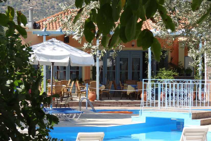 Lassia Studios har ett poolområde med en pool med en grundare del för barn. Solstolar och parasoller samt kombinerad poolbar och restaurang.