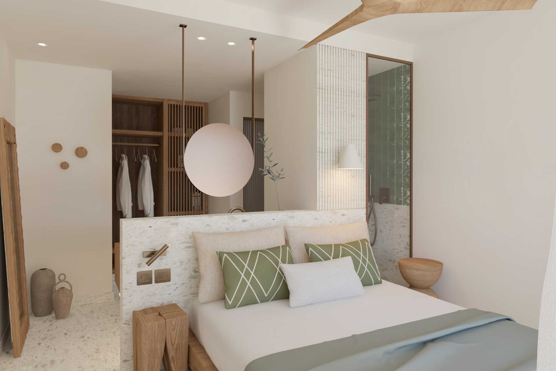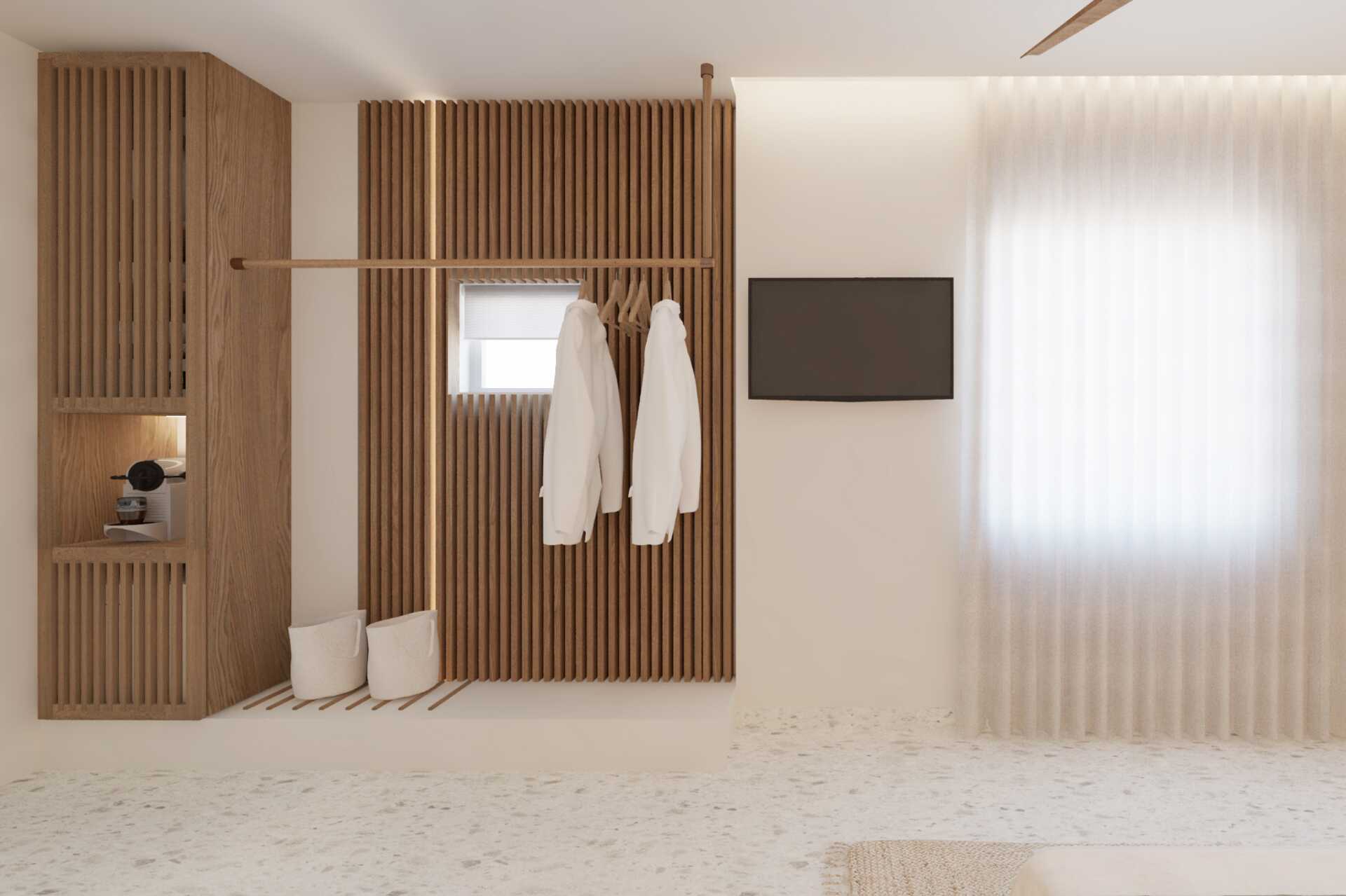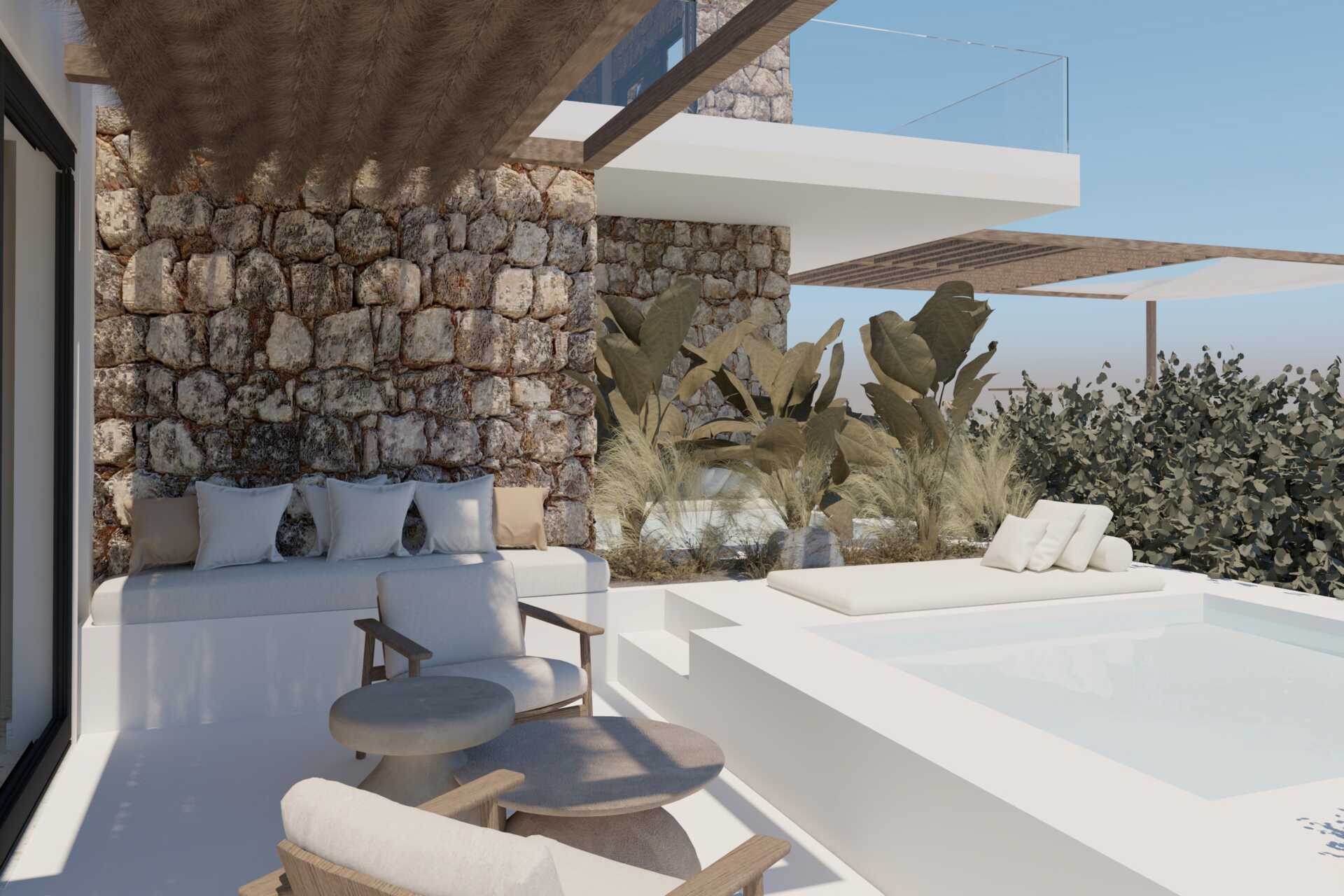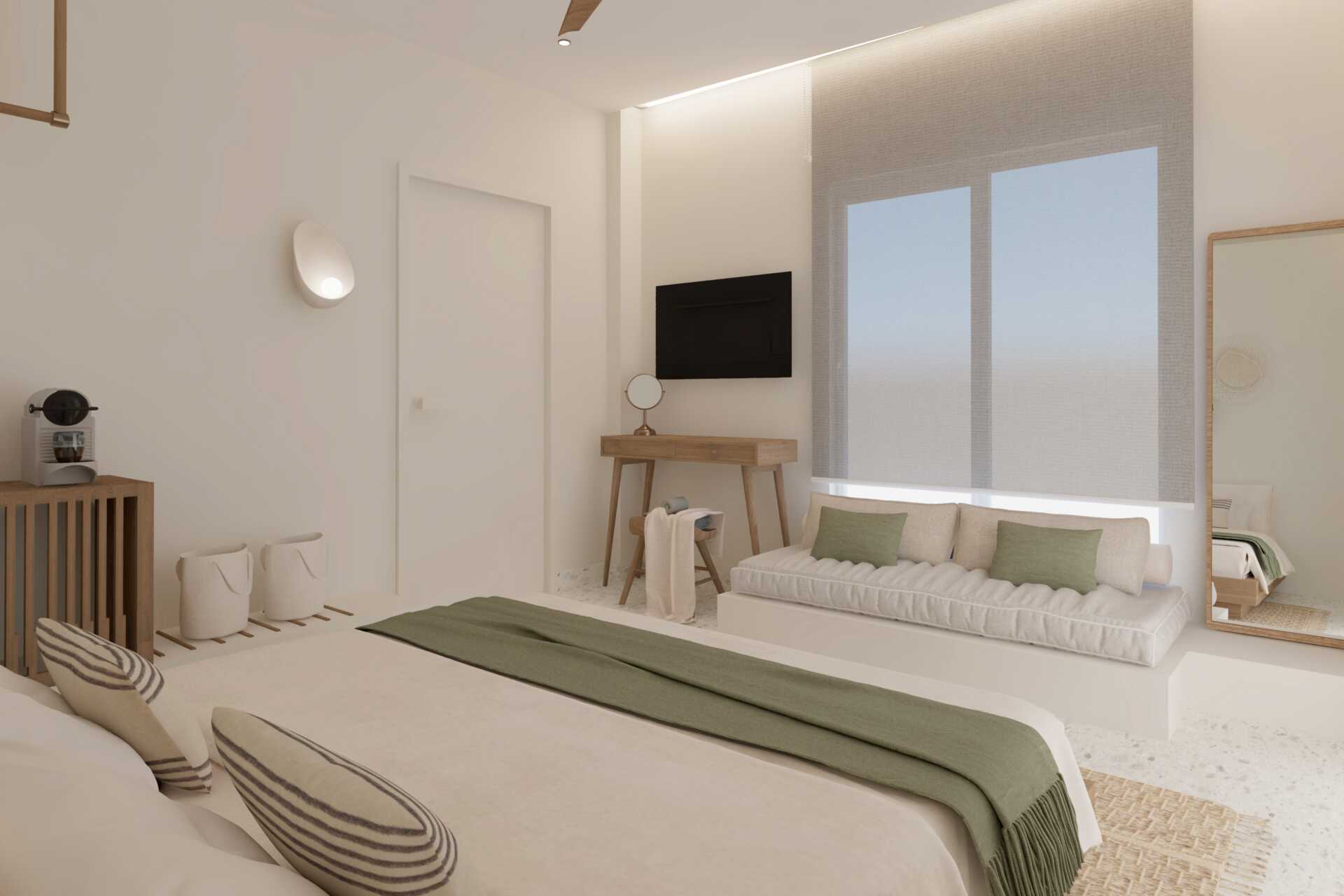 Dubbelrum på de övre våningarna med balkong och havsutsikt . På uteplatsen finns, ett par trappsteg upp till en jacuzzi och en dagbädd. En dubbelsäng. Dagbädd. Walking closet. Wifi, luftkonditionering och deponering ingår. Takfläkt. Minibar. Espressomaskin. Tv med internationella kanaler. Hårtork. Öppen planlösning till tvättställ samt separat dusch och separat wc. Städning 6 ggr/vecka.