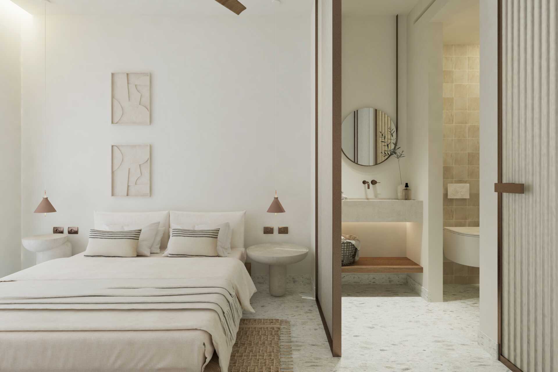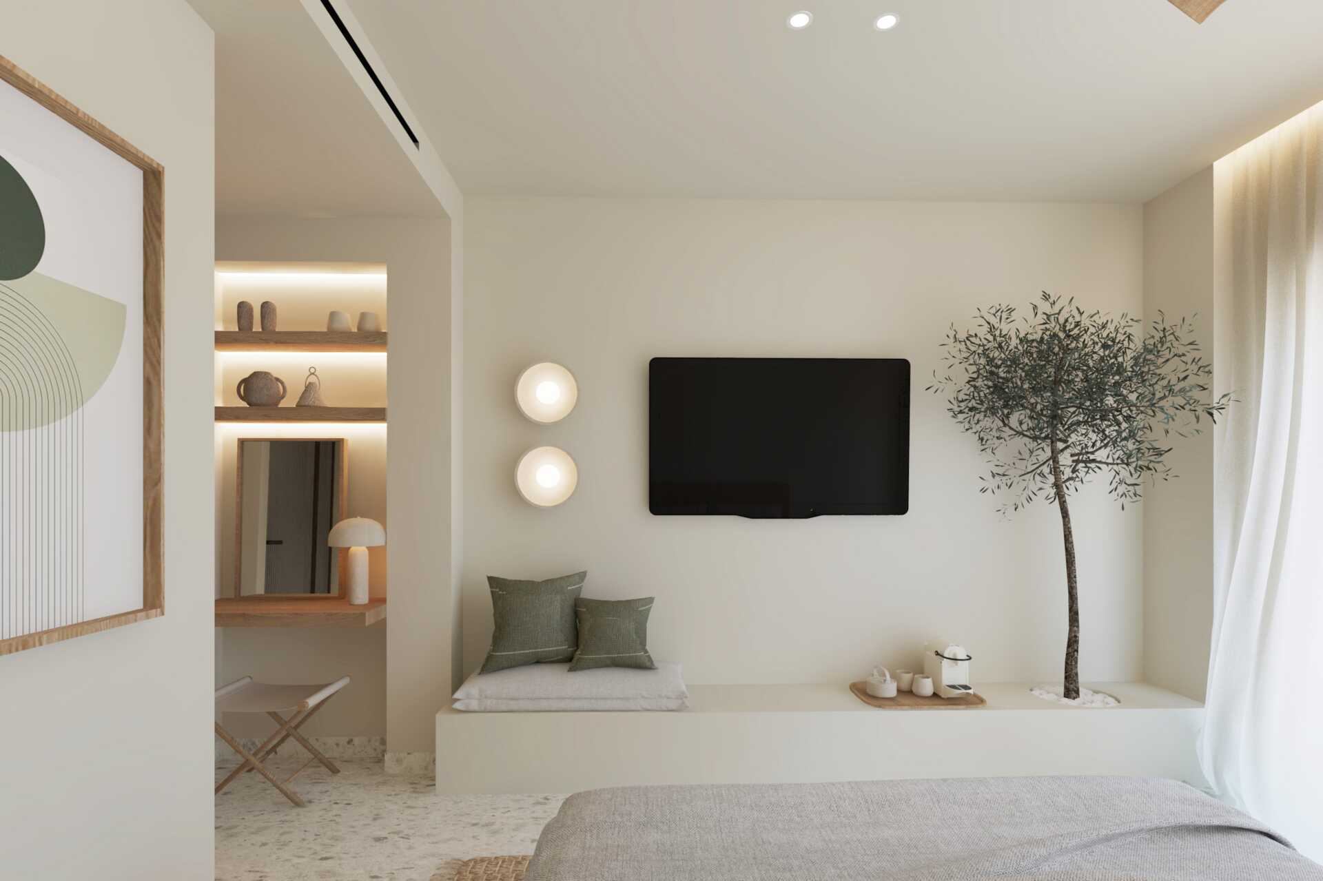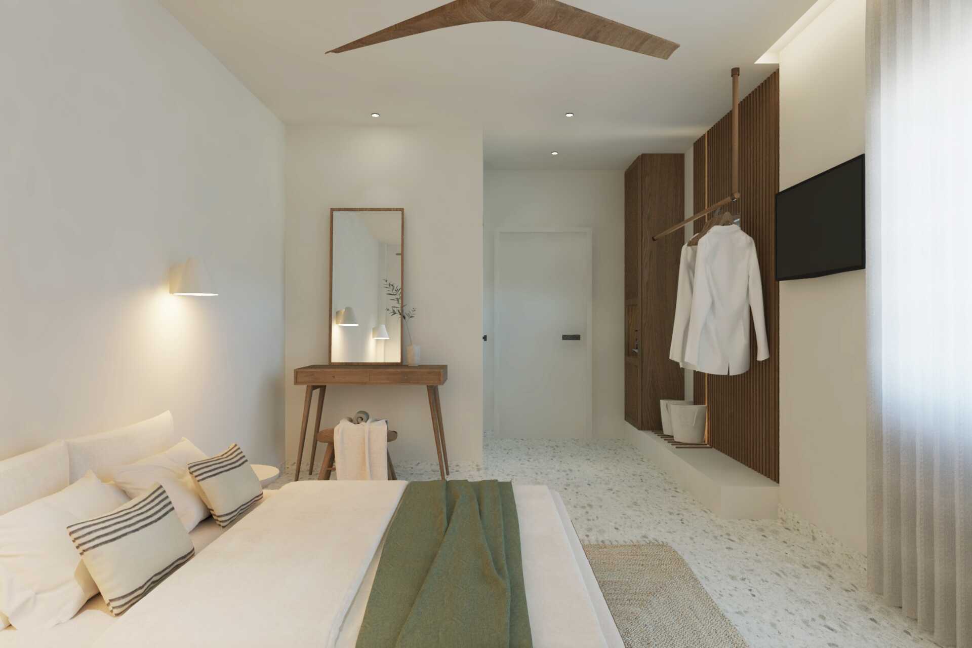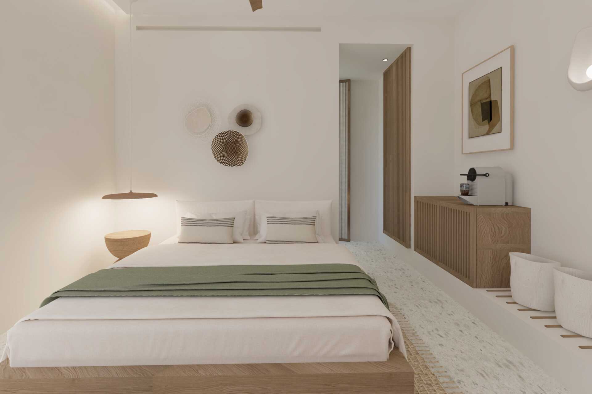 Dubbelrum på de övre våningarna med balkong och havsutsikt . På uteplatsen finns, ett par trappsteg upp till en jacuzzi och en dagbädd. En dubbelsäng. Dagbädd. Walking closet. Wifi, luftkonditionering och deponering ingår. Takfläkt. Minibar. Espressomaskin. Tv med internationella kanaler. Hårtork. Öppen planlösning till tvättställ samt separat dusch och separat wc. Städning 6 ggr/vecka.