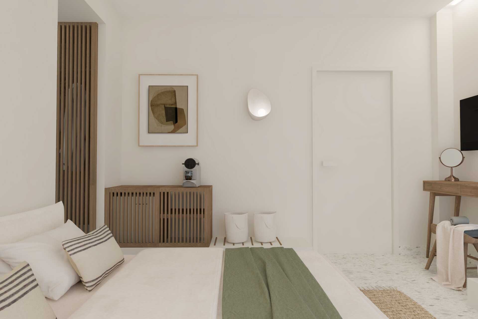 Dubbelrum, Front Area med markbalkong och havsutsikt. På uteplatsen finns, ett par trappsteg upp, en jacuzzi och en dagbädd. En dubbelsäng. Wifi, luftkonditionering och deponering ingår. Takfläkt. Minibar. Espressomaskin. Tv med internationella kanaler. Hårtork. Öppen planlösning till tvättställ, samt en separat dusch och separat wc. Städning 6 ggr/vecka.